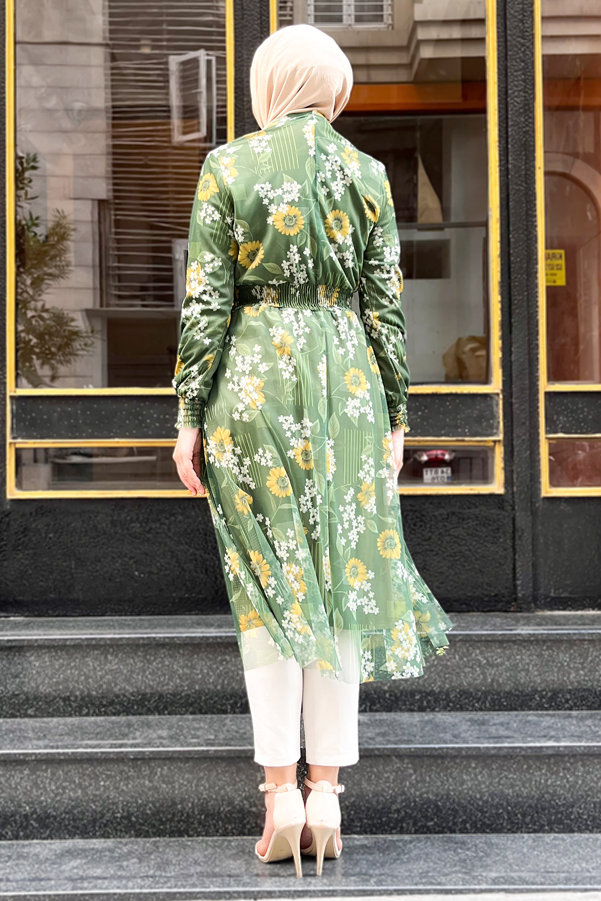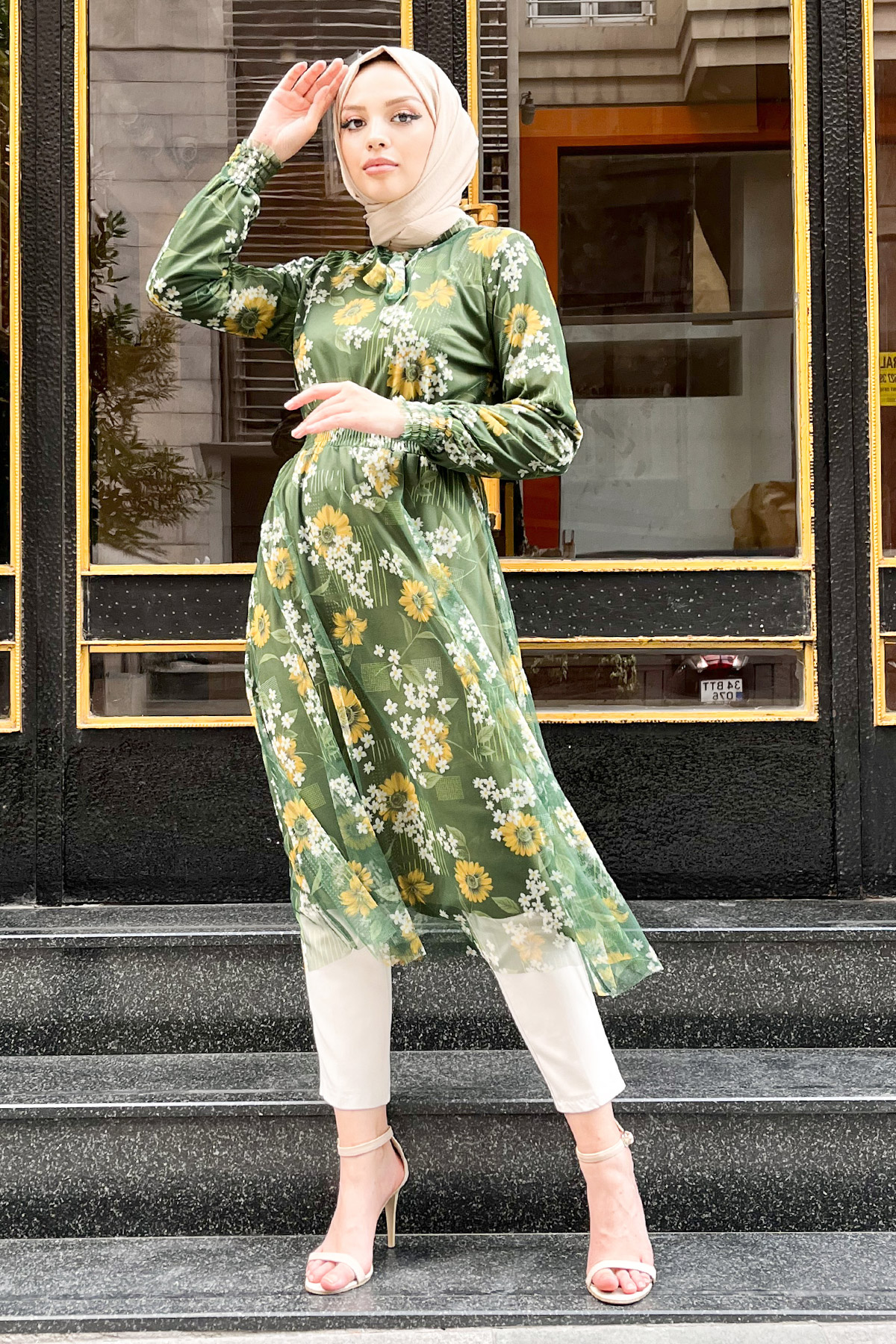 Ürün Özelliği : Yeni sezon Çiçek Desen Tül Tunik modelidir. Kolları lastiklidir.Beli çıkarılabilir kuşak detaylıdır. Önden bağlamalıdır. Astarlıdır.Eteği volanlıdır. Ürün renginde konsept çekimlerinden dolayı ton farklılığı olabilir.
