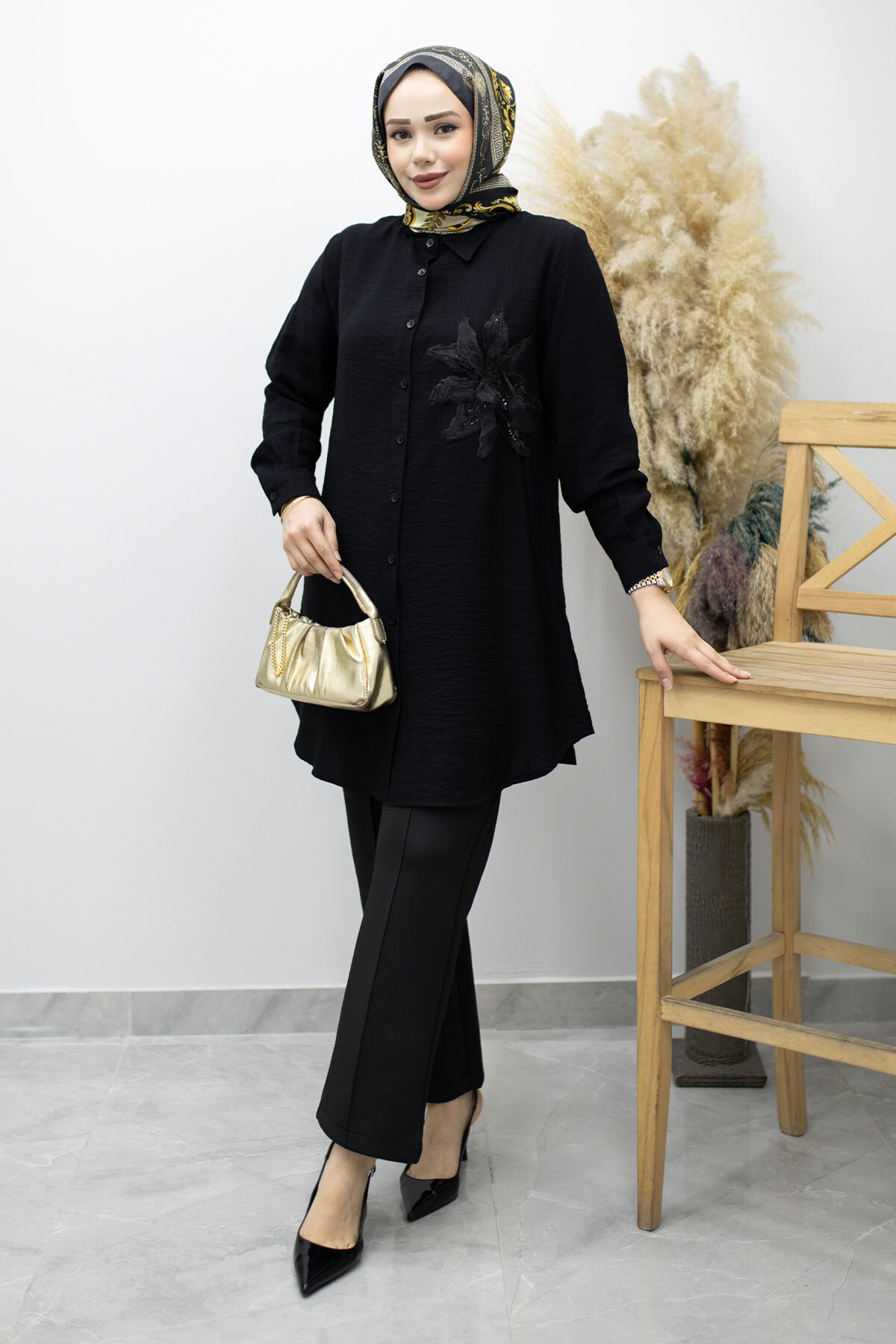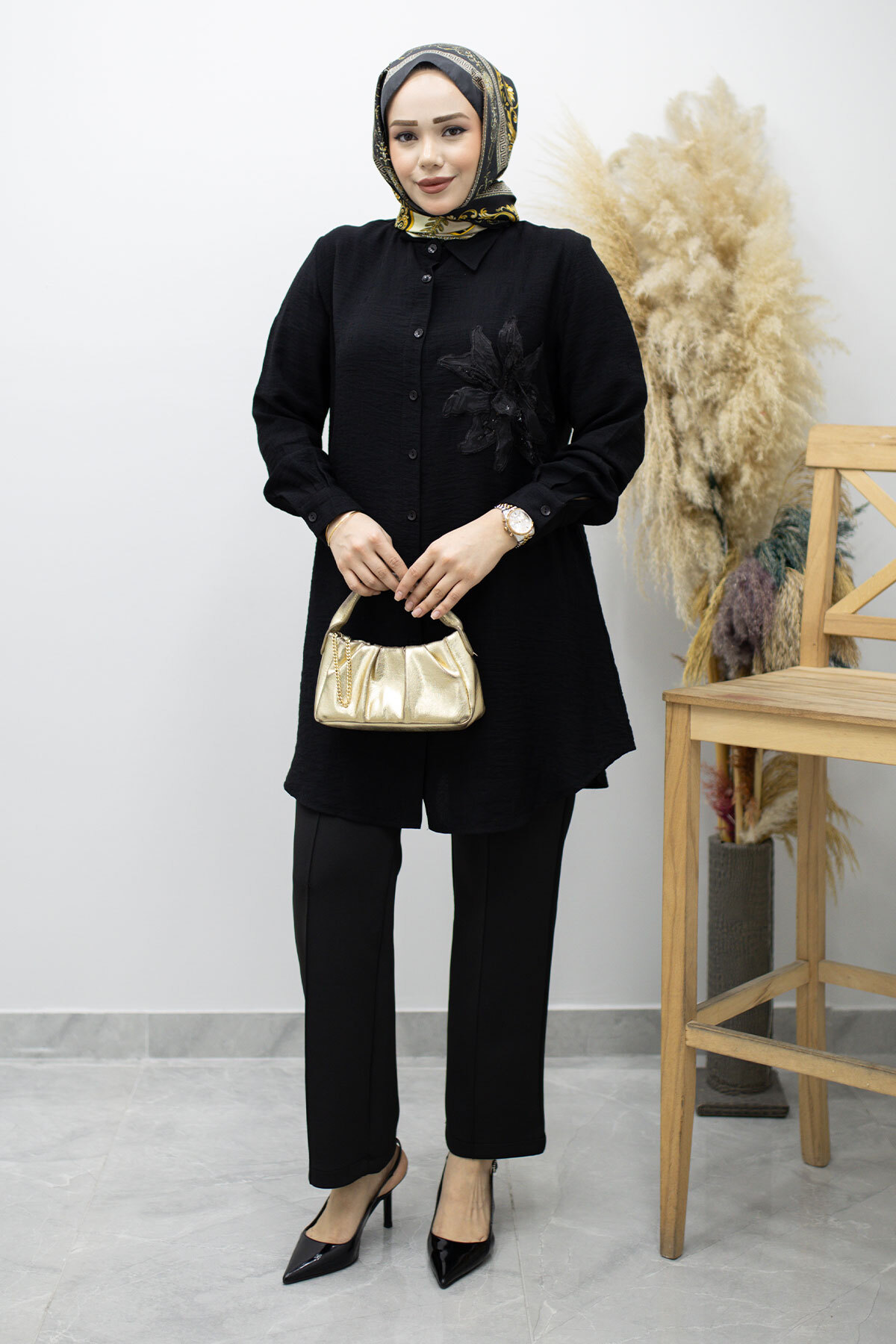 Çiçek Detaylı Gömlek TSD260193 Siyah Özellikleri