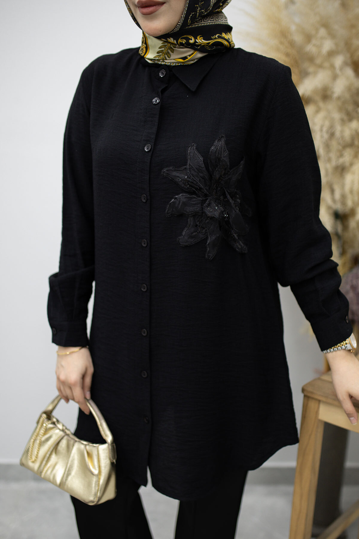 Çiçek Detaylı Gömlek TSD260193 Siyah