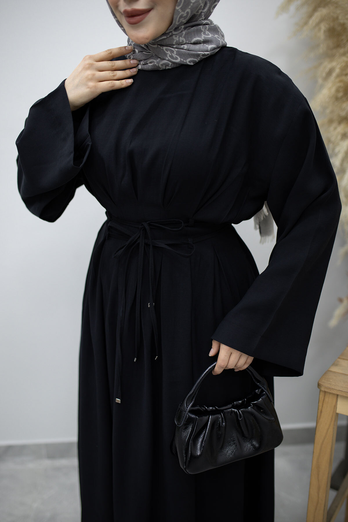 Çift Bağlamalı Pensli Elbise TSD260185 Siyah Özellikleri