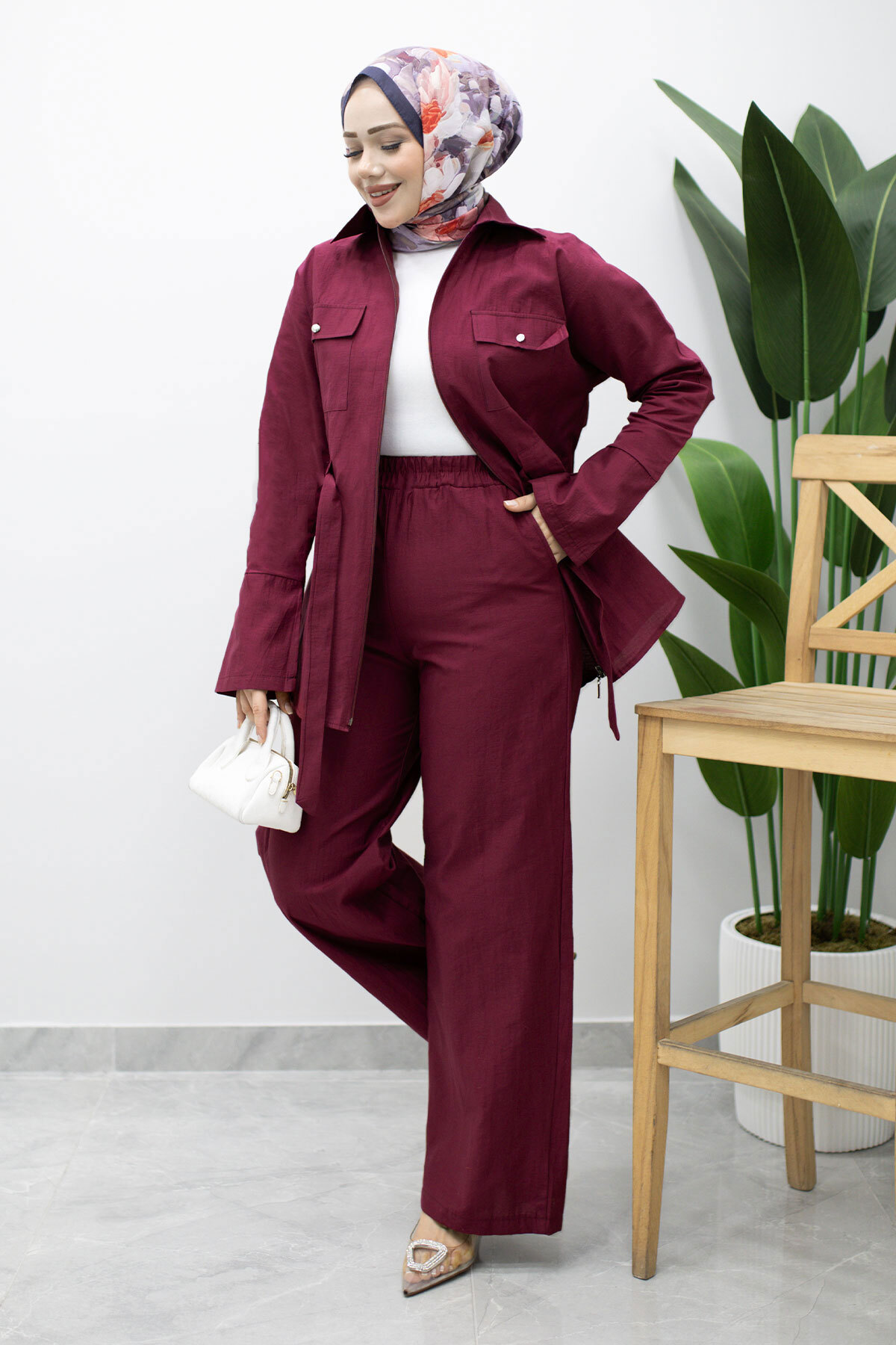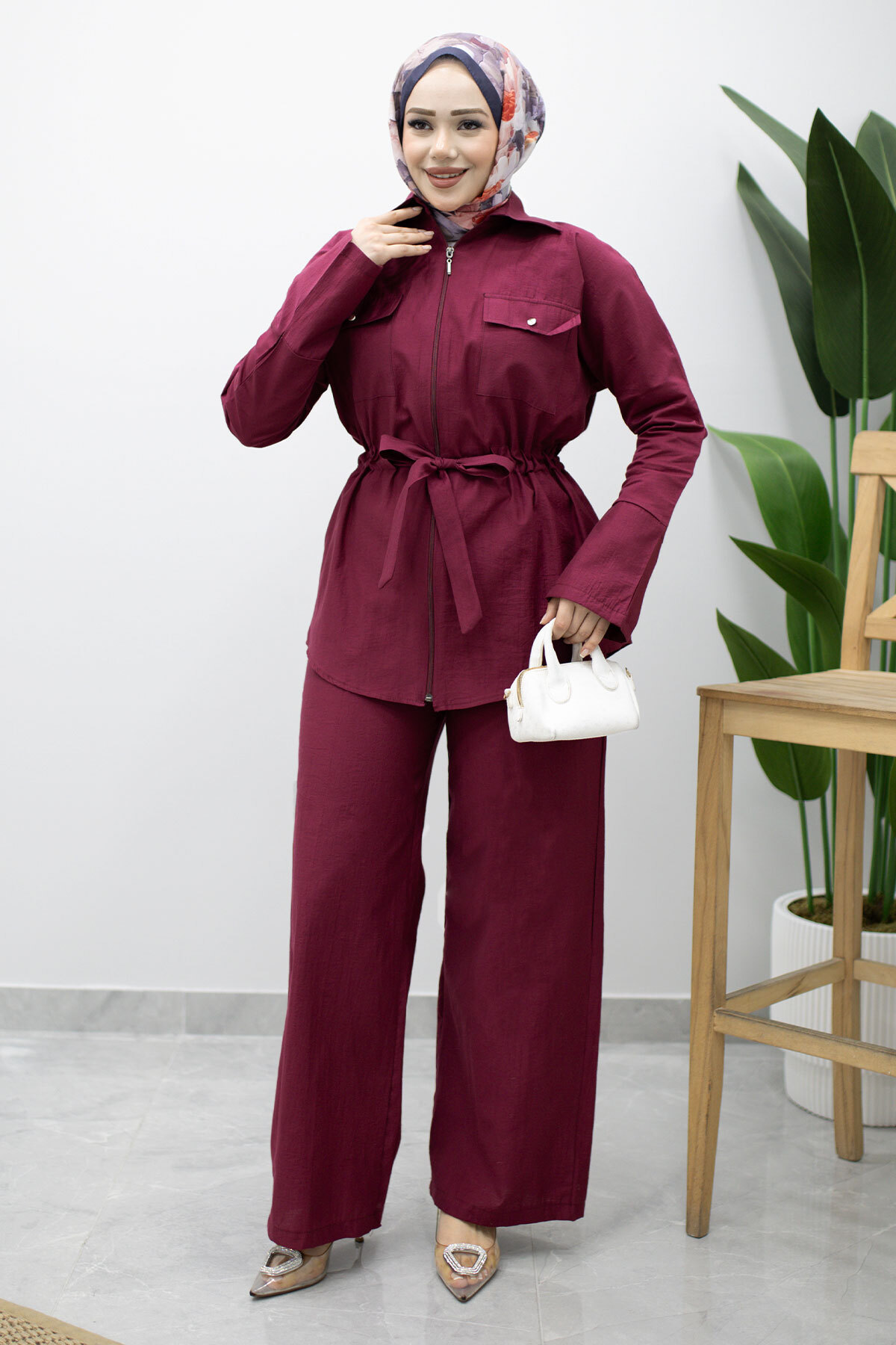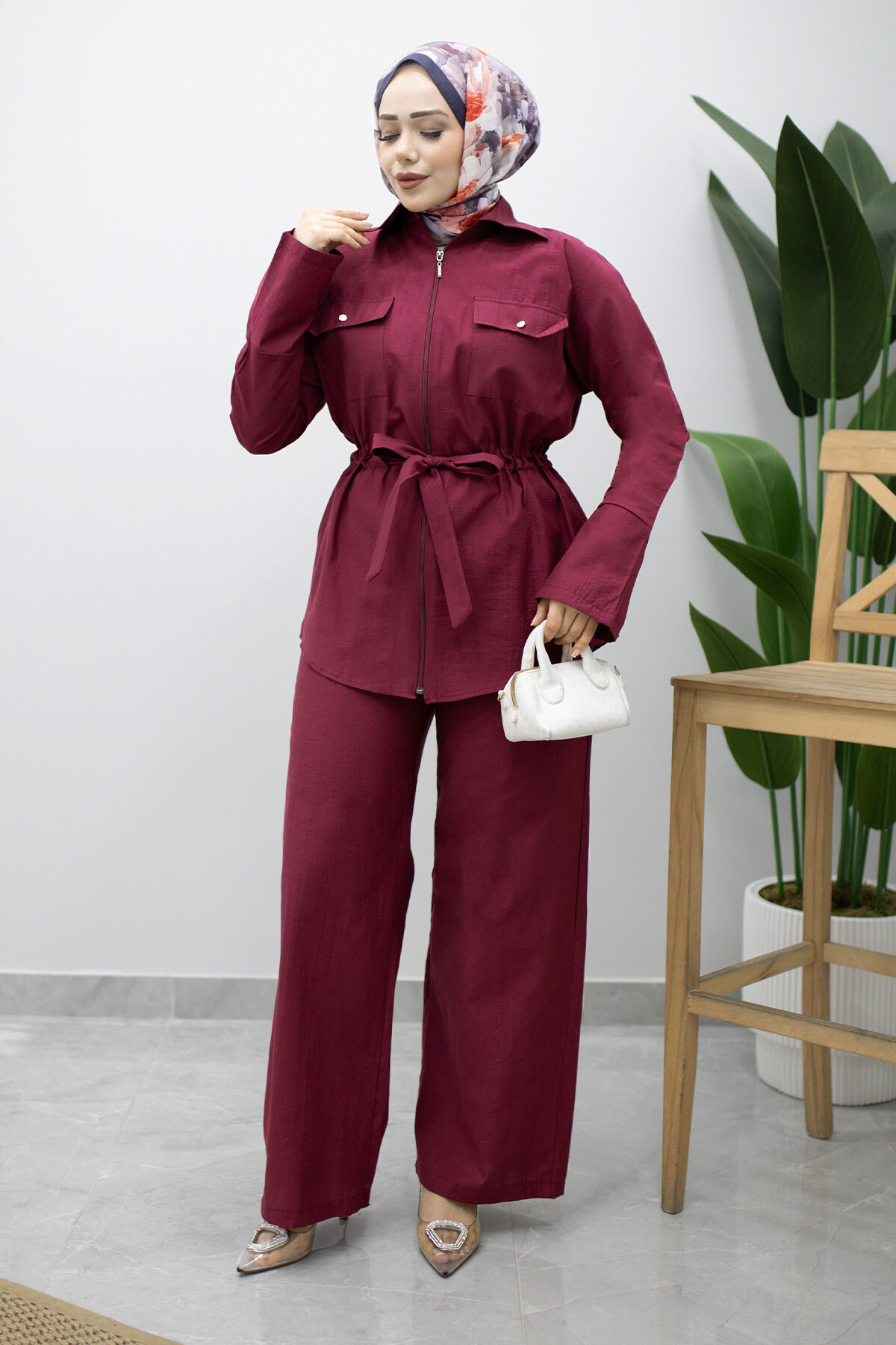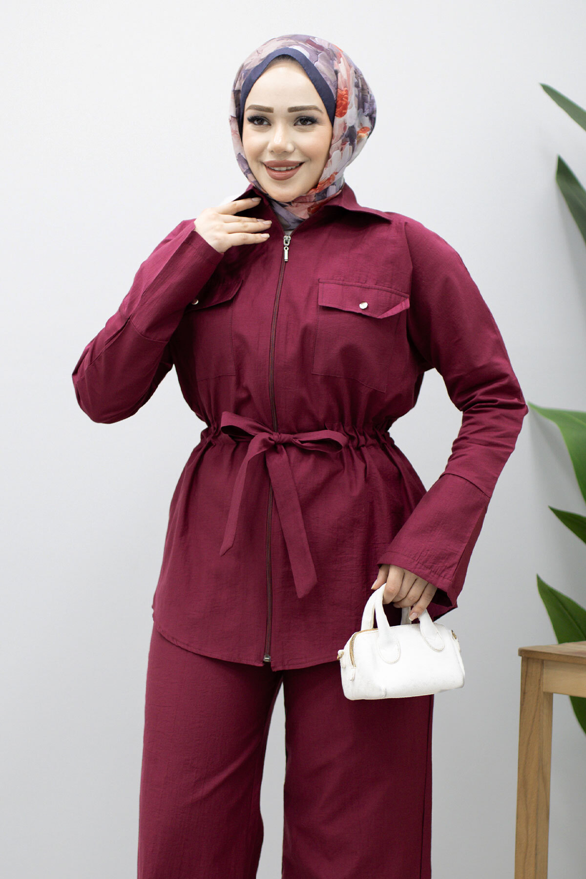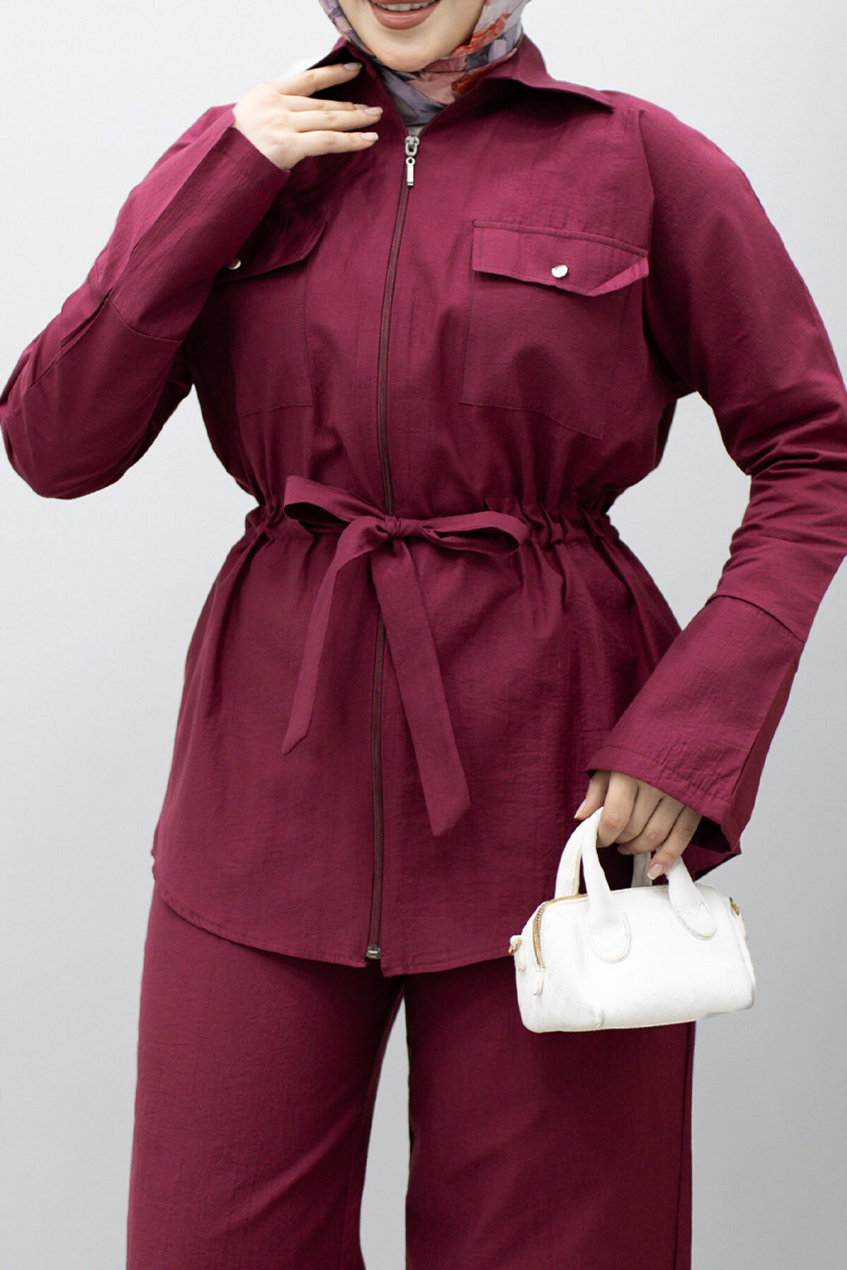 Ürün Özelliği : Yeni sezon Çif Cepli Beli Büzgülü İkili Takım modelidir.