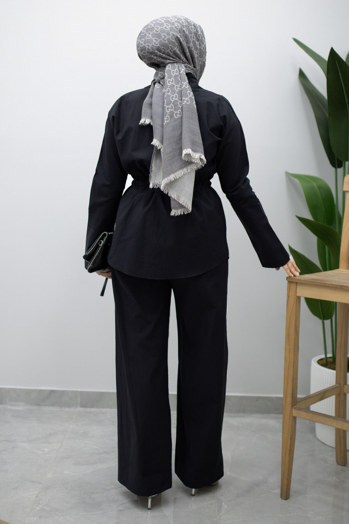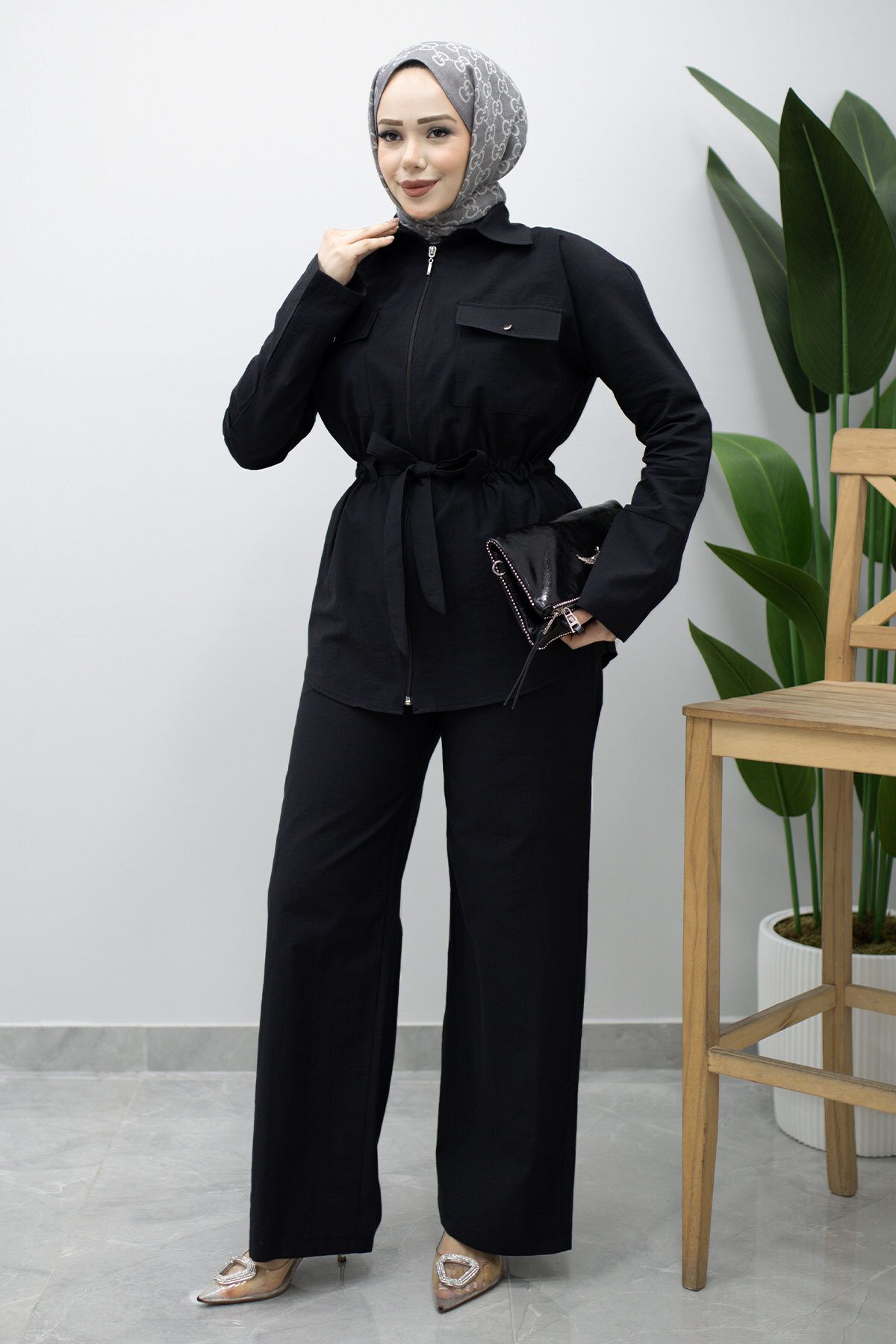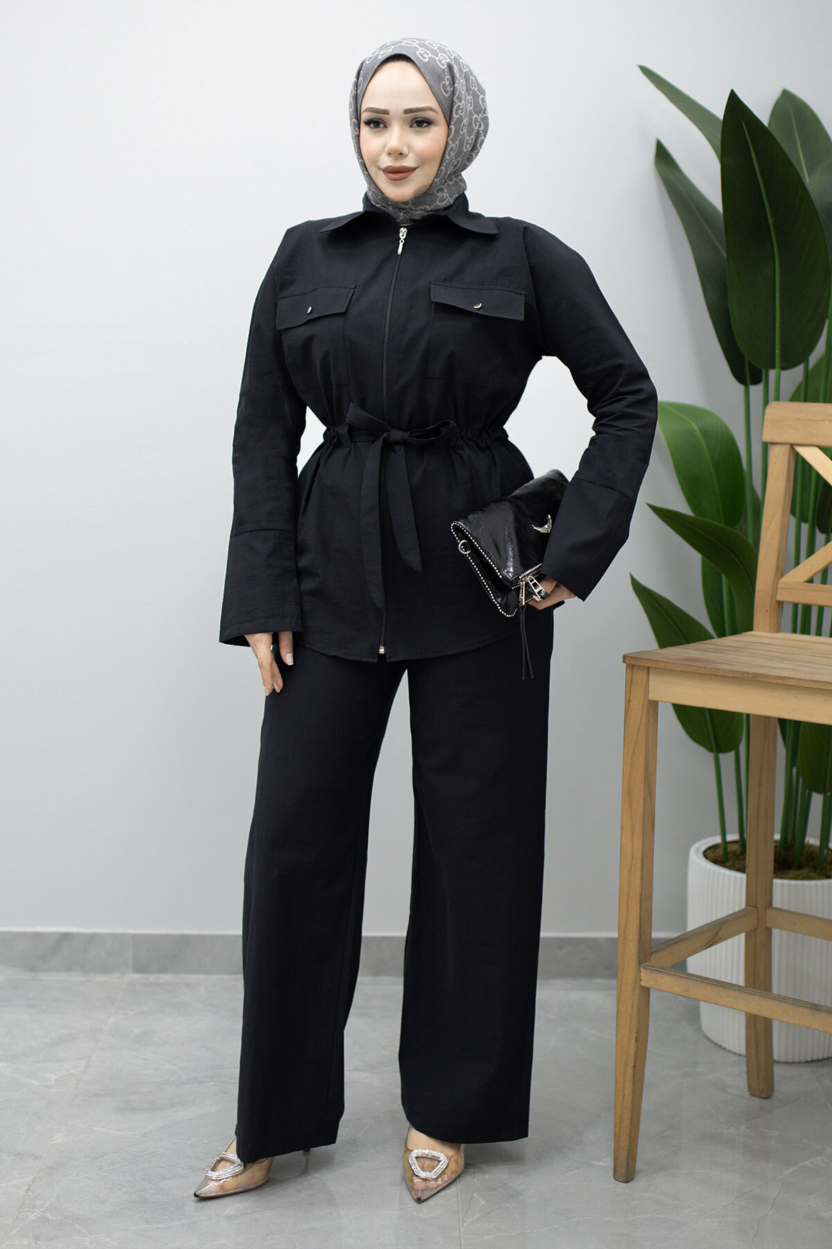 Çift Cepli Beli Büzgülü İkili Takım TSD260202 Siyah