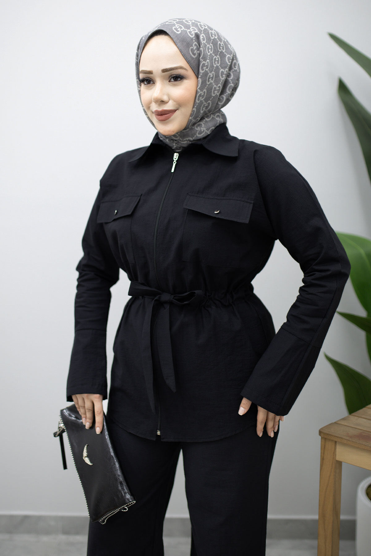 Ürün Özelliği : Yeni sezon Çif Cepli Beli Büzgülü İkili Takım modelidir.