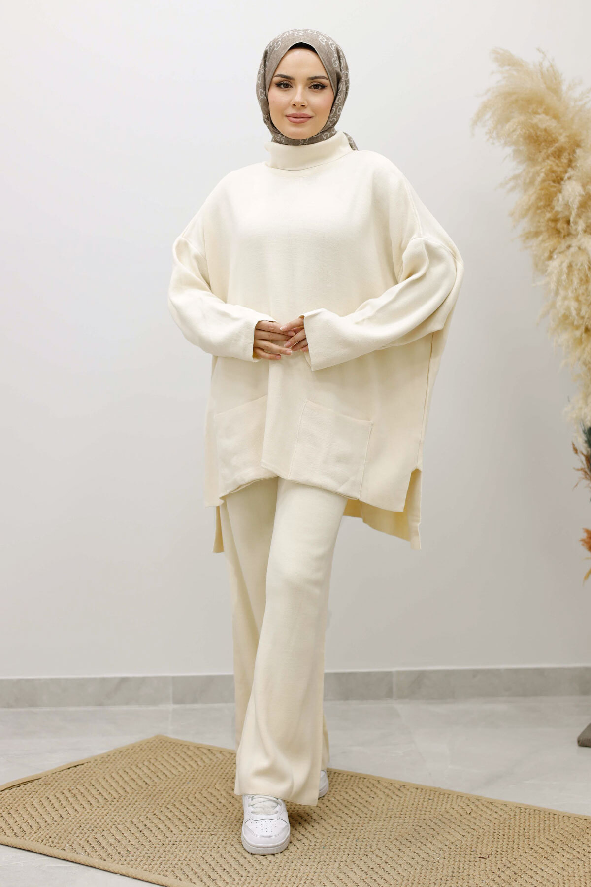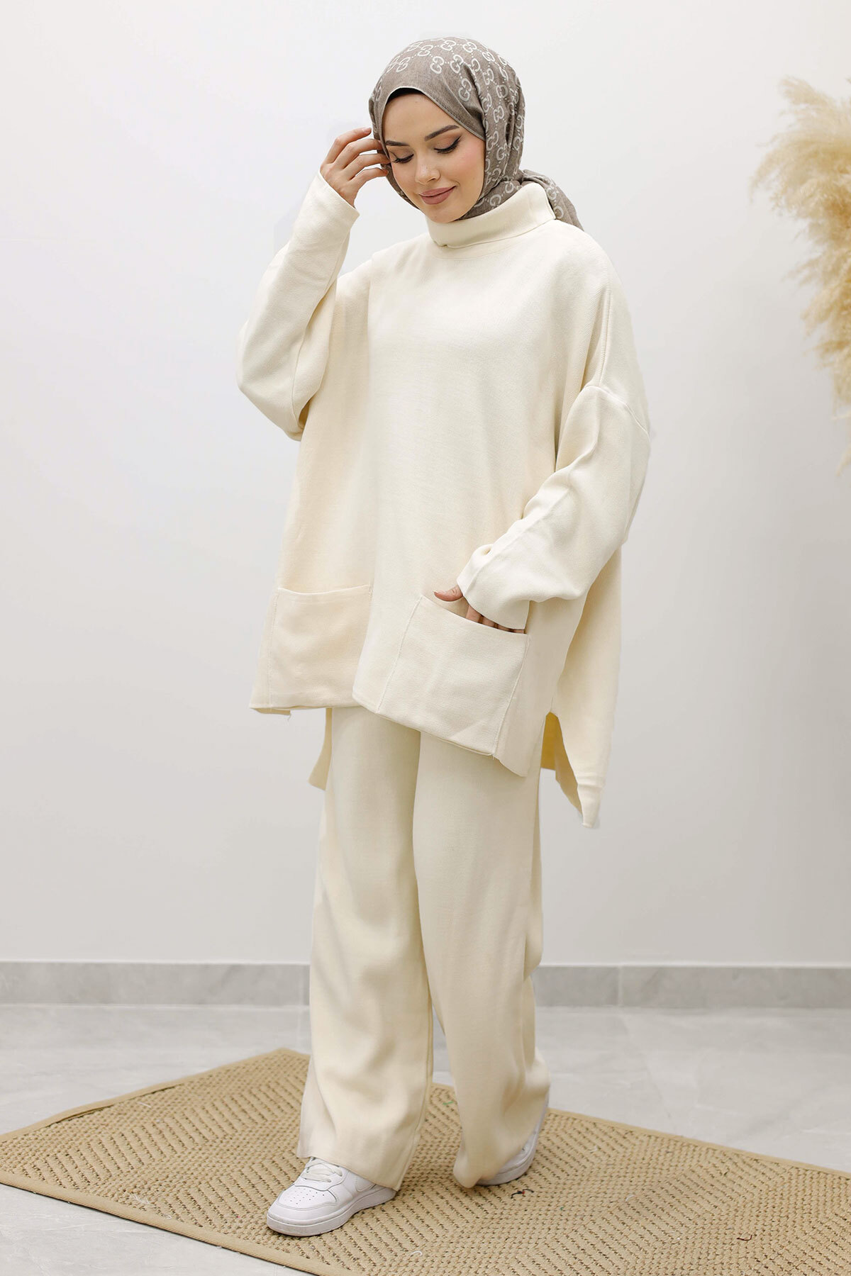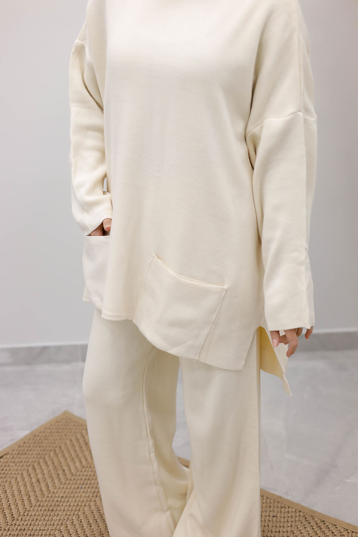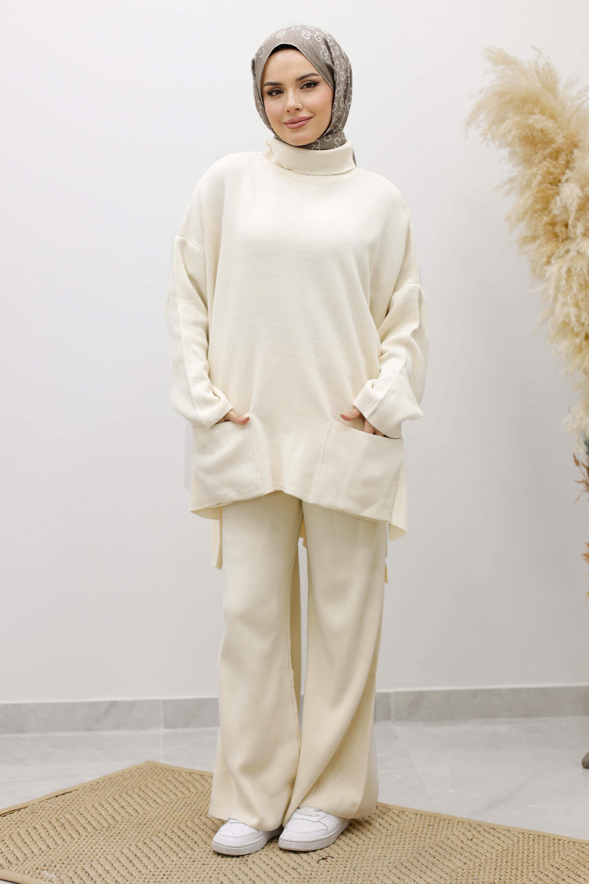Çift Cepli Boğazlı Triko Takım TSD260109 Bej Özellikleri