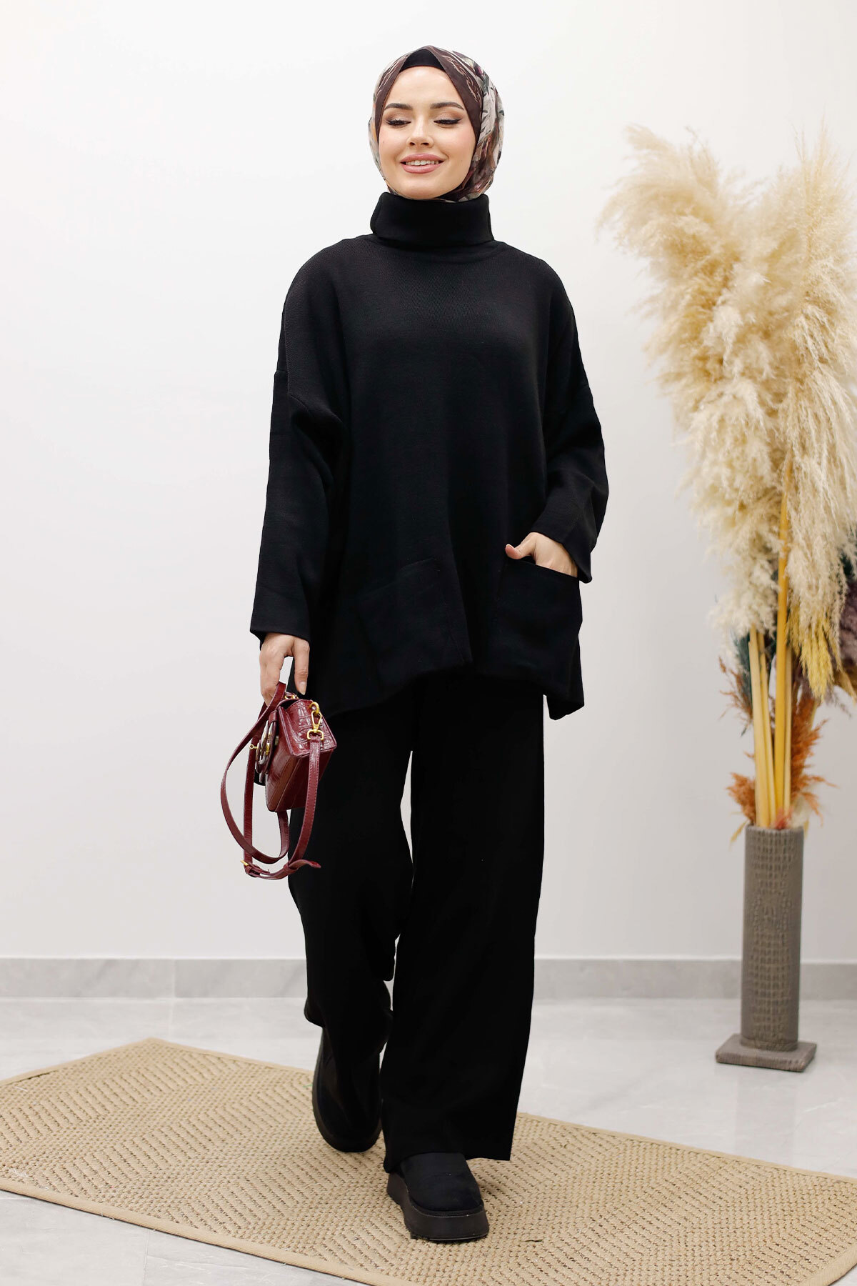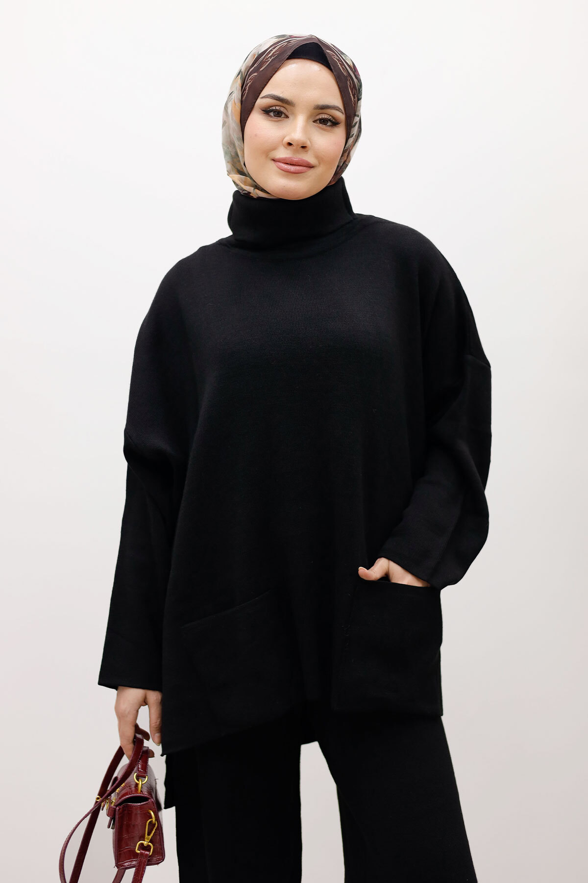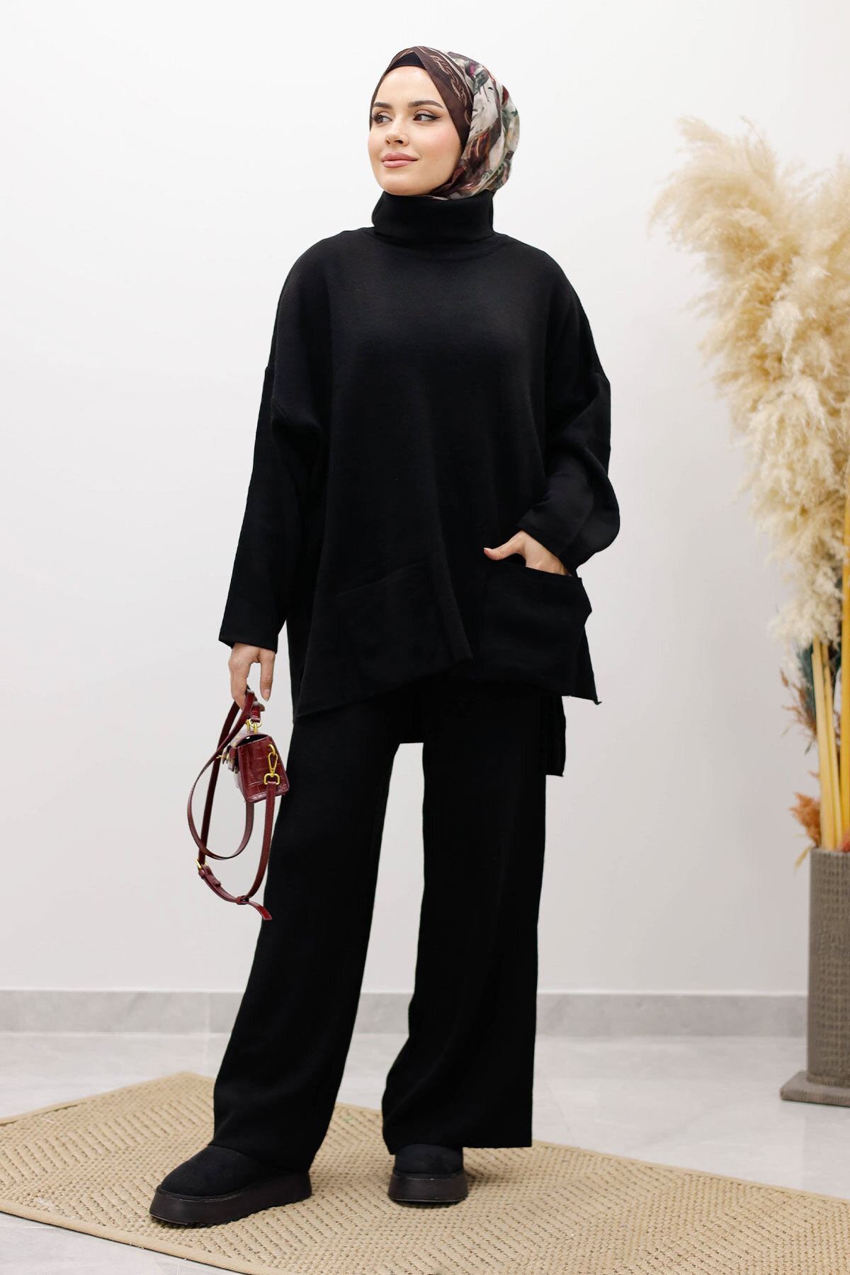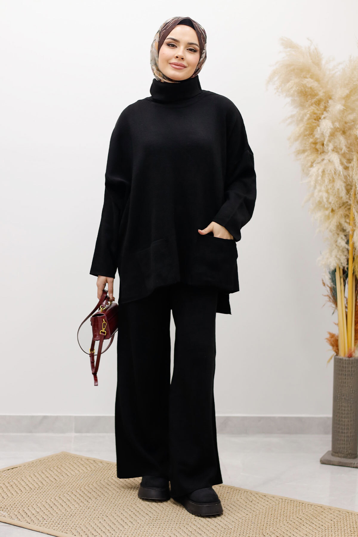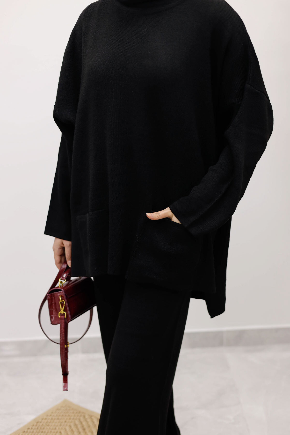 Çift Cepli Boğazlı Triko Takım TSD260109 SiyahÖzellikleri