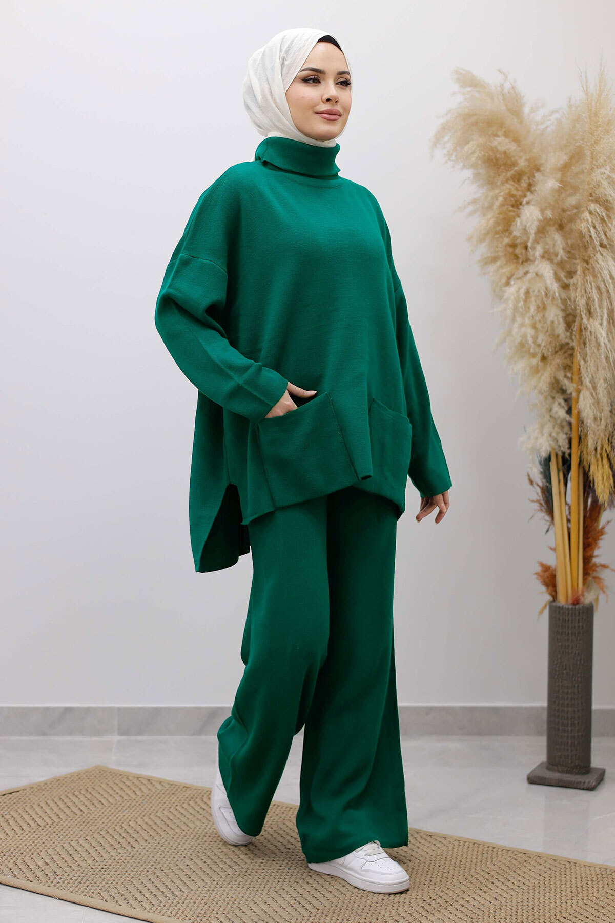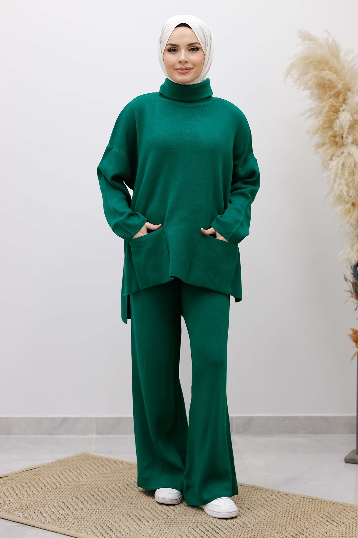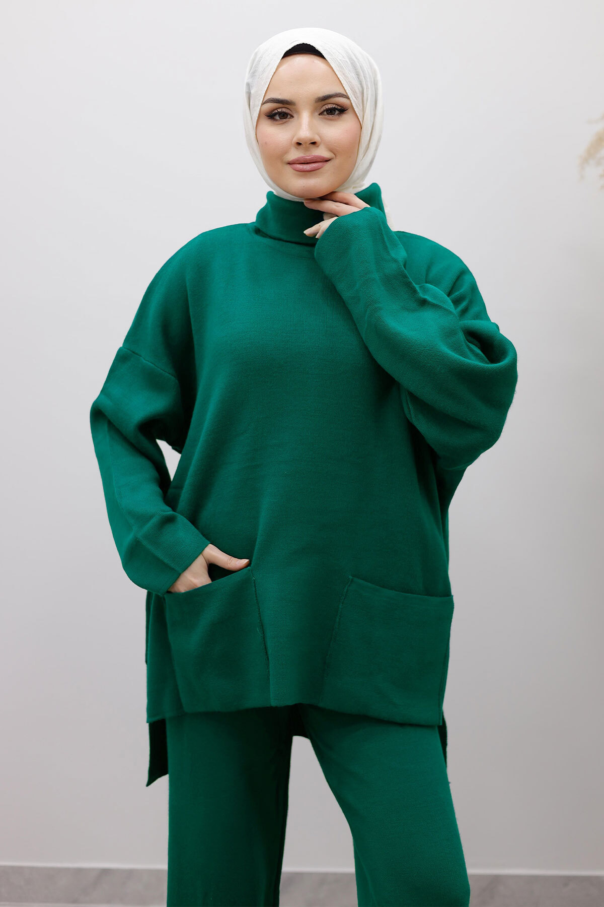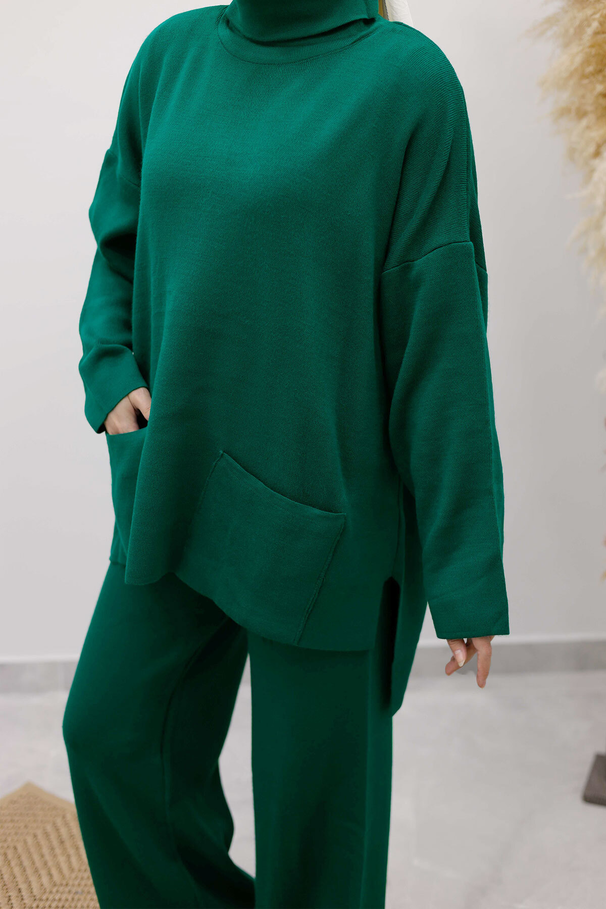 Çift Cepli Boğazlı Triko Takım TSD260109 Zümrüt Yeşili Özellikleri