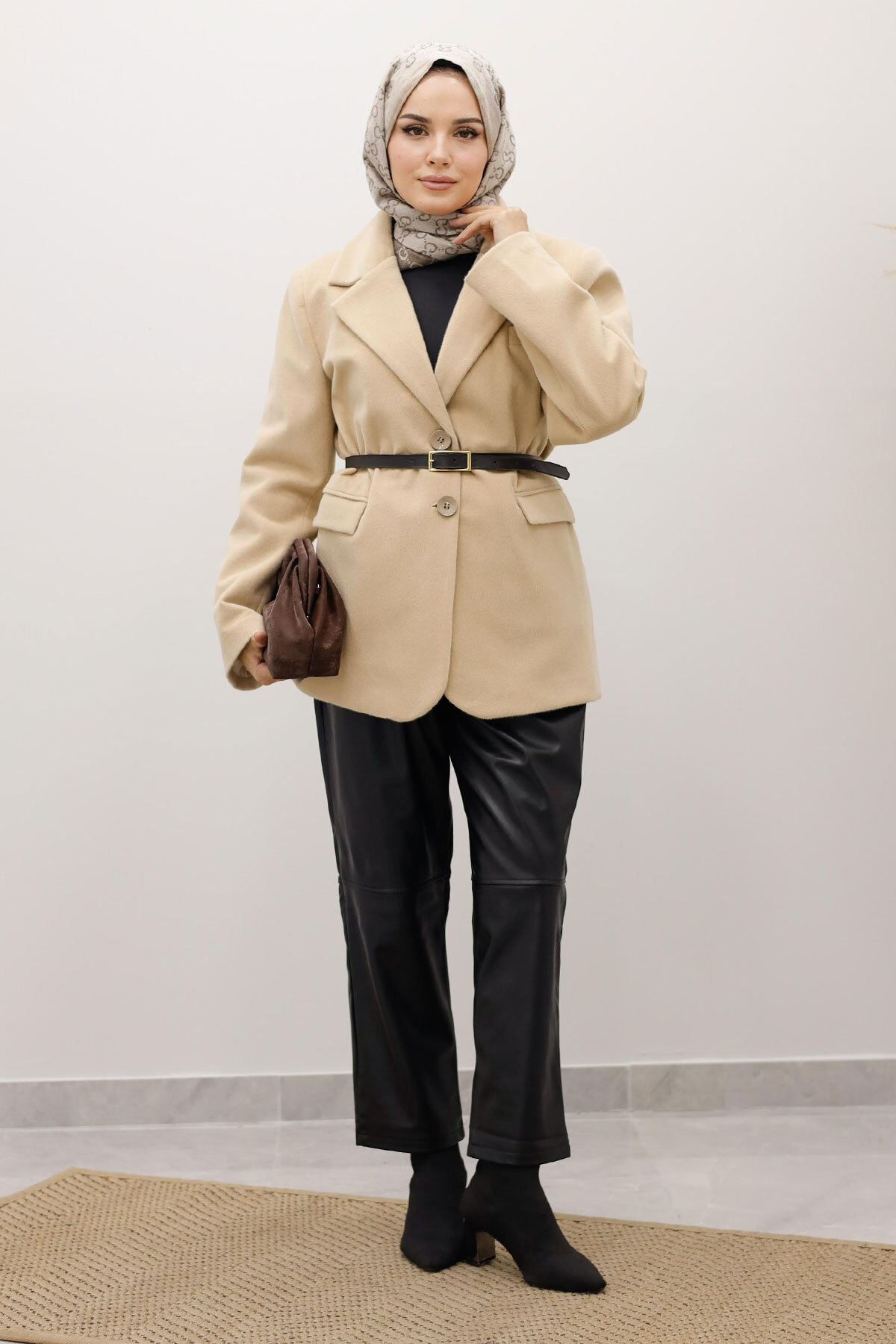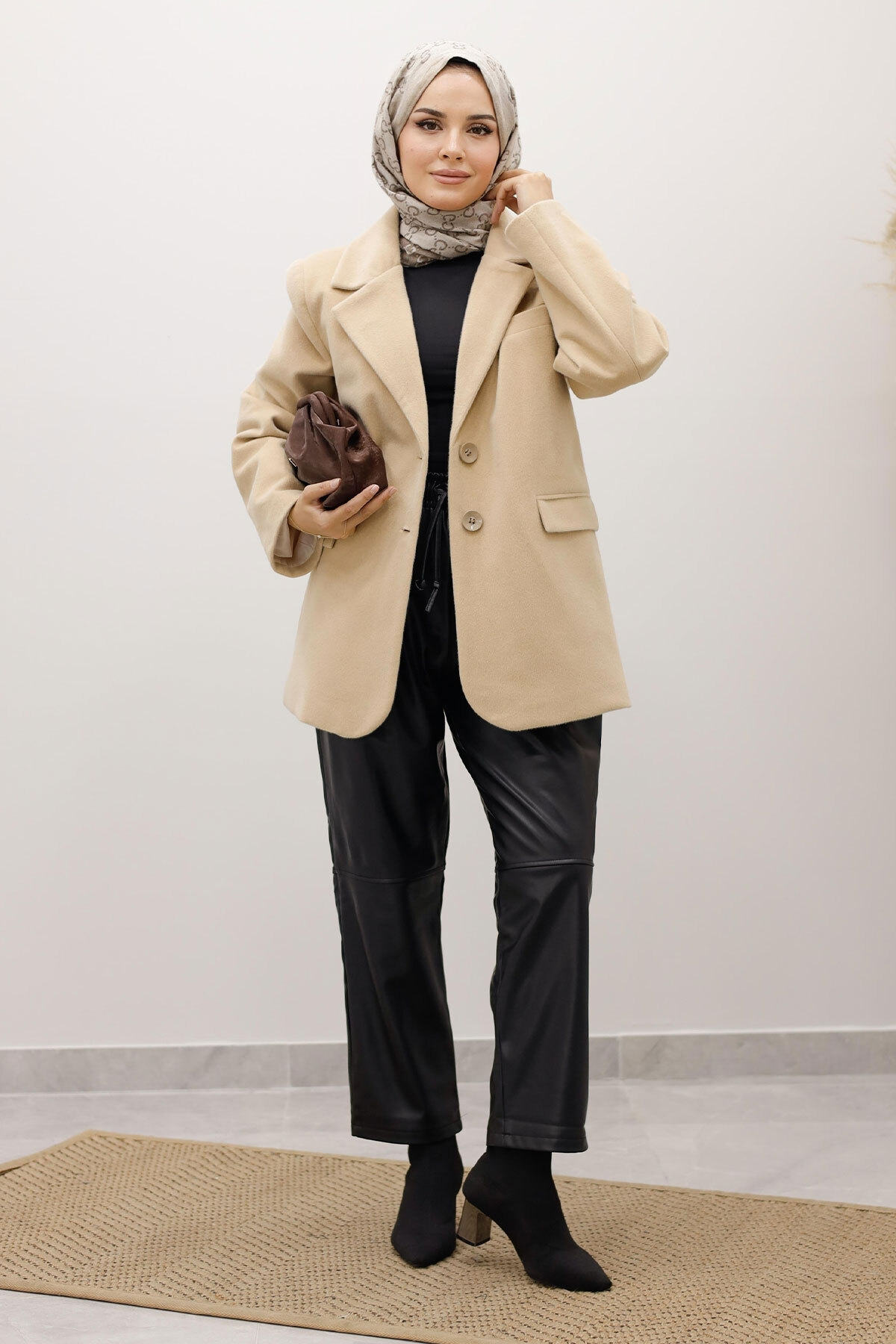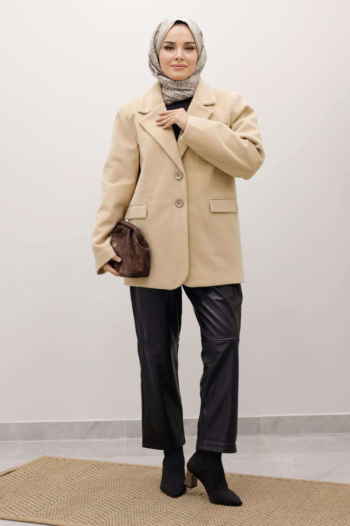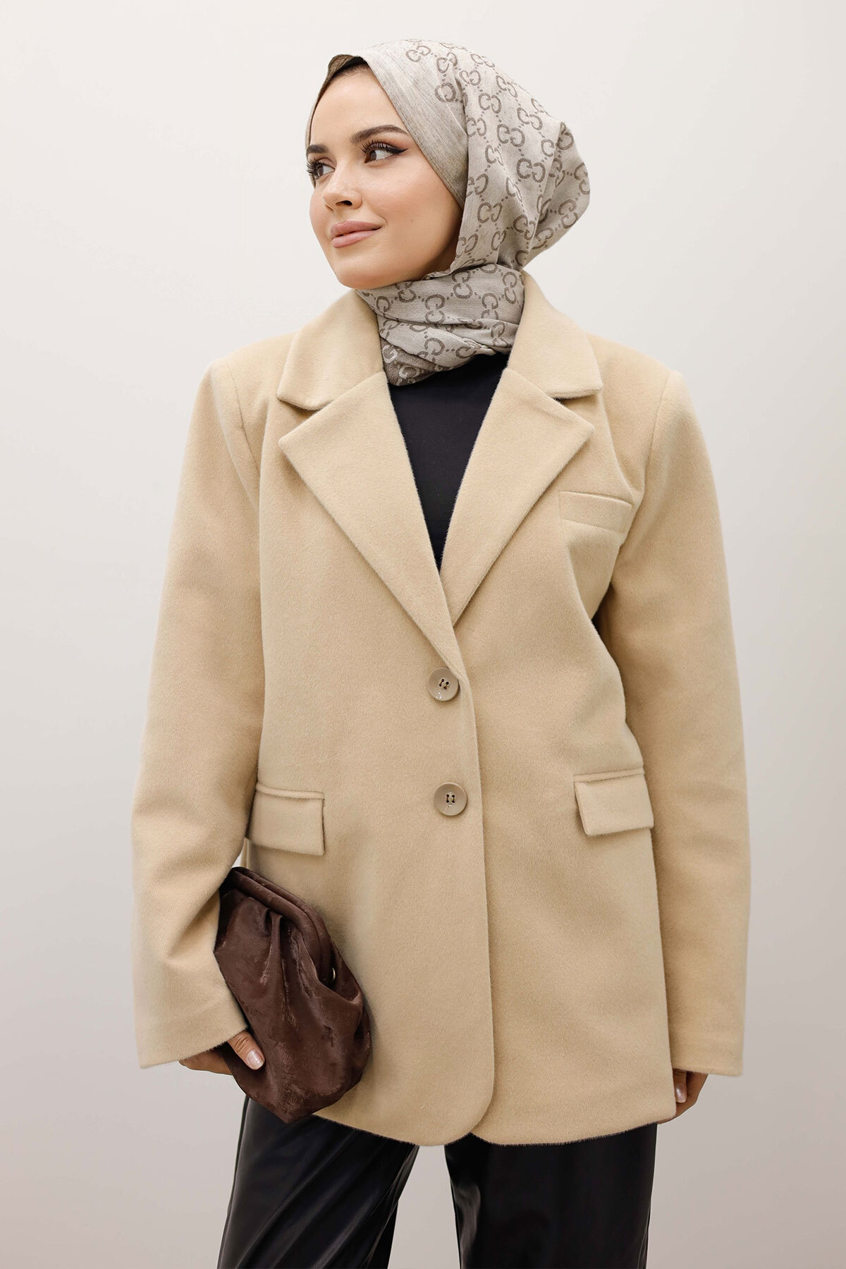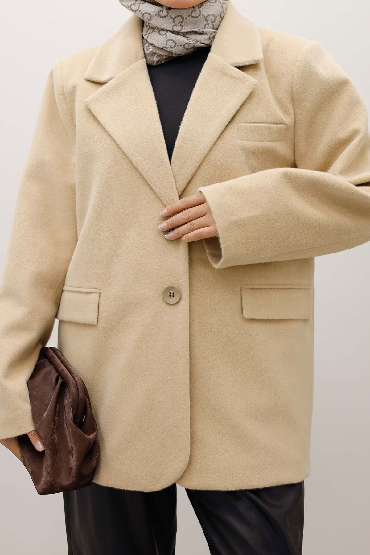 Çift Düğmeli Alpaka Ceket TSD250244 Bej