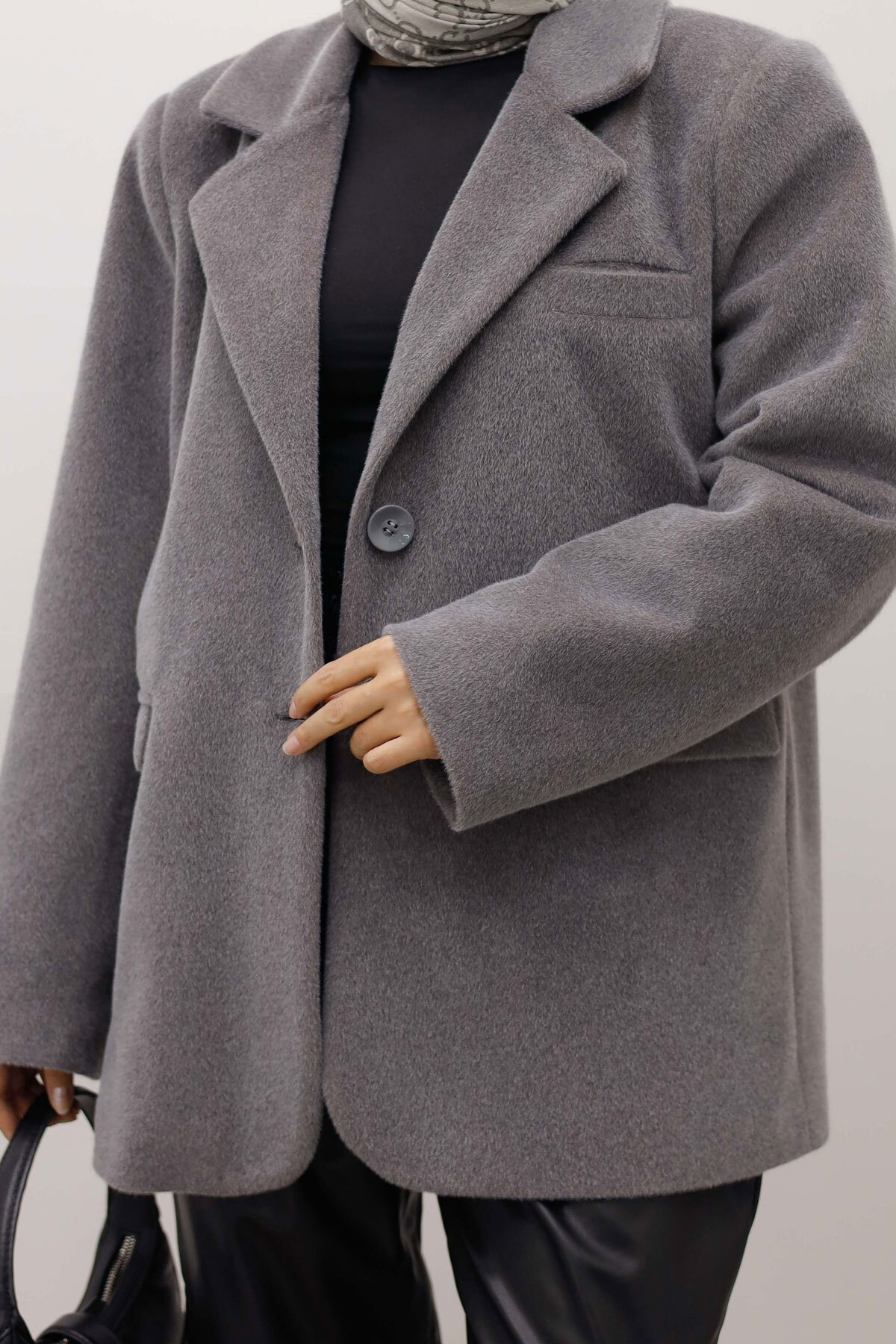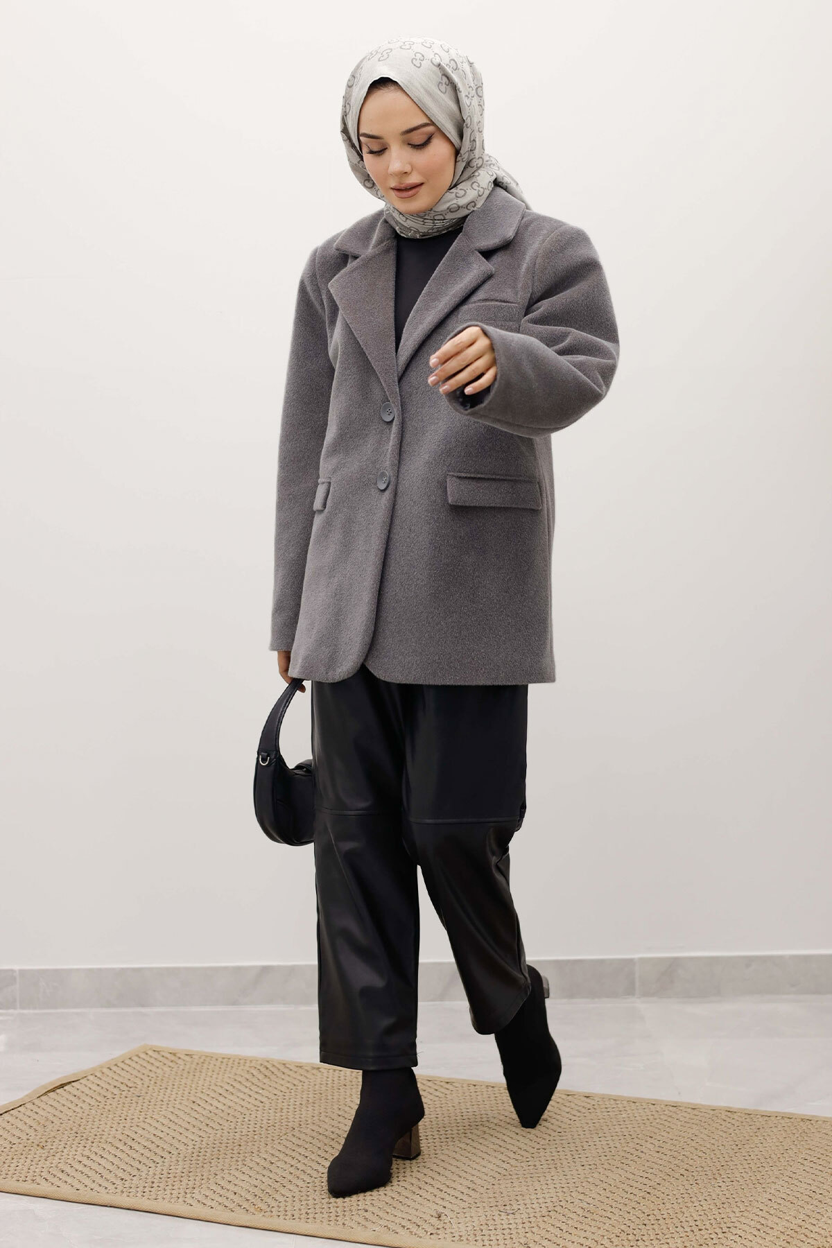 Çift Düğmeli Alpaka Ceket TSD250244 Gri