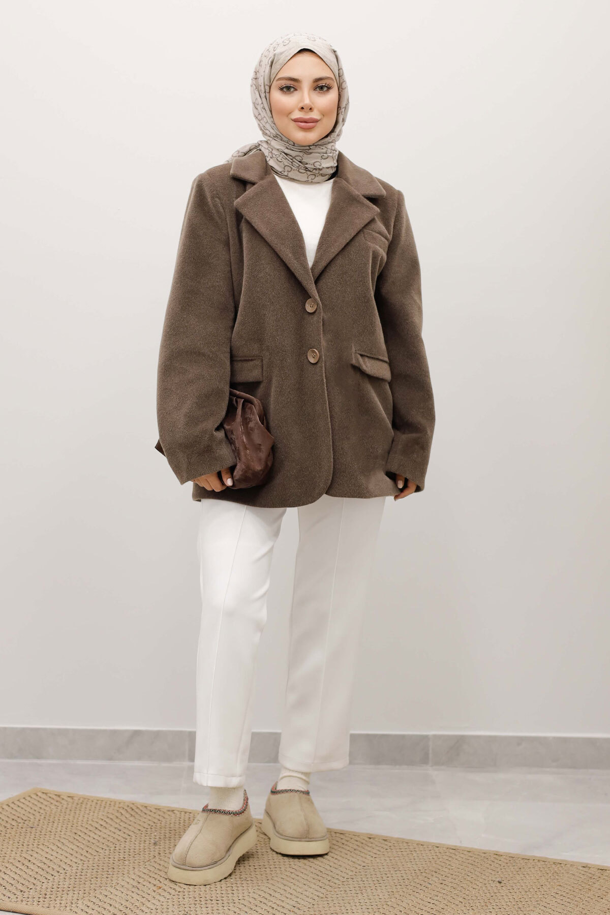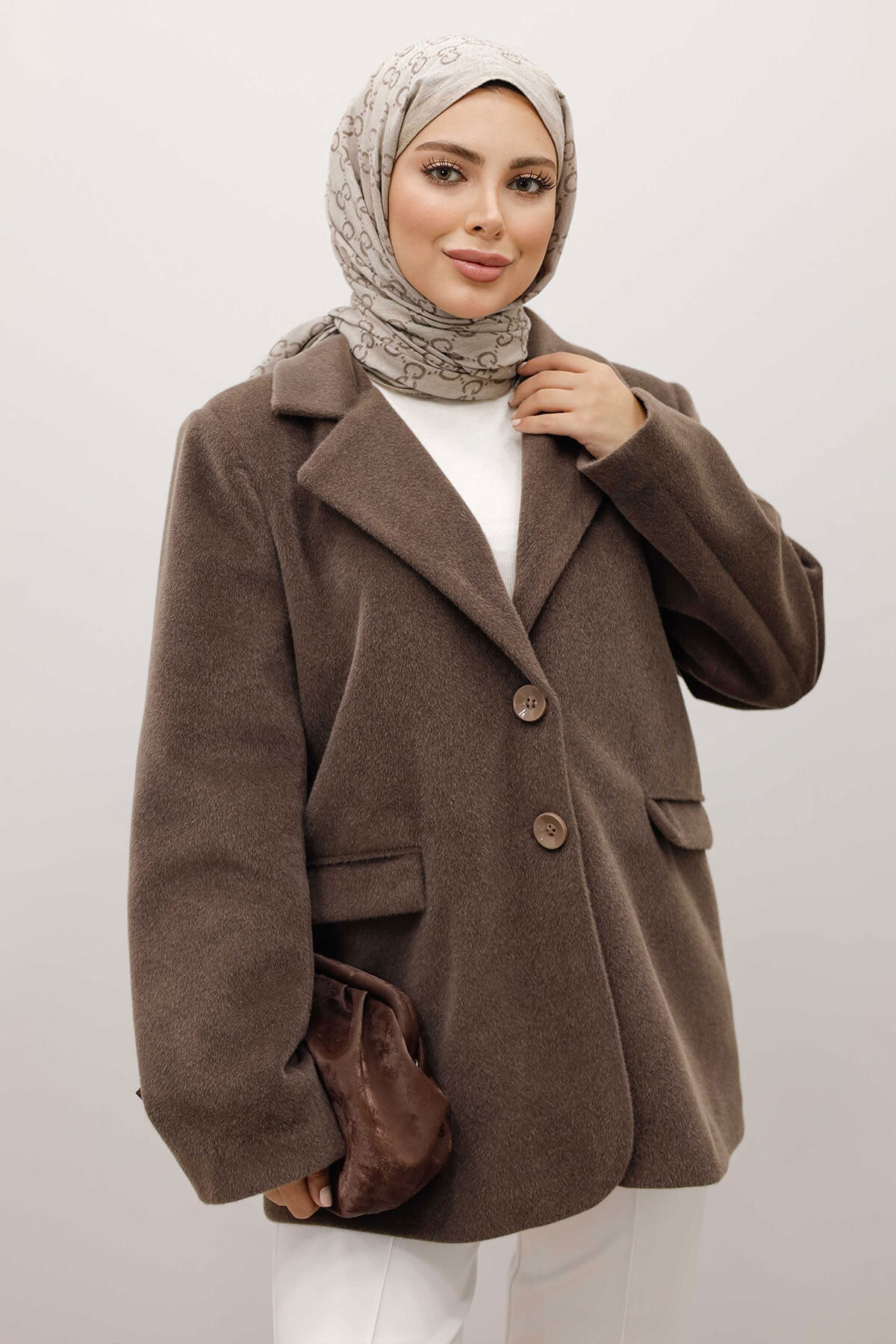 Çift Düğmeli Alpaka Ceket TSD250244 Kahverengi