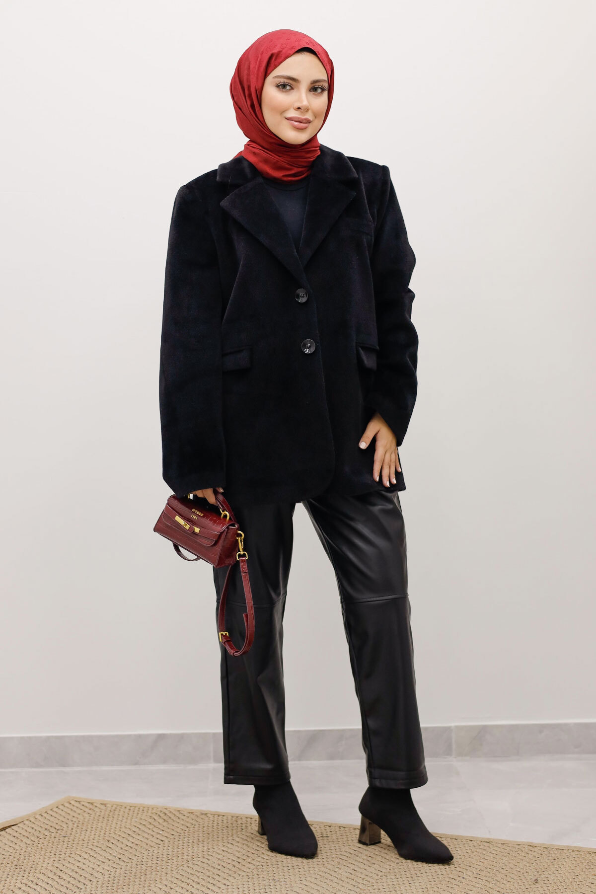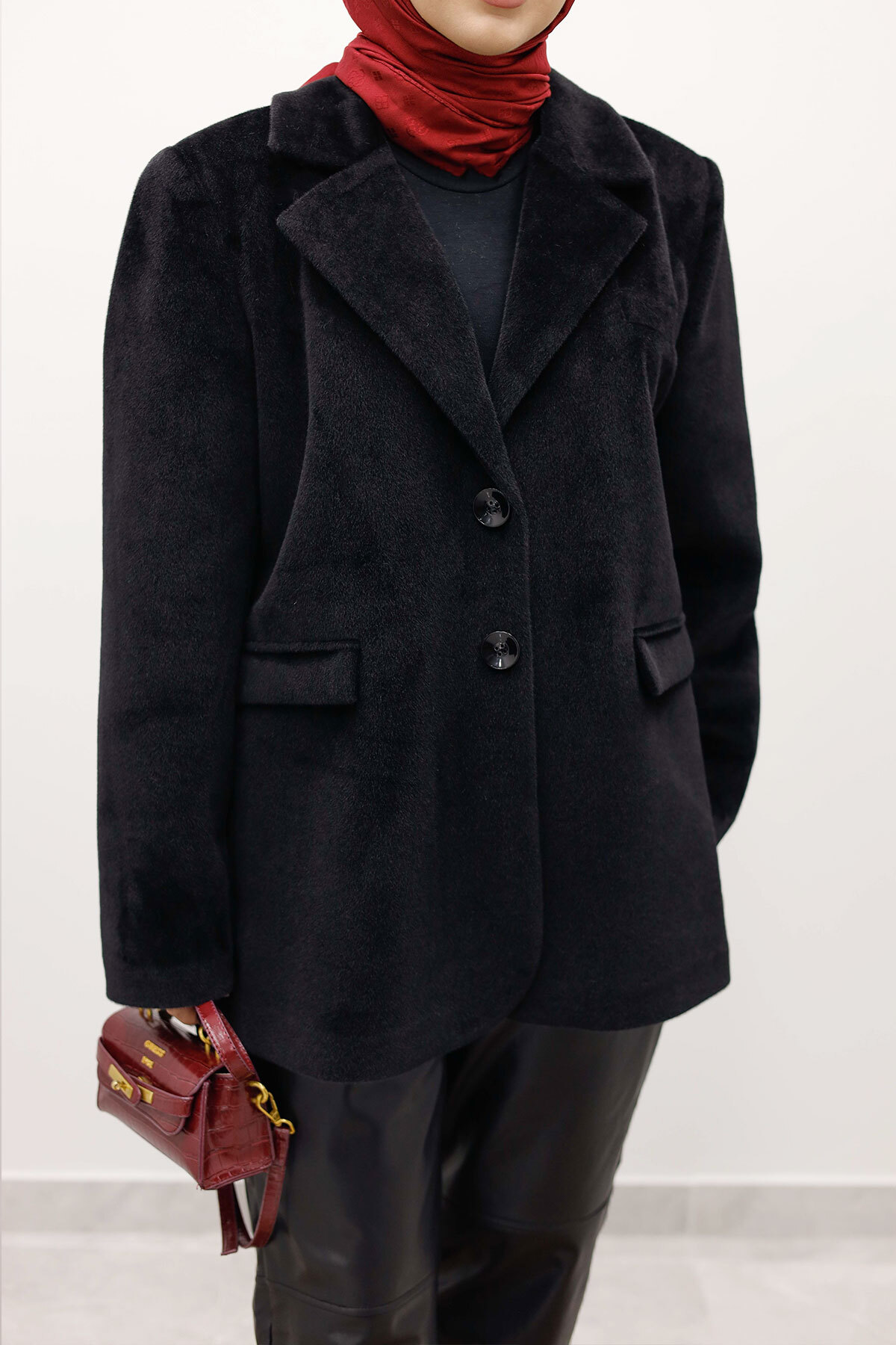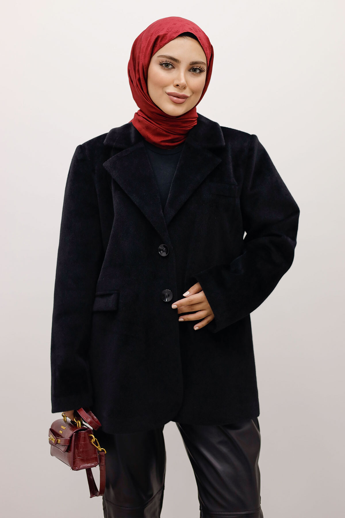 Çift Düğmeli Alpaka Ceket TSD250244 Siyah