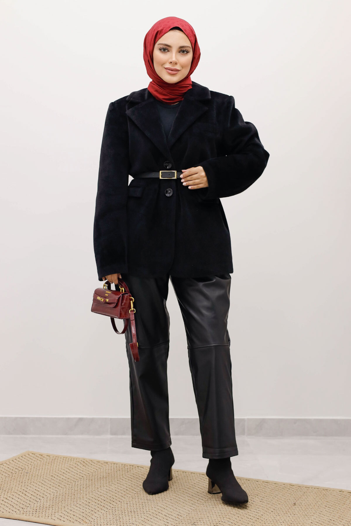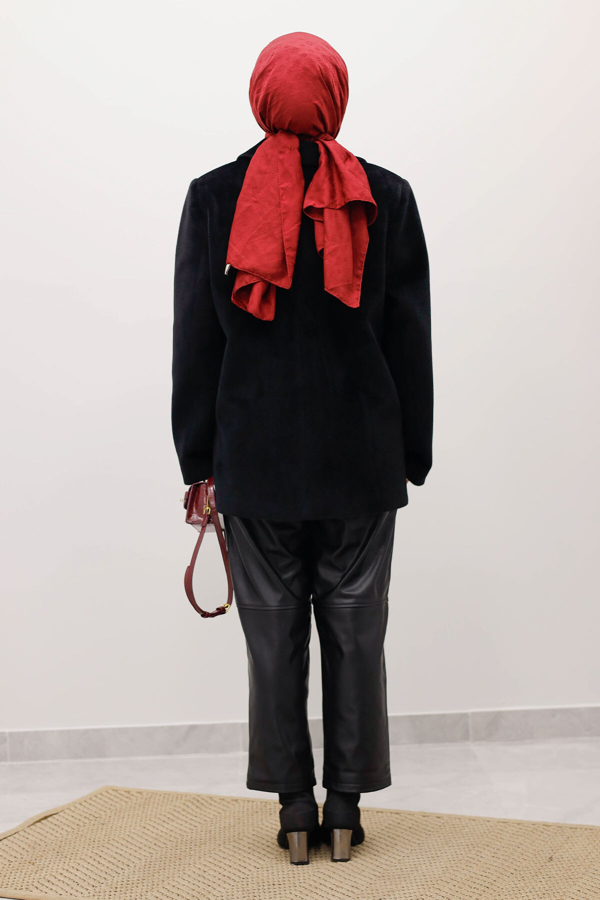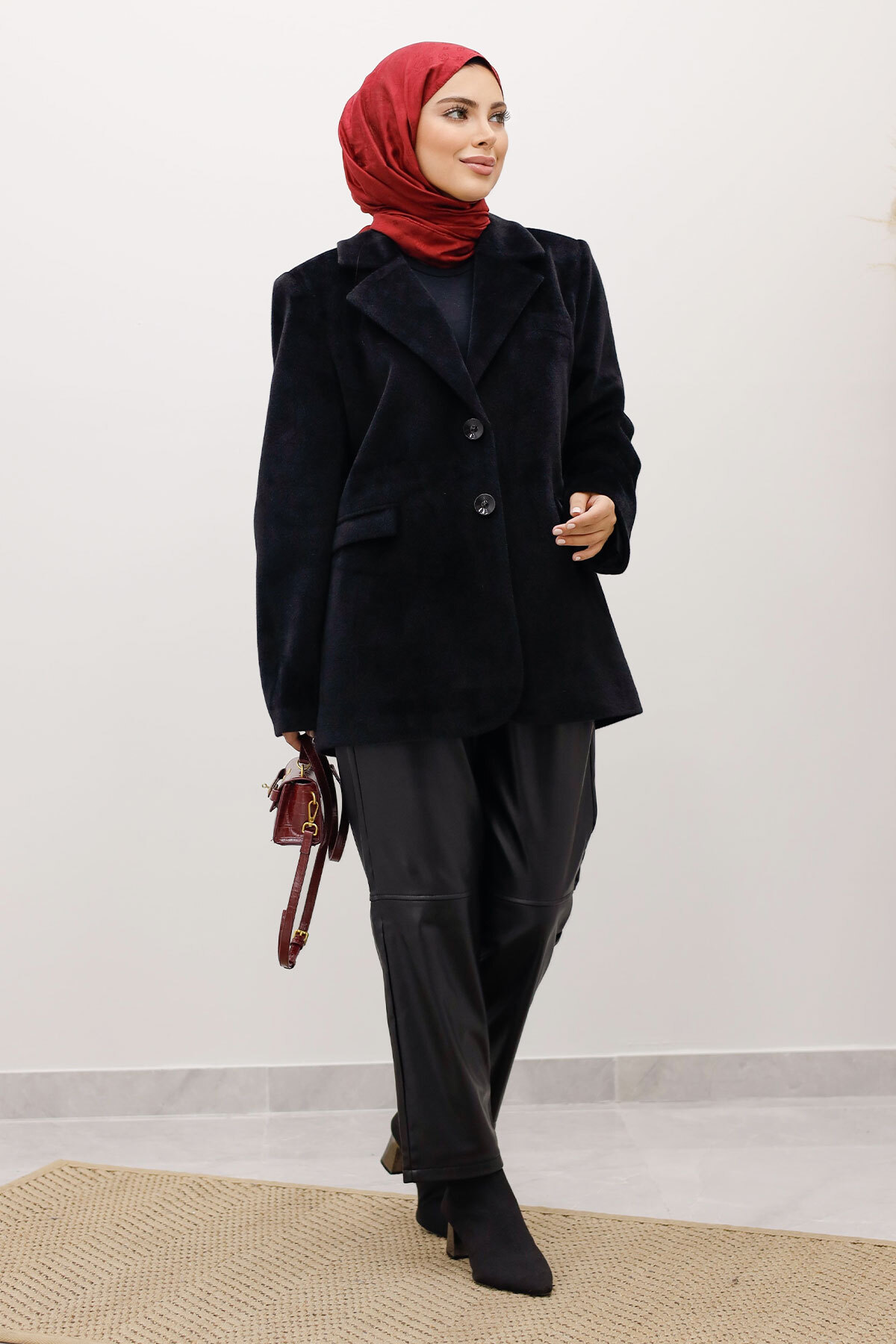 Çift Düğmeli Alpaka Ceket TSD250244 Siyah