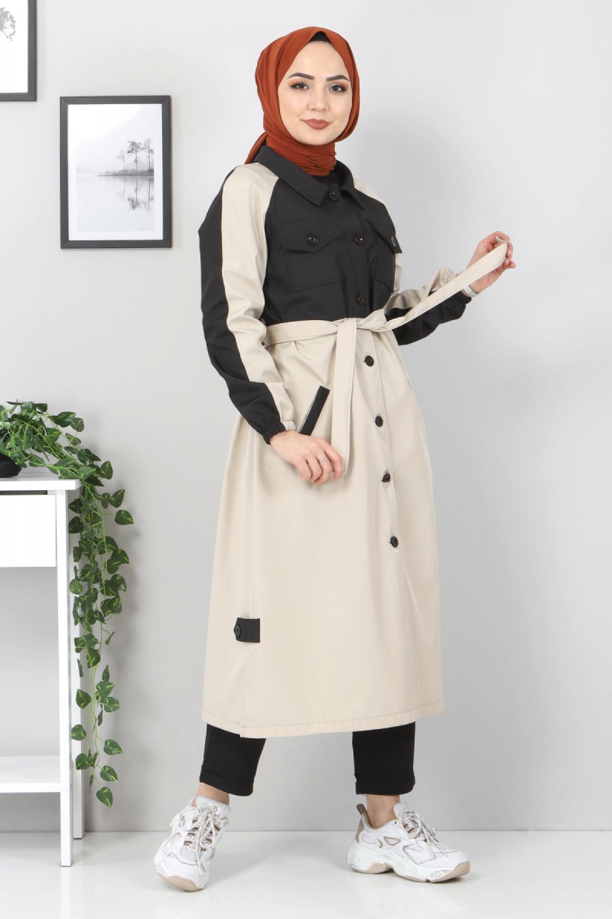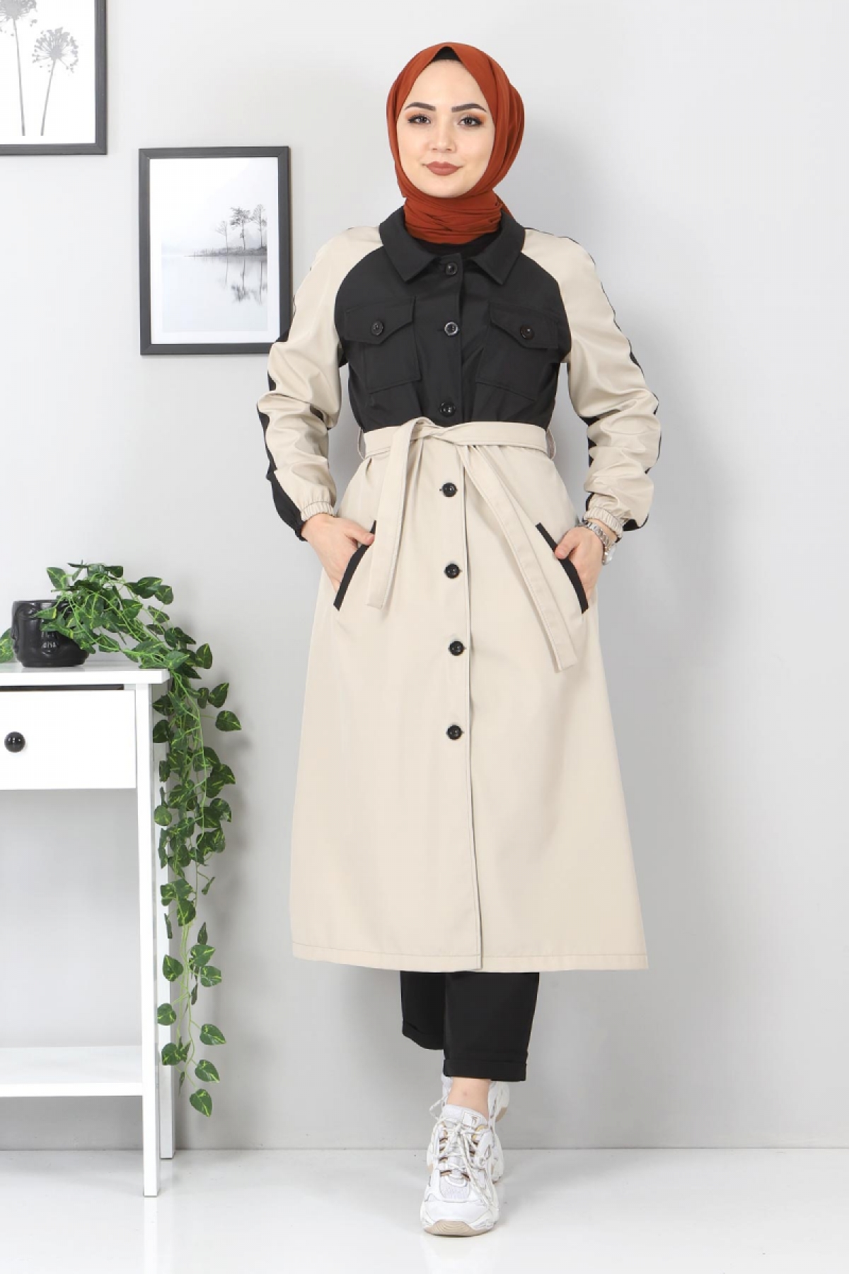 Ürün Özelliği : Yeni sezon Çift Renkli Trençkot modelidir. Boydan düğme ile kapanmaktadır. Kullanılabilir cepleri bulunmaktadır. Kol uçları lastiklidır.Kuşaklıdır. Astarsızdır. Ürün renginde konsept çekimlerinden dolayı ton farklılığı olabilir.