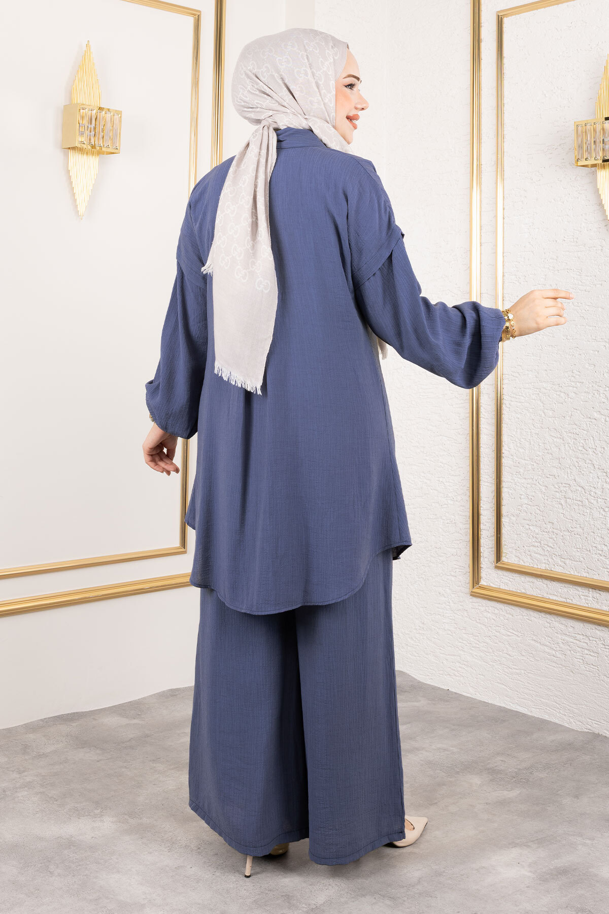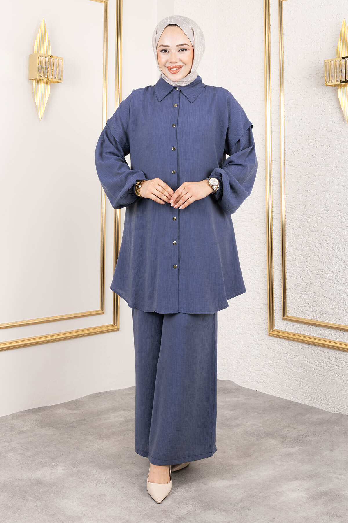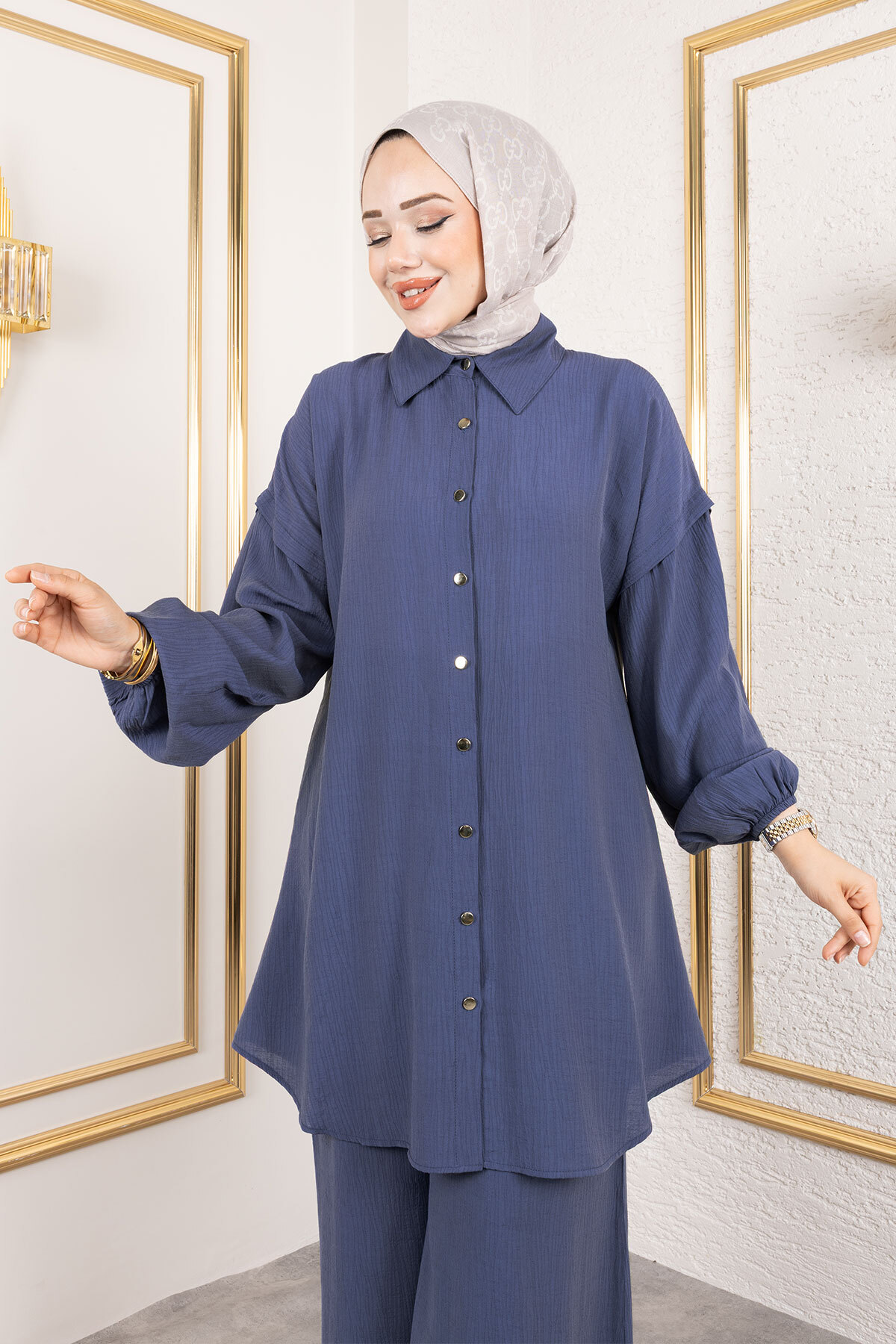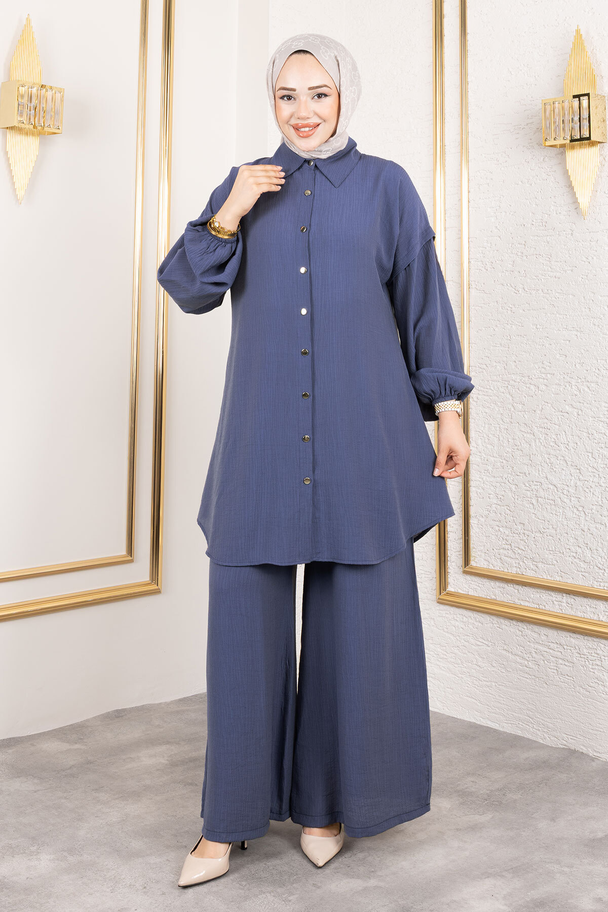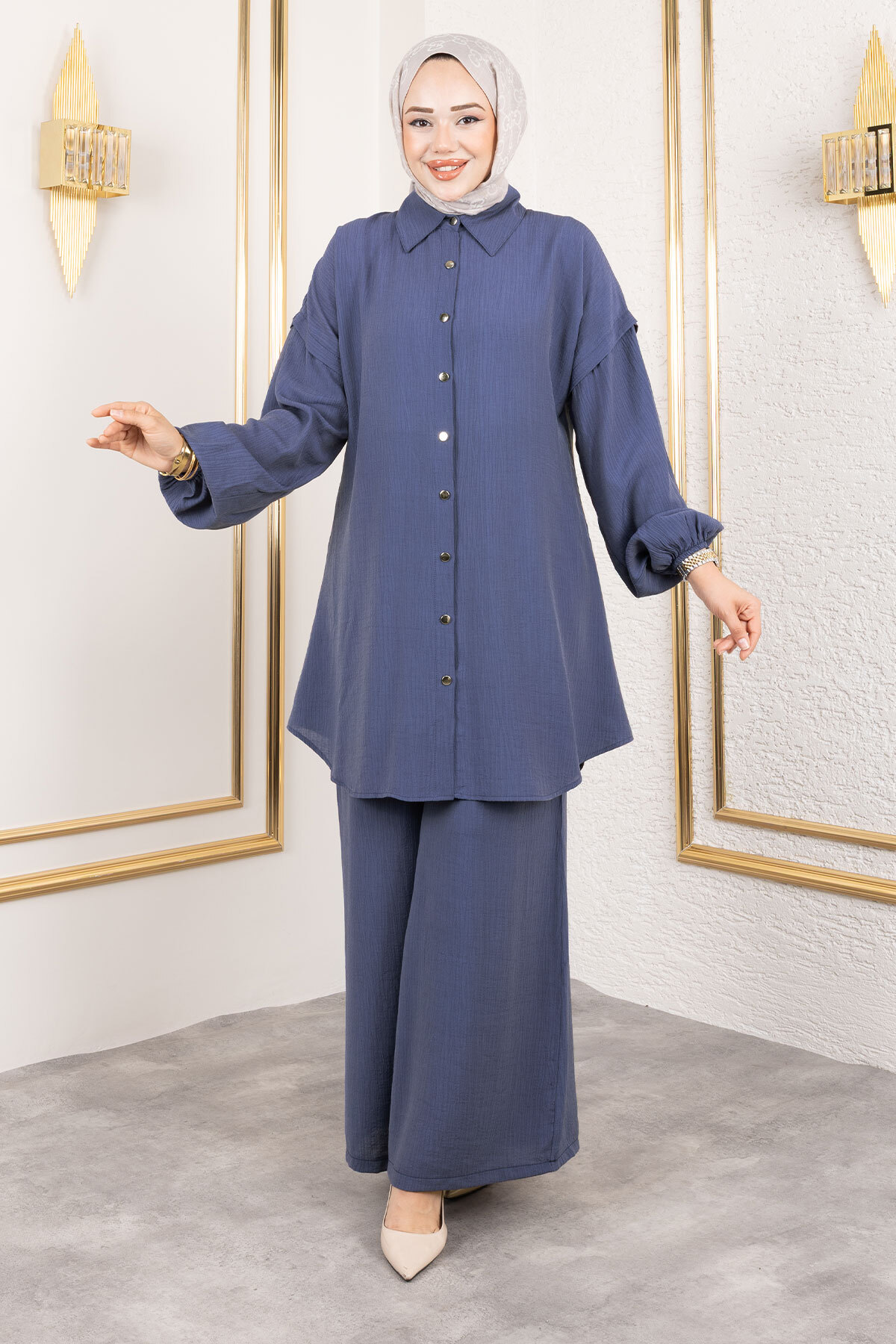 Ürün Özelliği : Yeni sezon Bileği Lastikli Düğmeli İkili Takım modelidir. Tunik boydan düğmelidir. Tuniğin bileği lastiklidir. Astarsızdır. Pantolonun yanlarında iki adet cebi bulunmaktadır. Ürün renginde konsept çekimlerinden dolayı ton farklılığı olabilir.