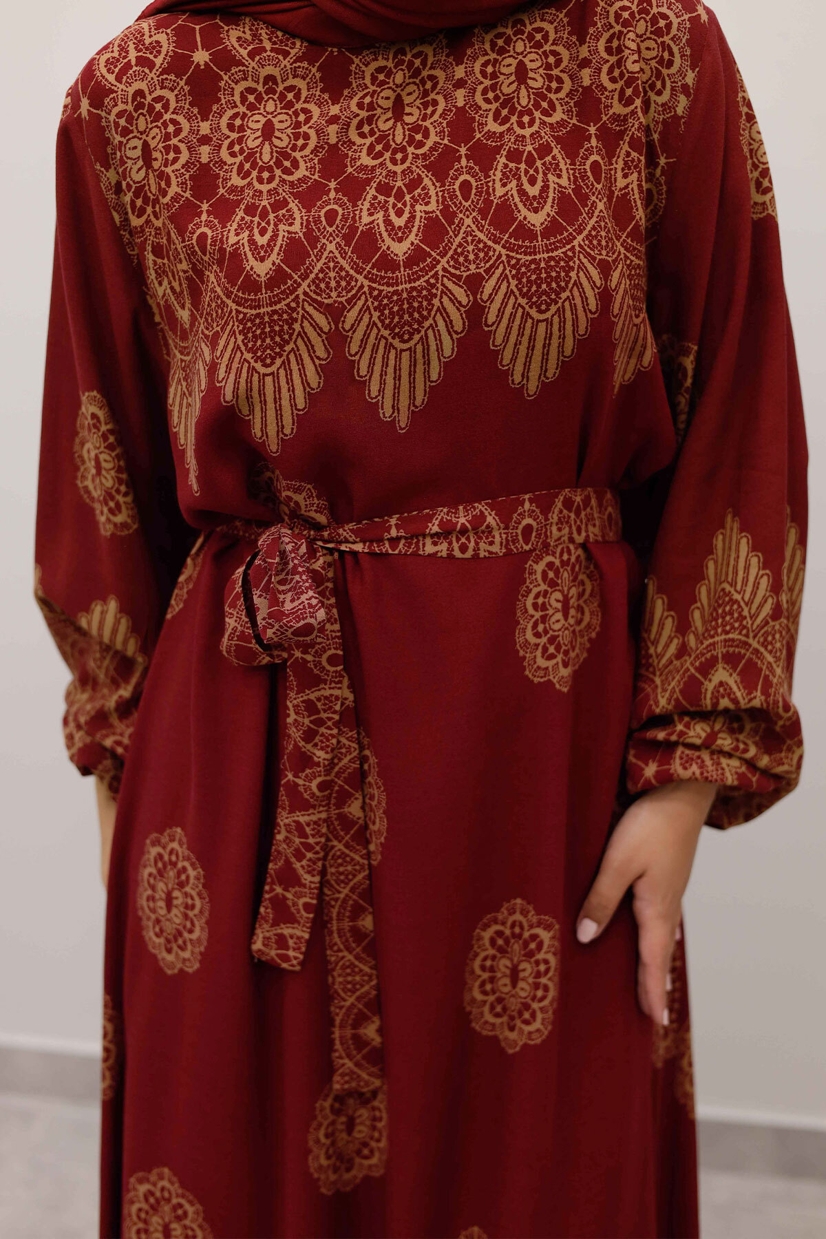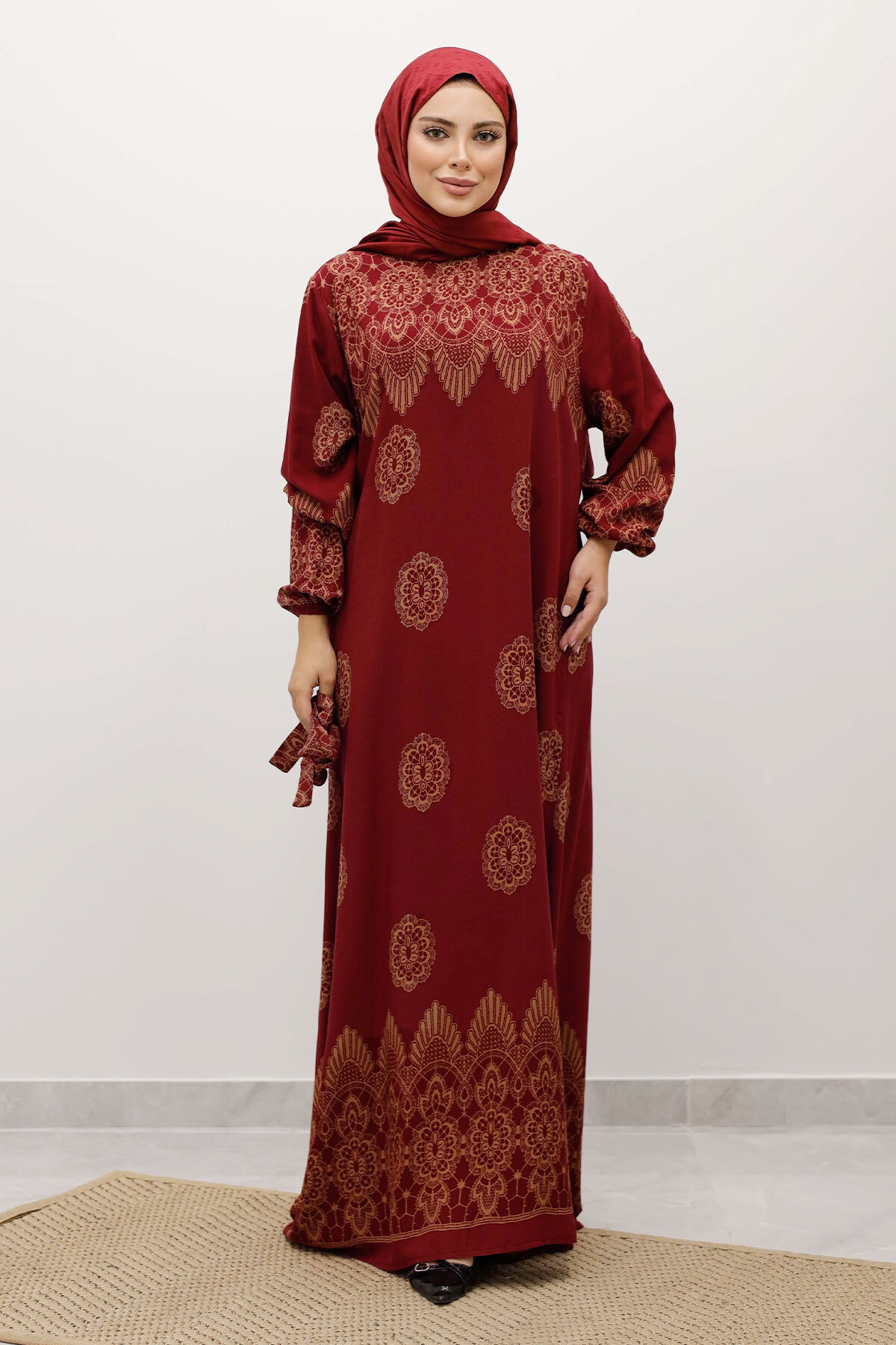 Çini Desenli Viskon Elbise TSD250237 Bordo