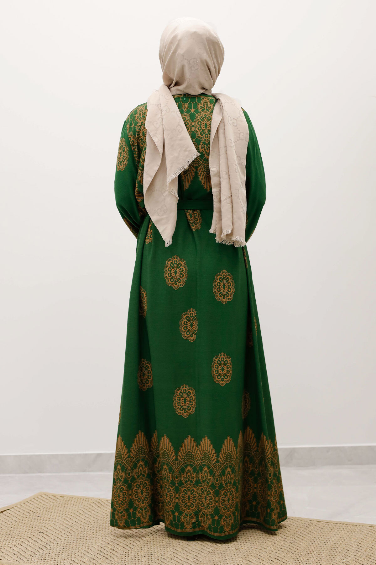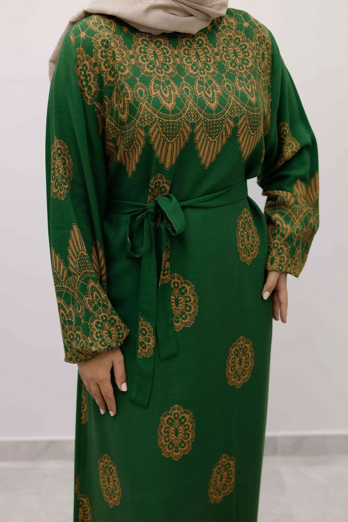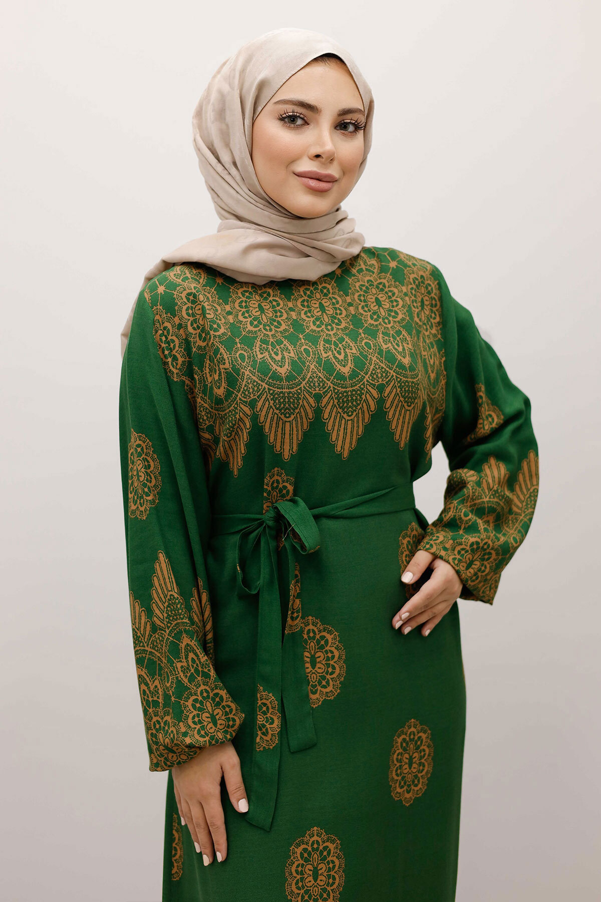 Çini Desenli Viskon Elbise TSD250237 Yeşil