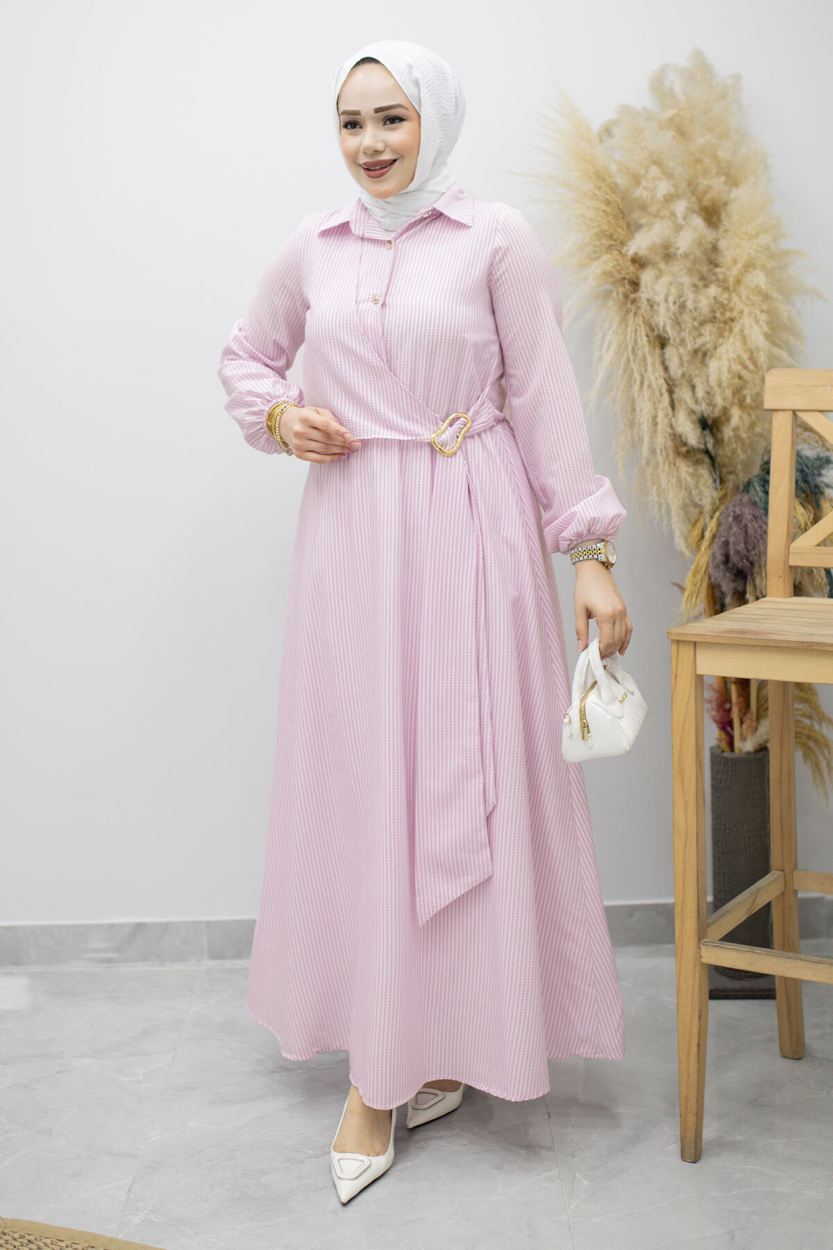Çizgili Tokalı Gömlek Elbise TSD260196 Lila Özellikleri
