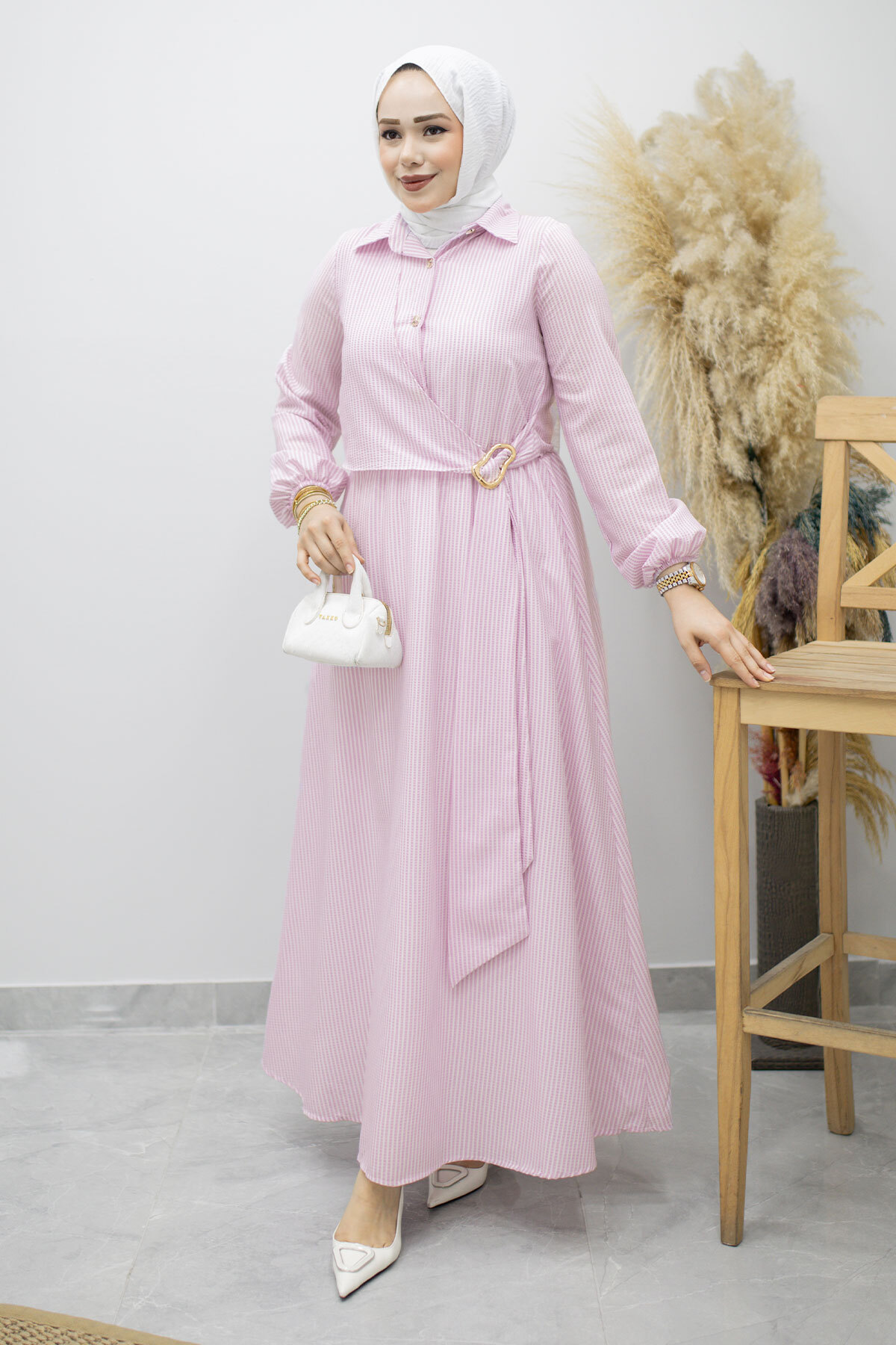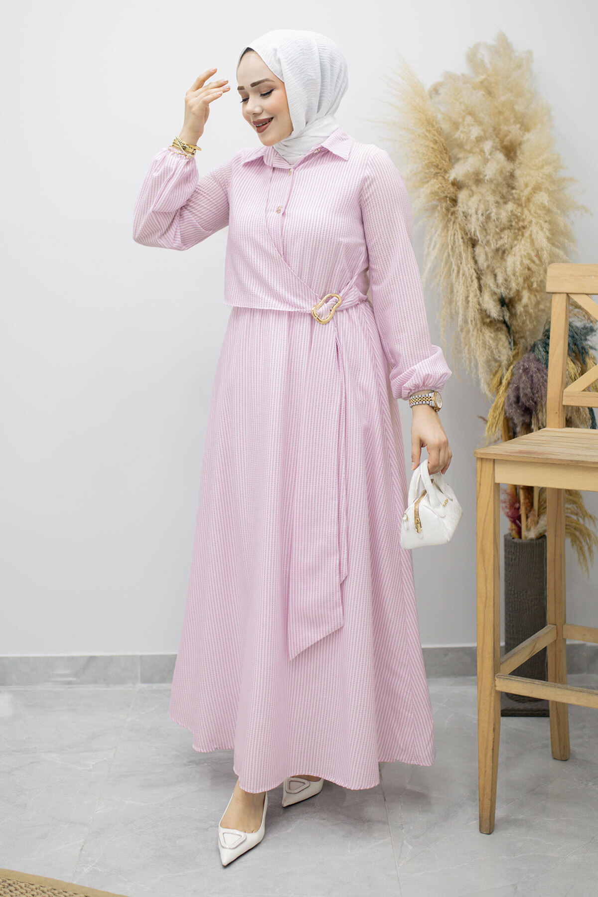 Ürün Özelliği : Yeni sezon Çizgili Tokalı Gömlek Elbise modelidir.
