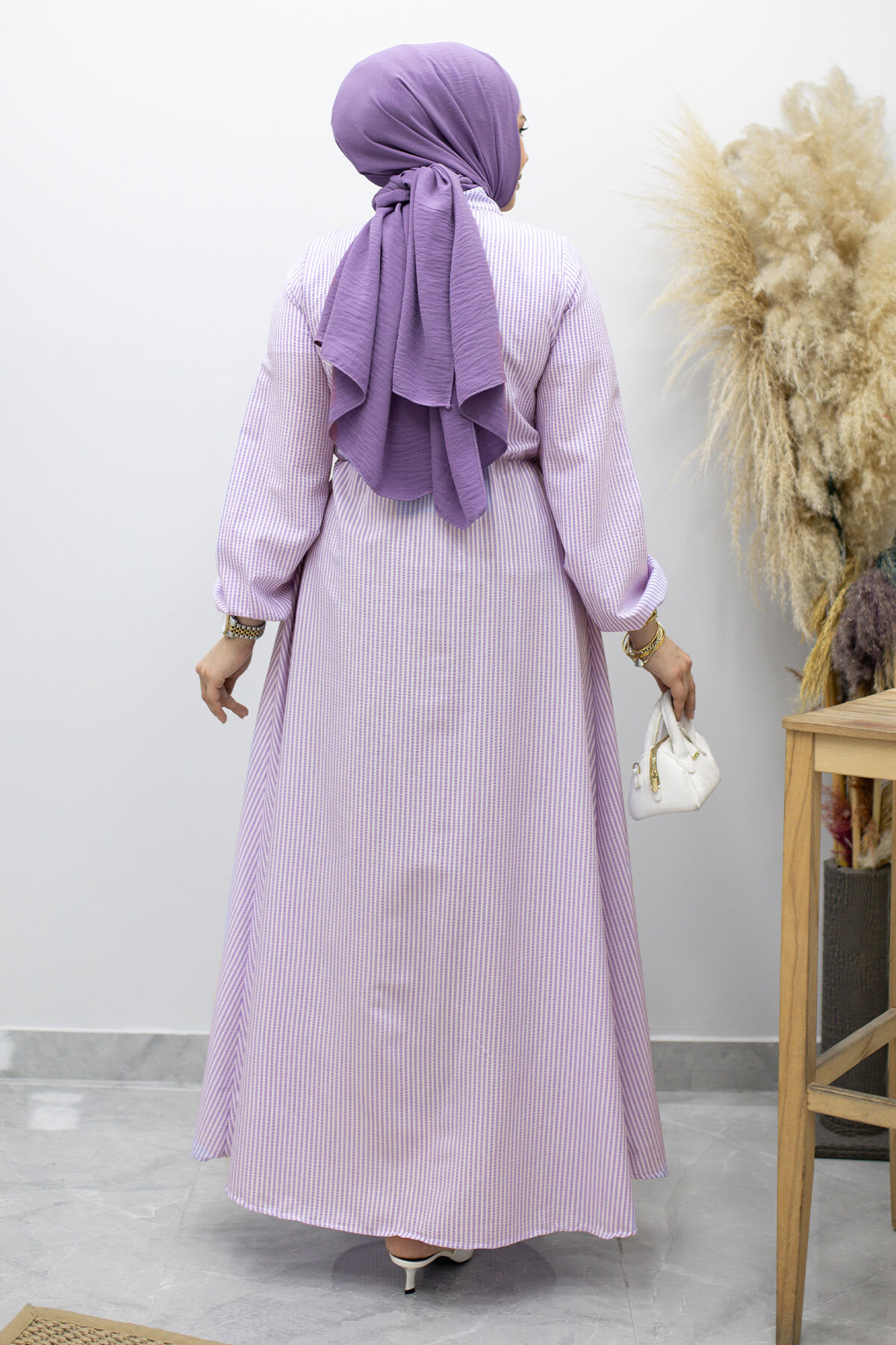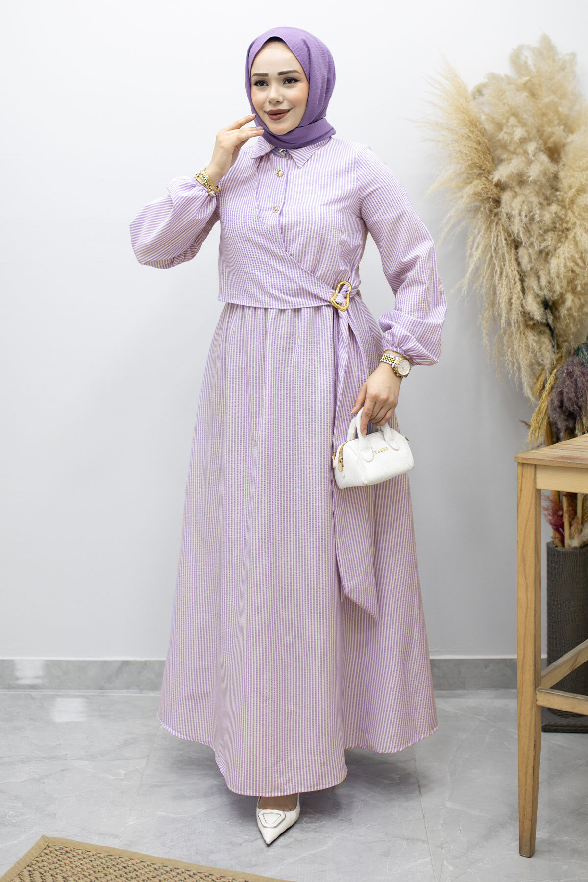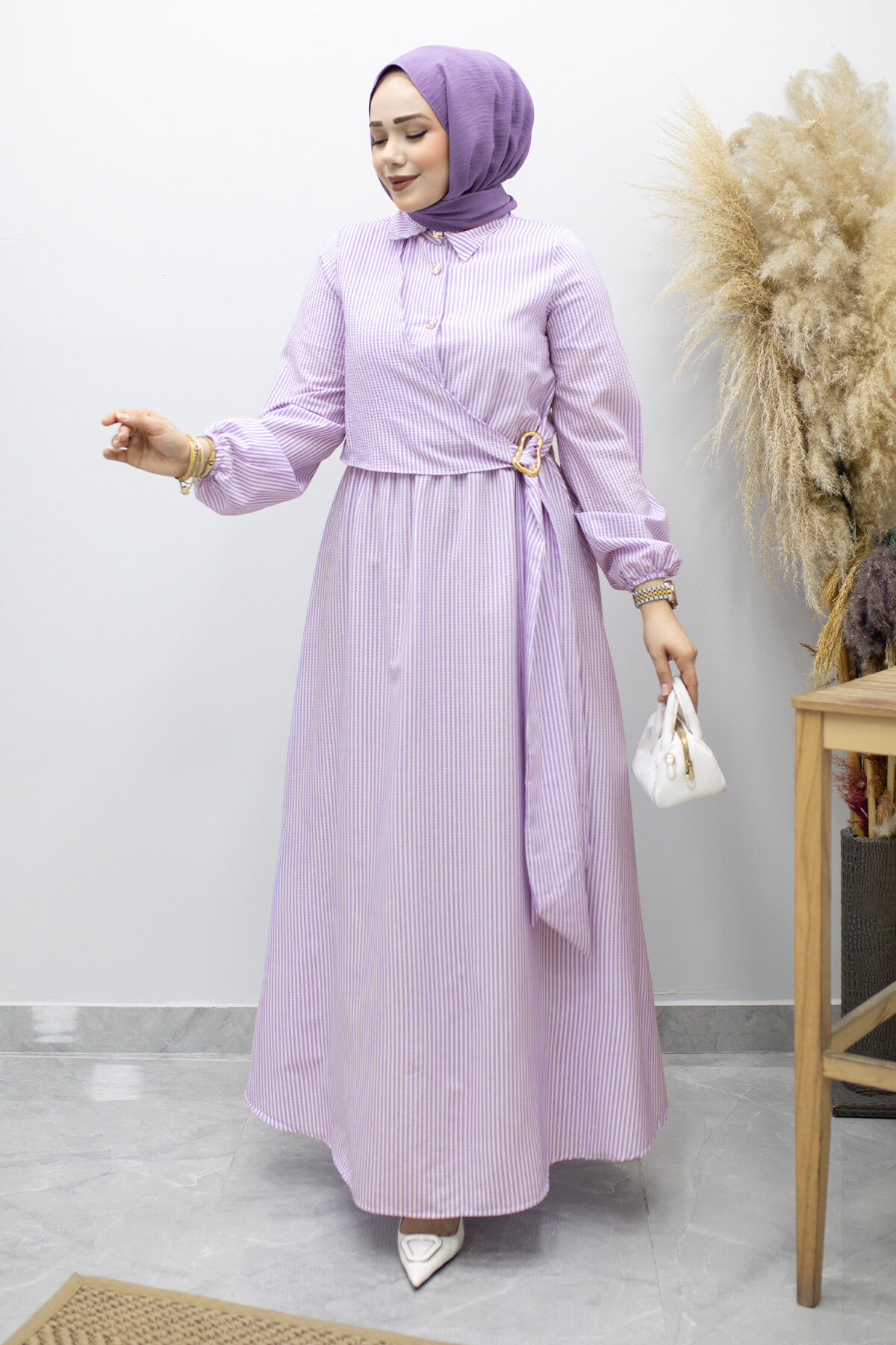 Çizgili Tokalı Gömlek Elbise TSD260196 Mor Özellikleri