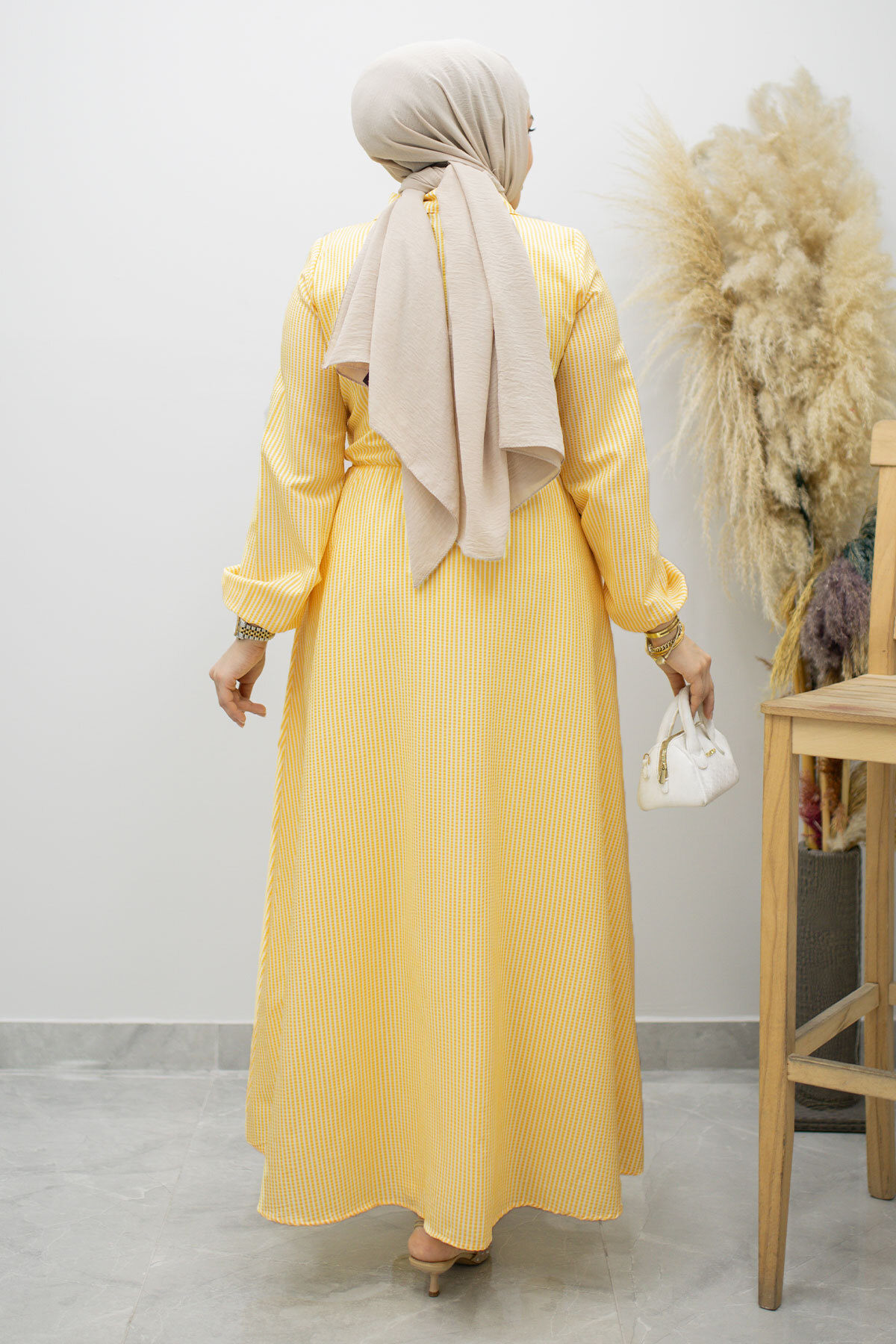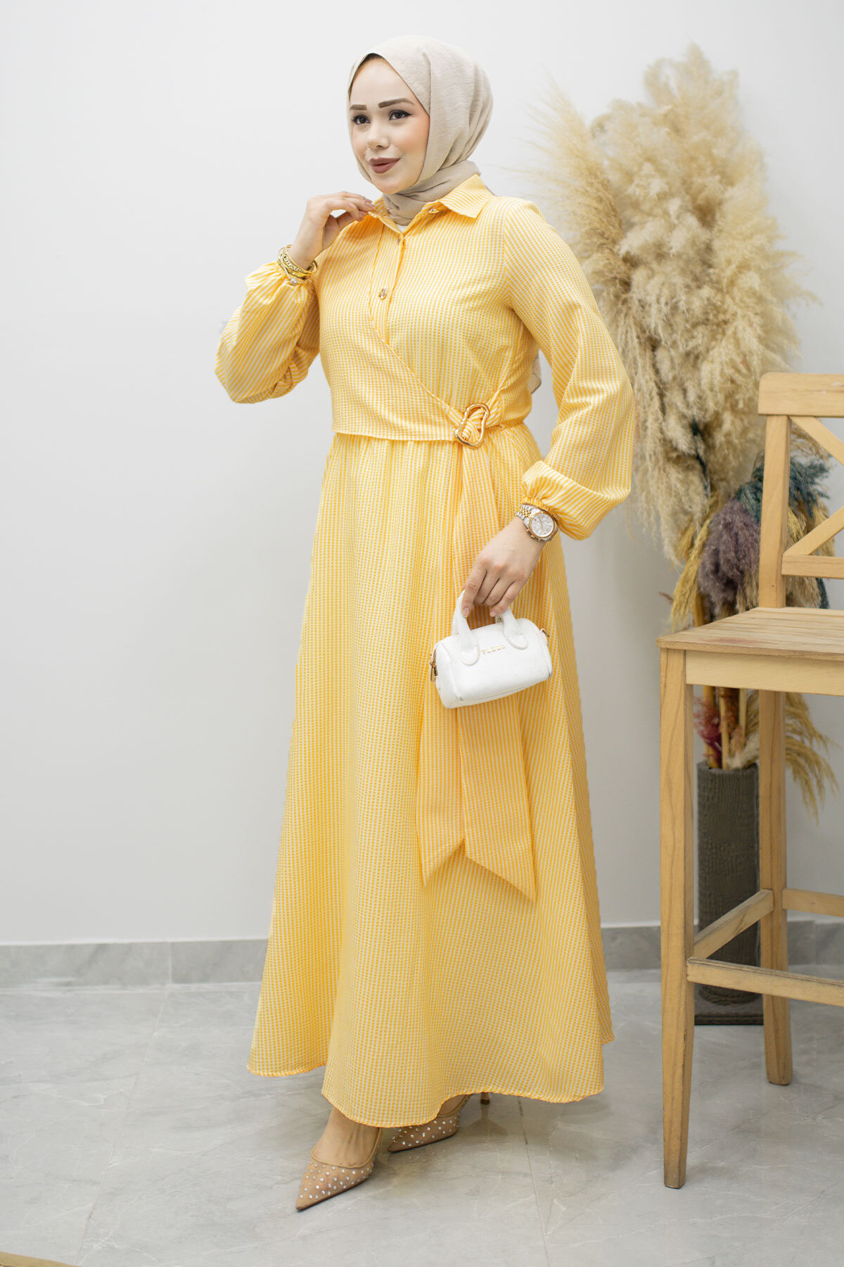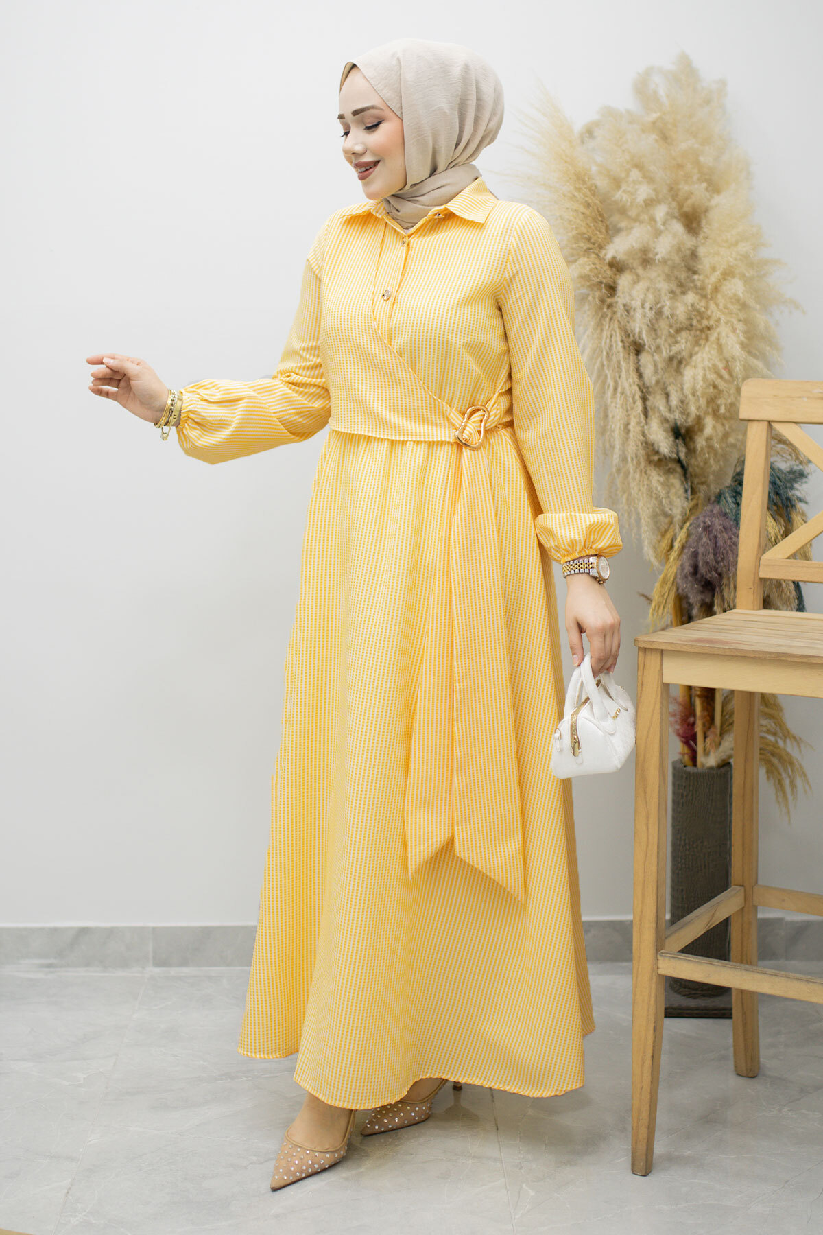 Çizgili Tokalı Gömlek Elbise TSD260196 Sarı Özellikleri