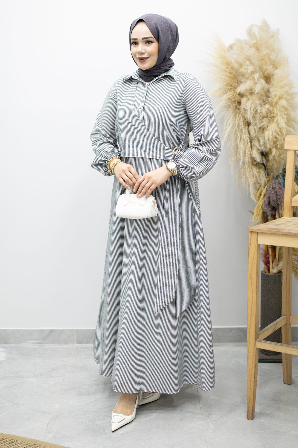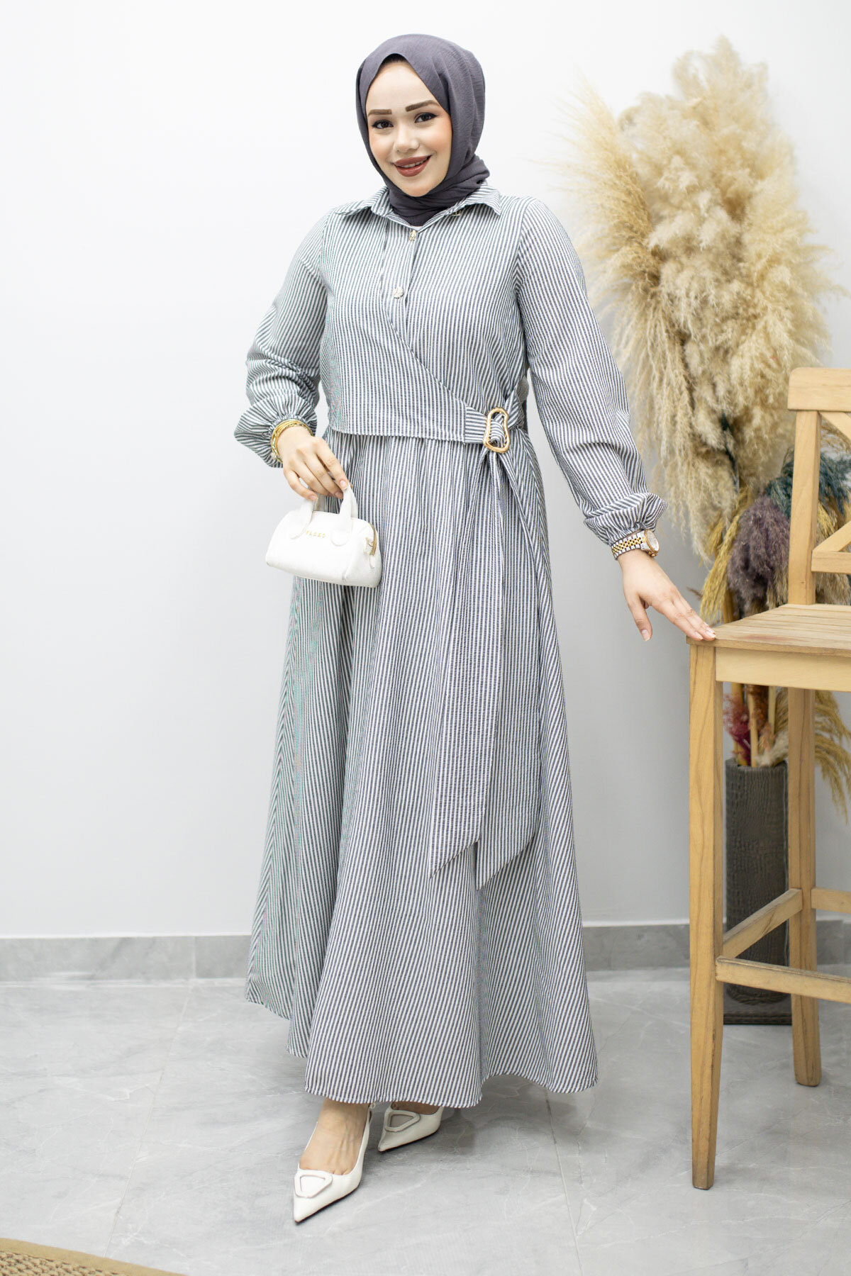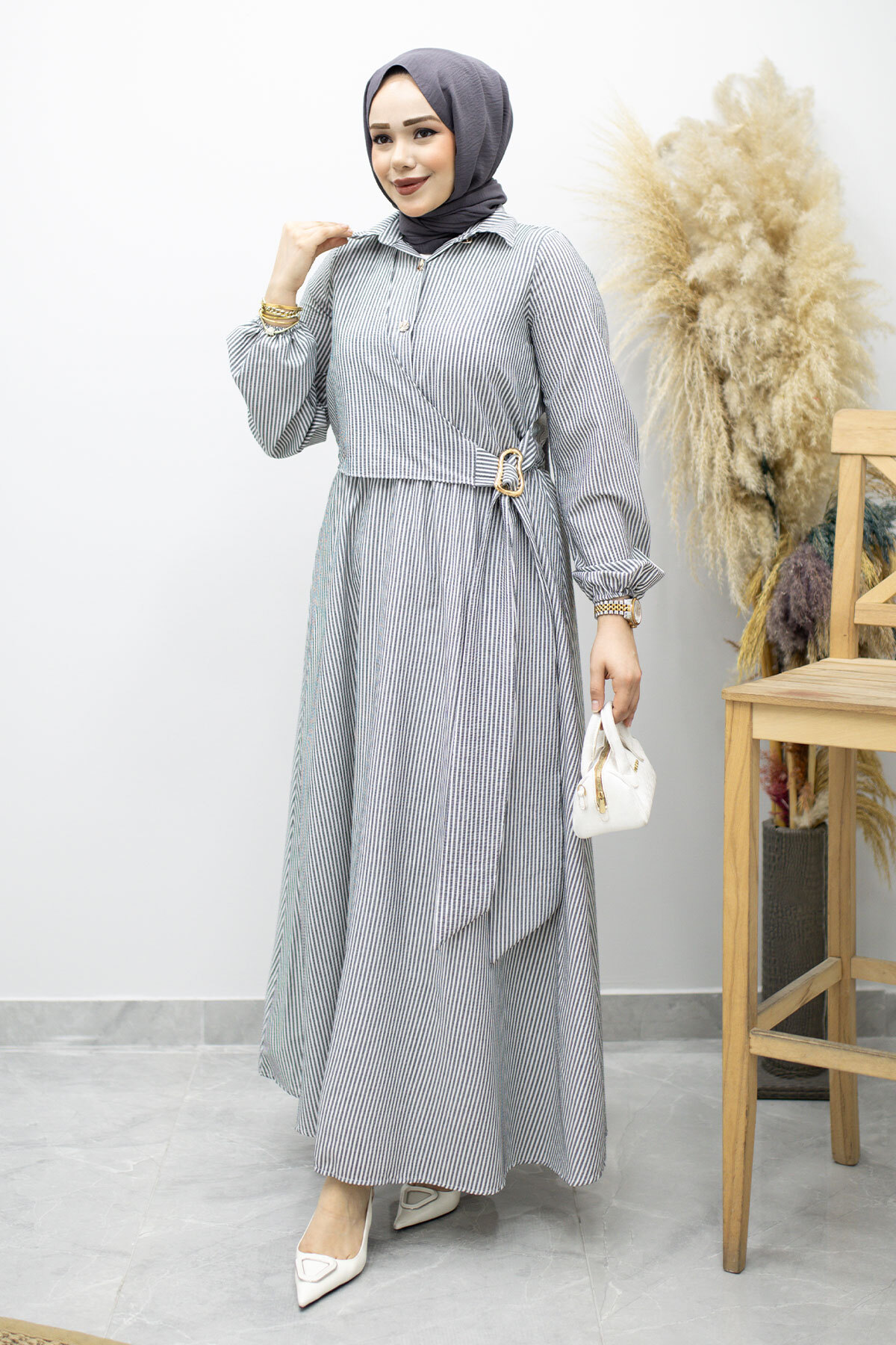 Ürün Özelliği : Yeni sezon Çizgili Tokalı Gömlek Elbise modelidir.
