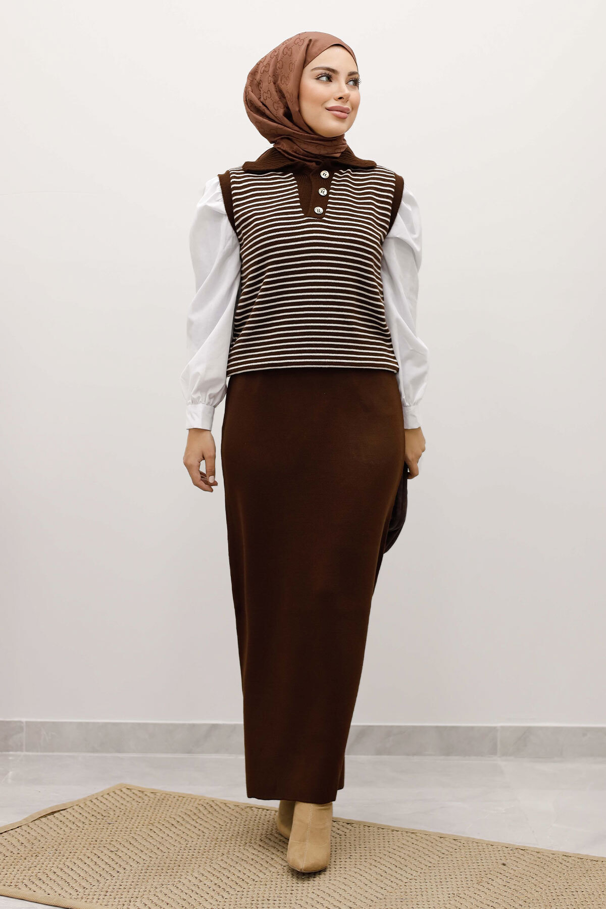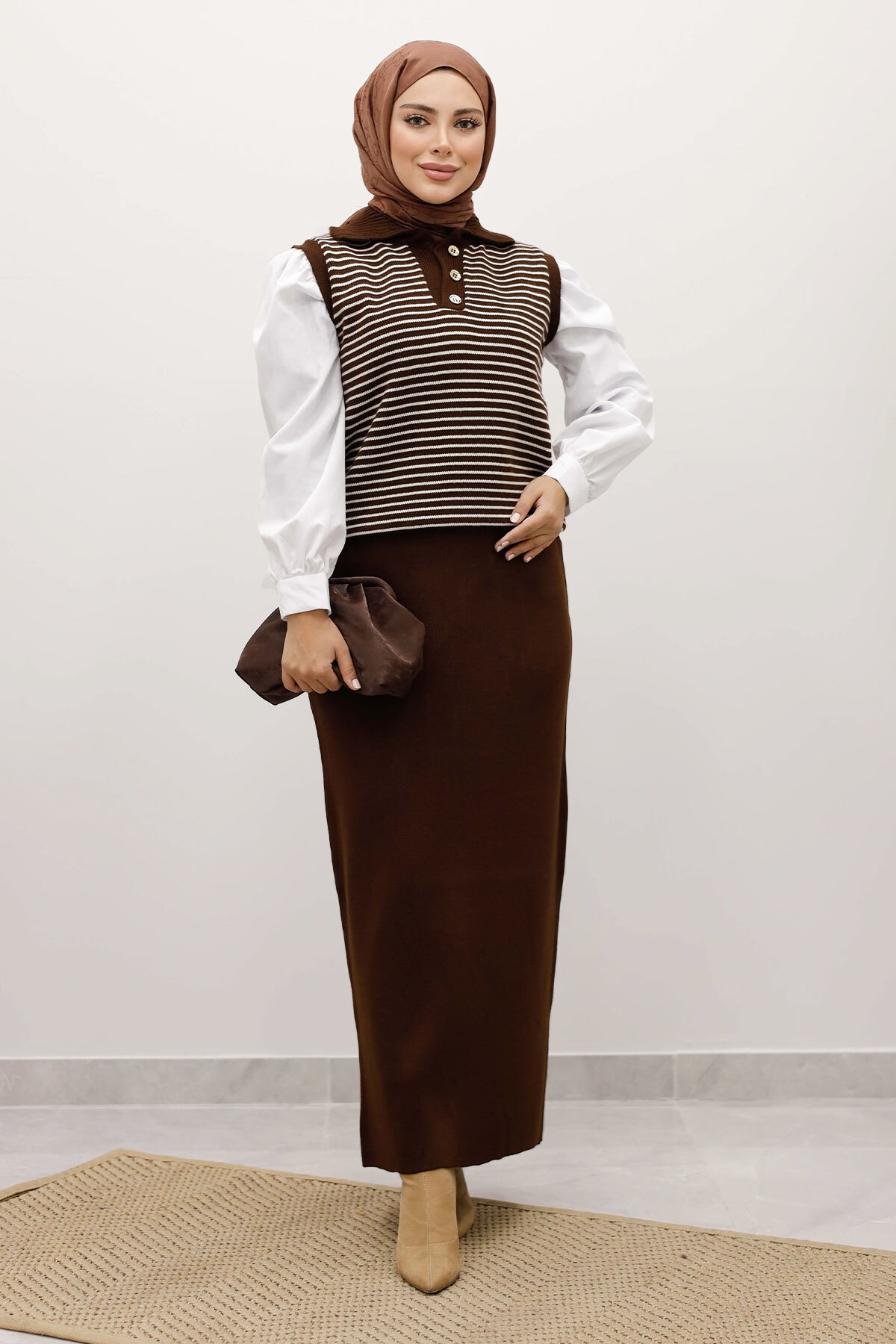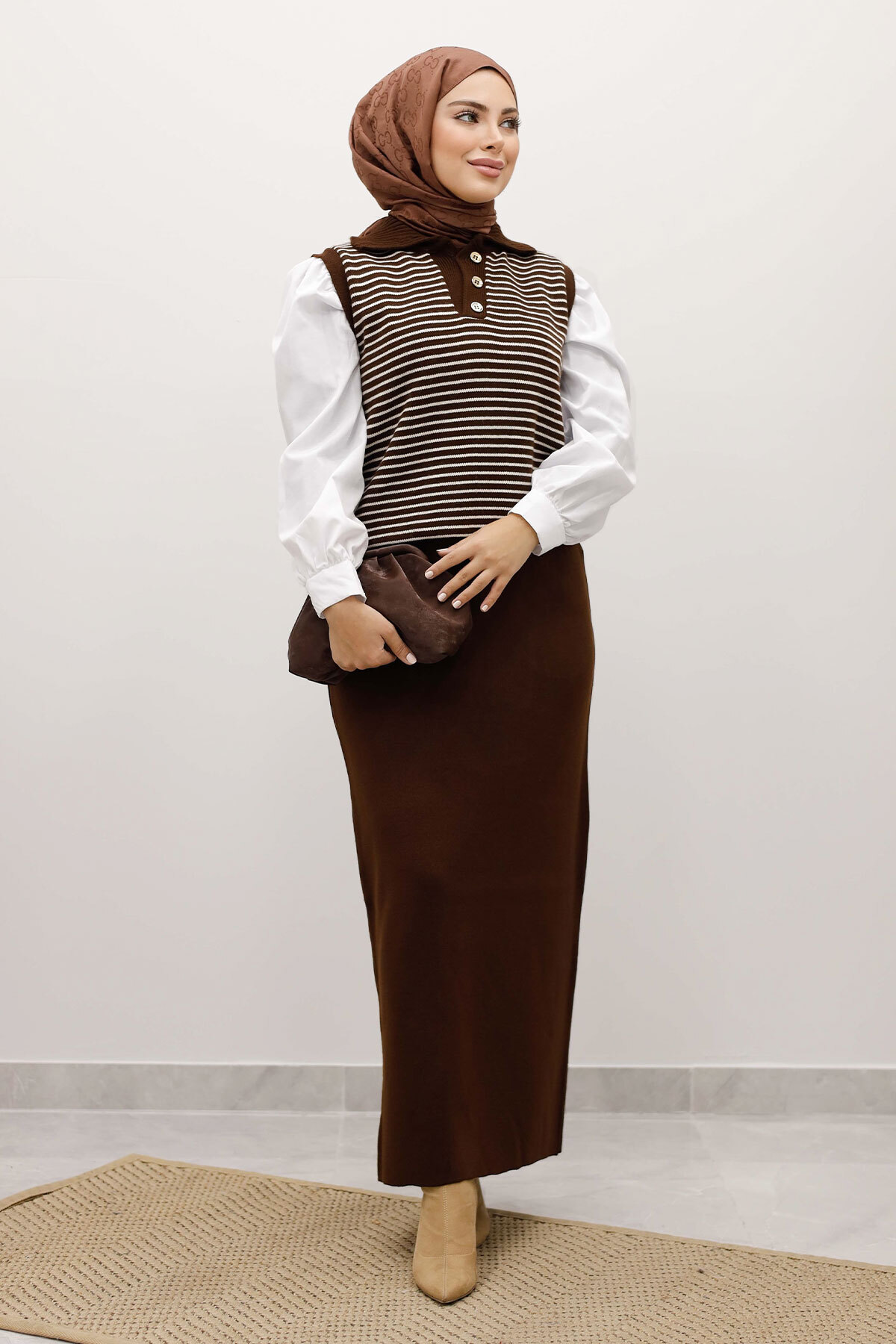 . Yeni sezon Çizgili Triko Süveter modelidir.