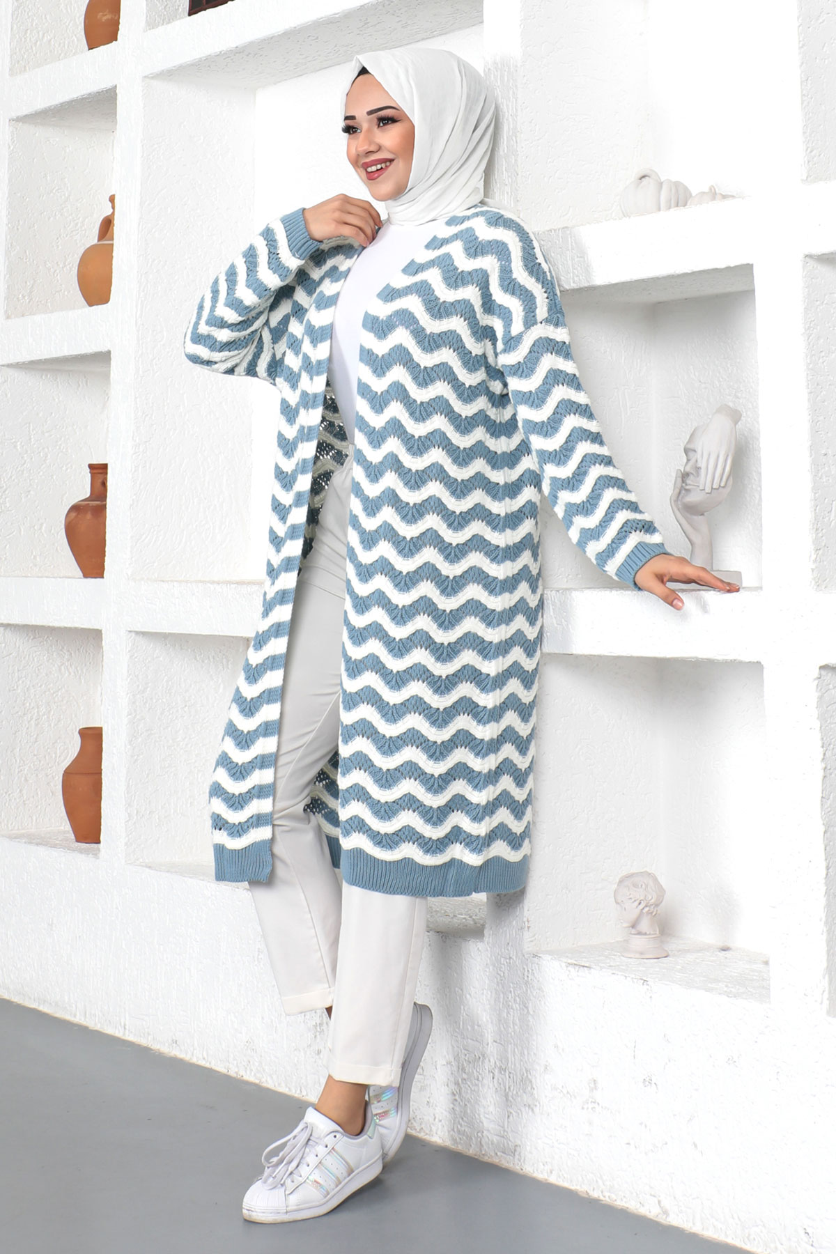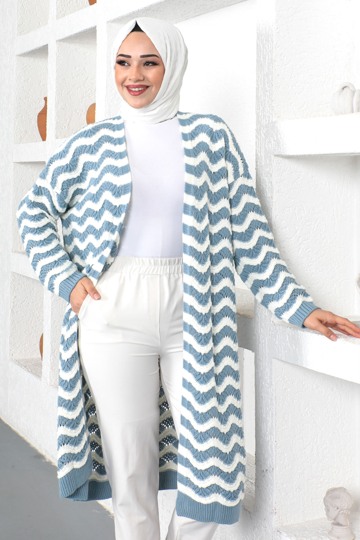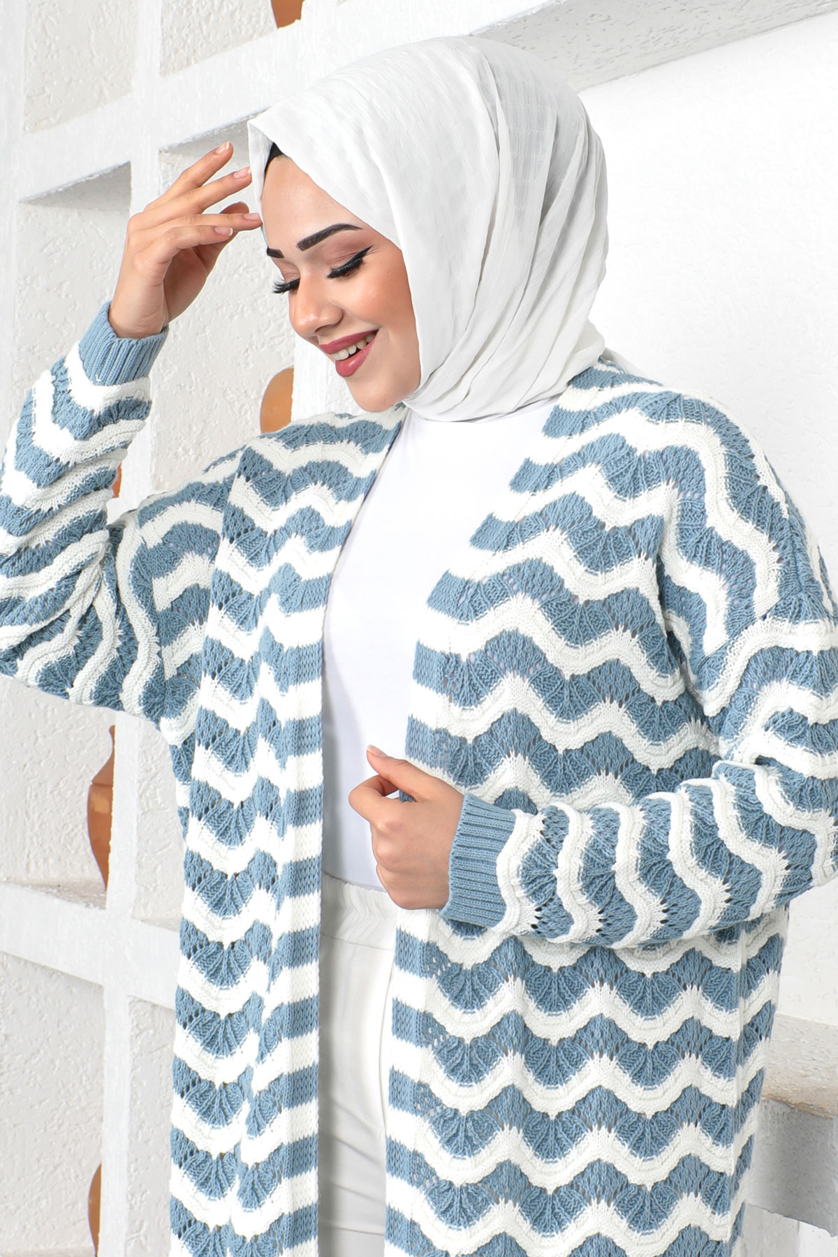 Ürün Özelliği : Yeni sezon Dalga Desenli Triko Hırka modelidir. Ürün düşük kol modellidir. Triko üründür. Düğmesiz üründür. Ürün renginde konsept çekimlerinden dolayı ton farklılığı olabilir.