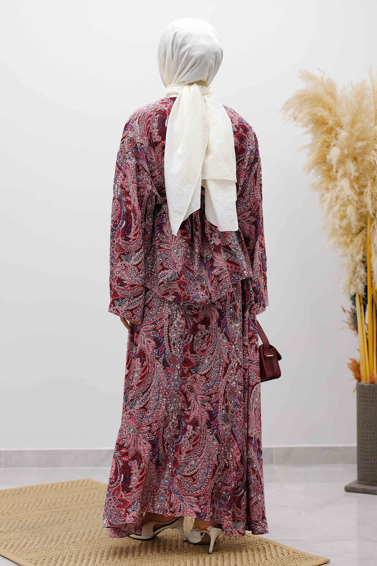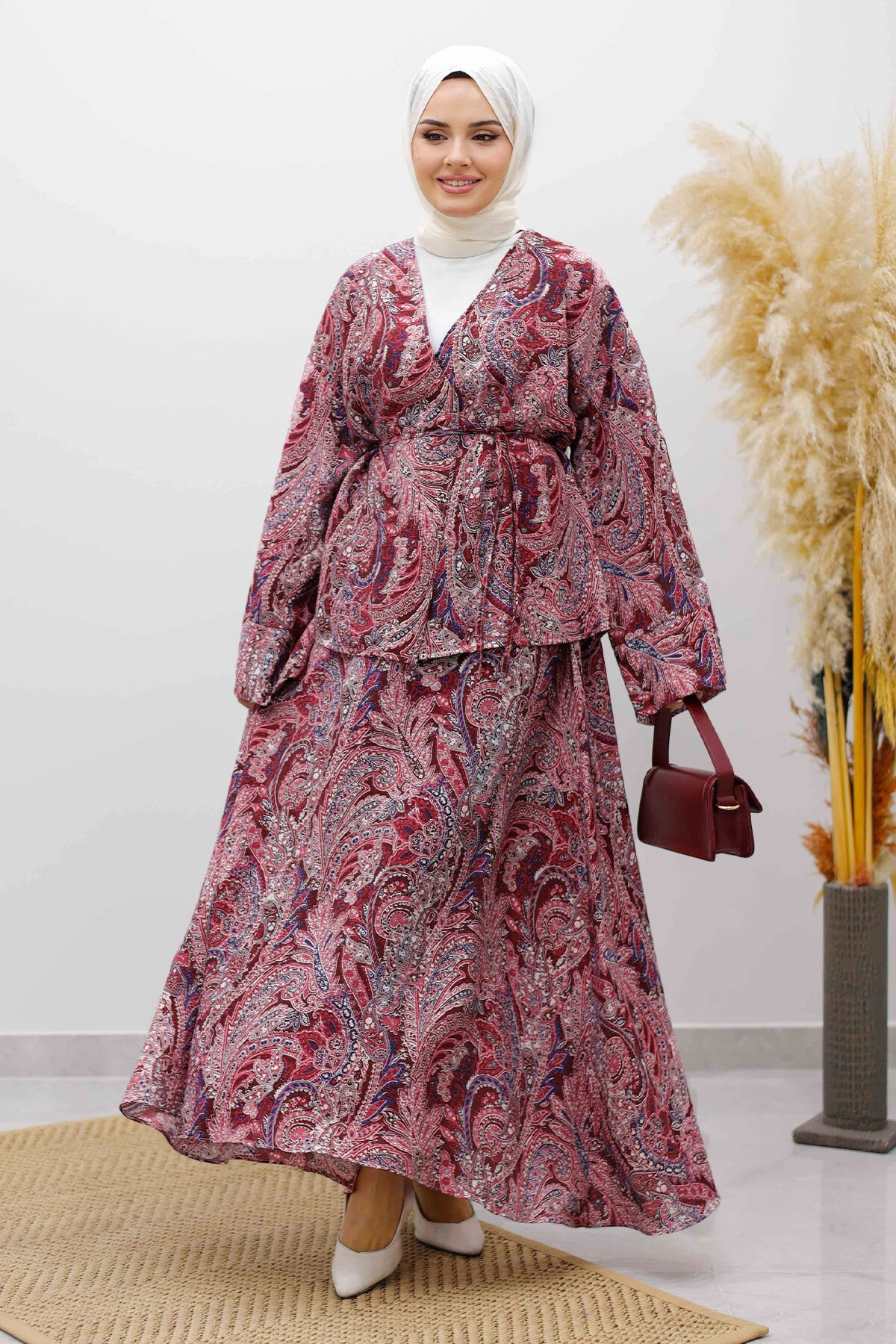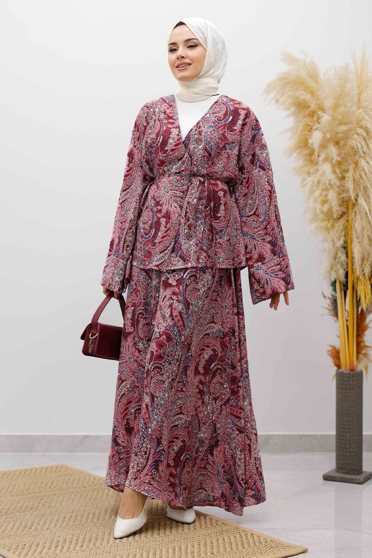 Desenli İp Bağlamalı Etekli Takım TSD250259 Bordo Özellikleri