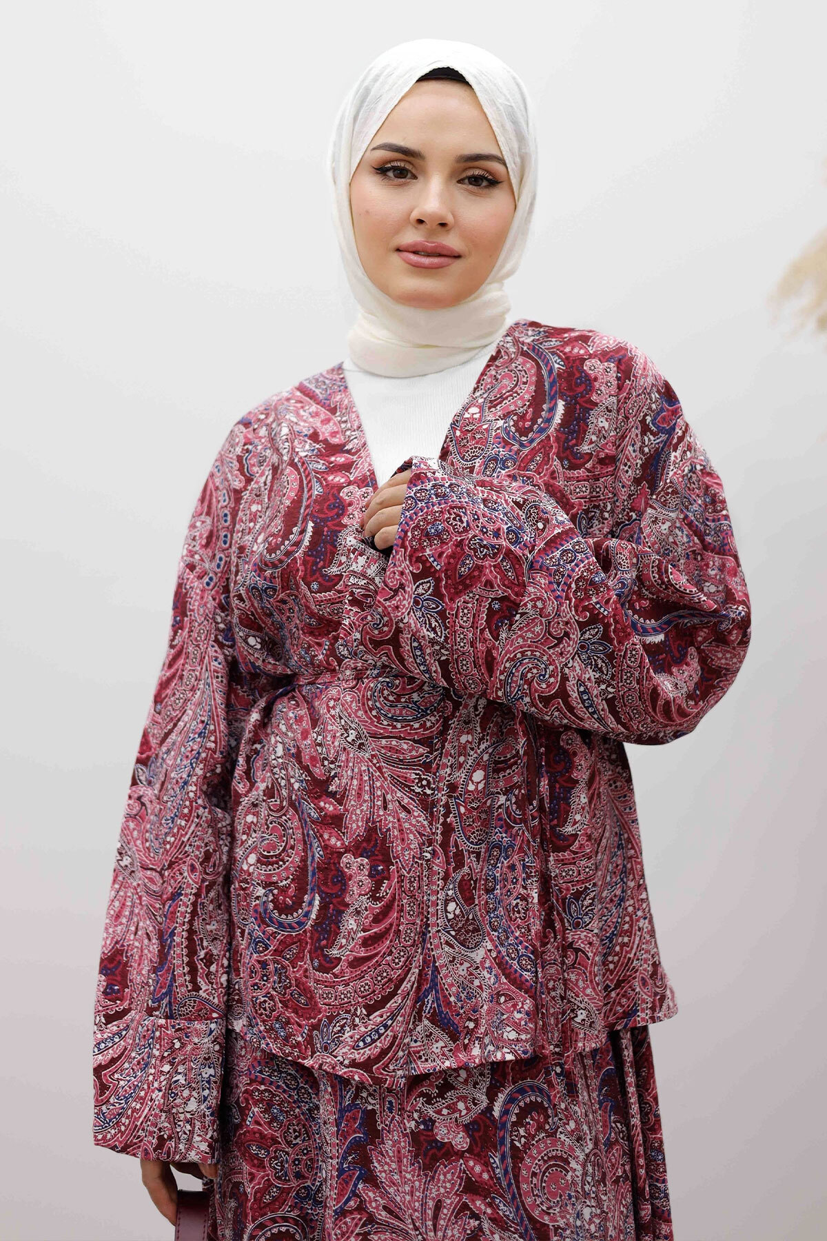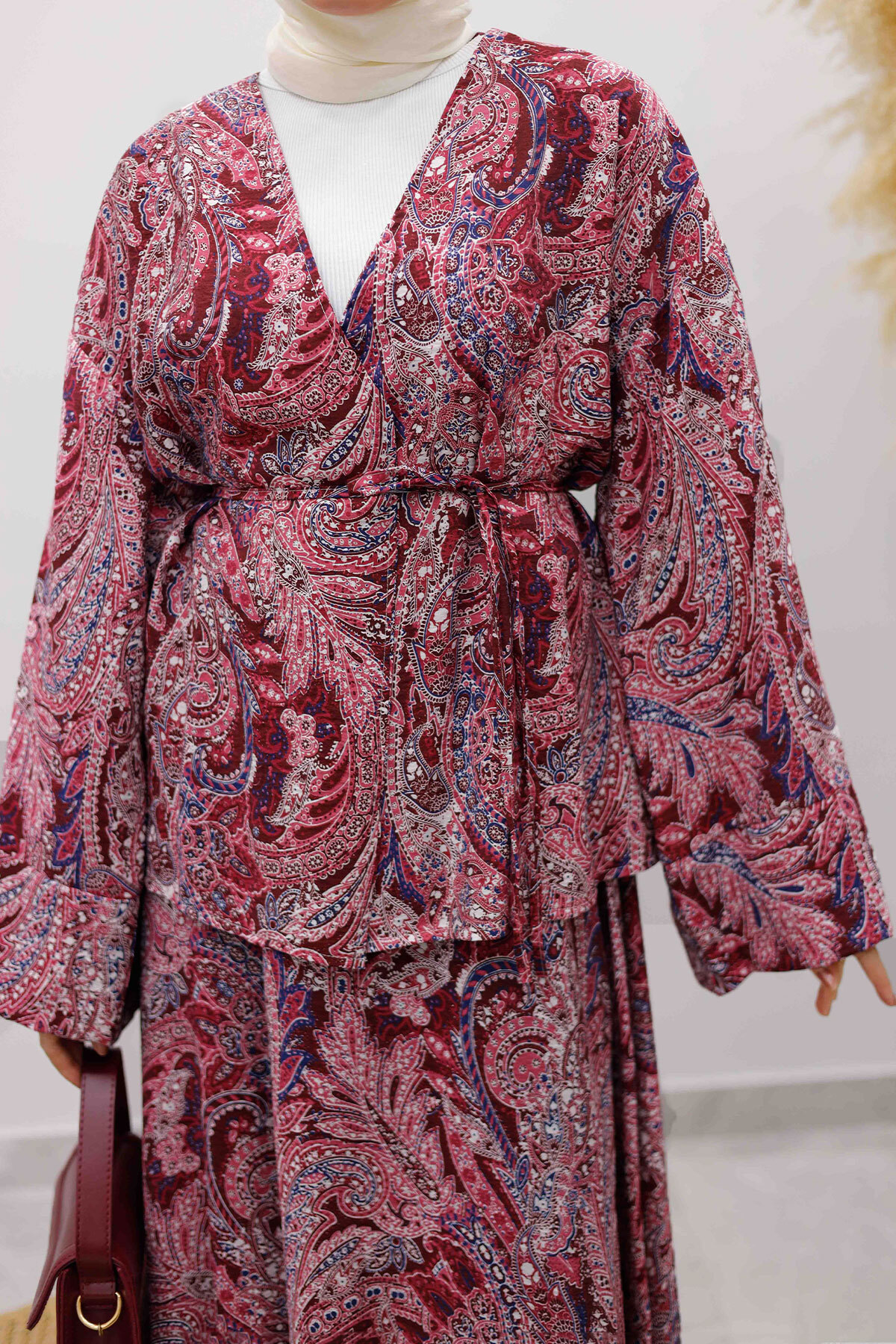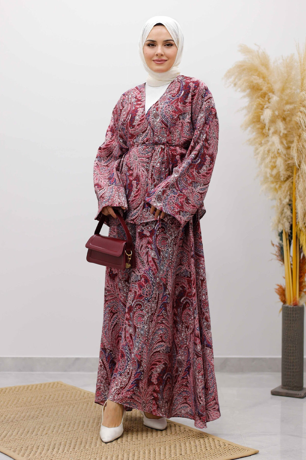 Desenli İp Bağlamalı Etekli Takım TSD250259 Bordo Özellikleri