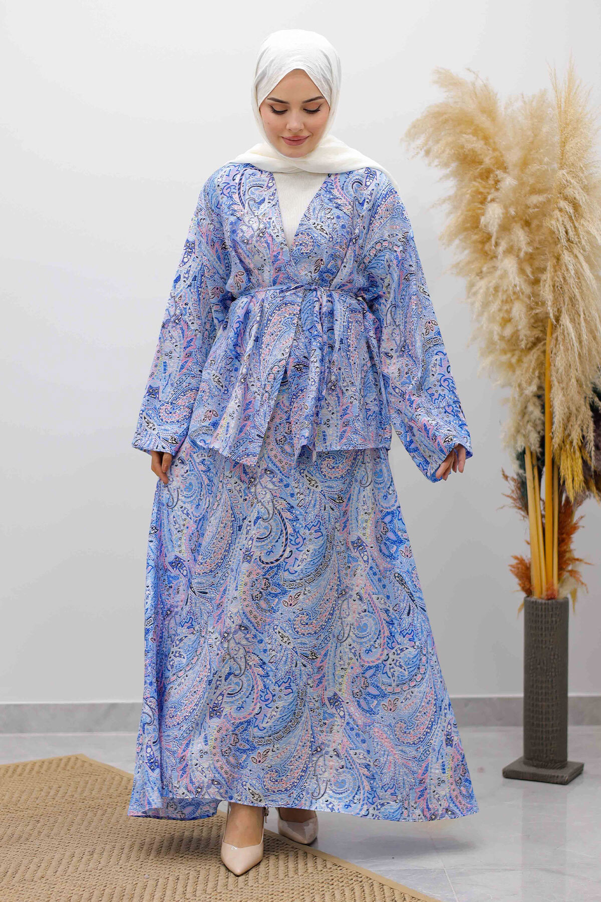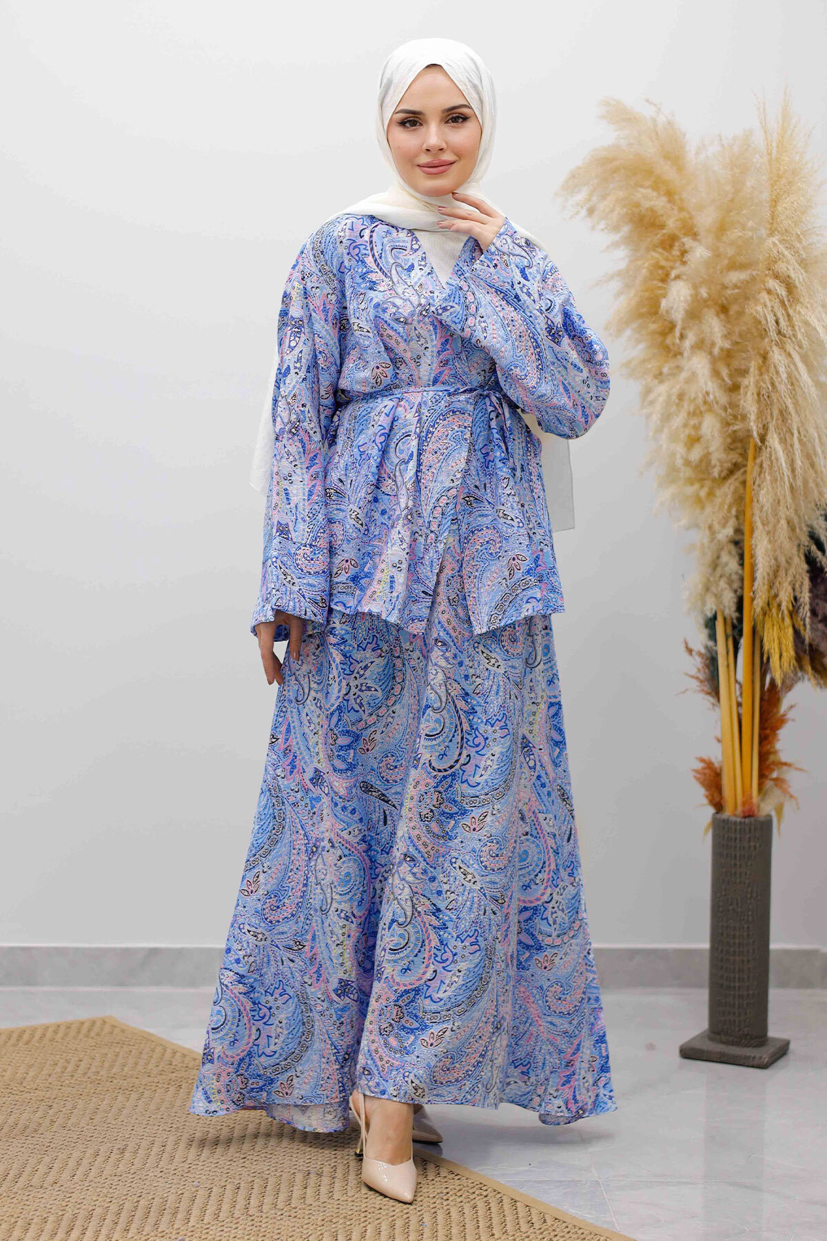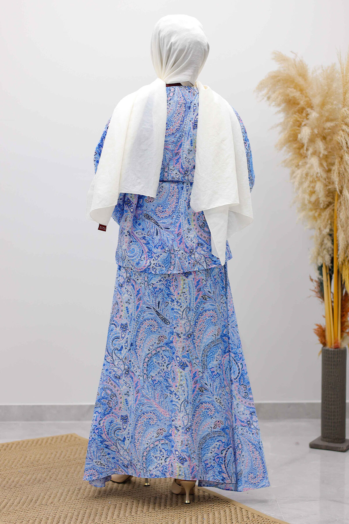 Desenli İp Bağlamalı Etekli Takım TSD250259 Mavi Özellikleri