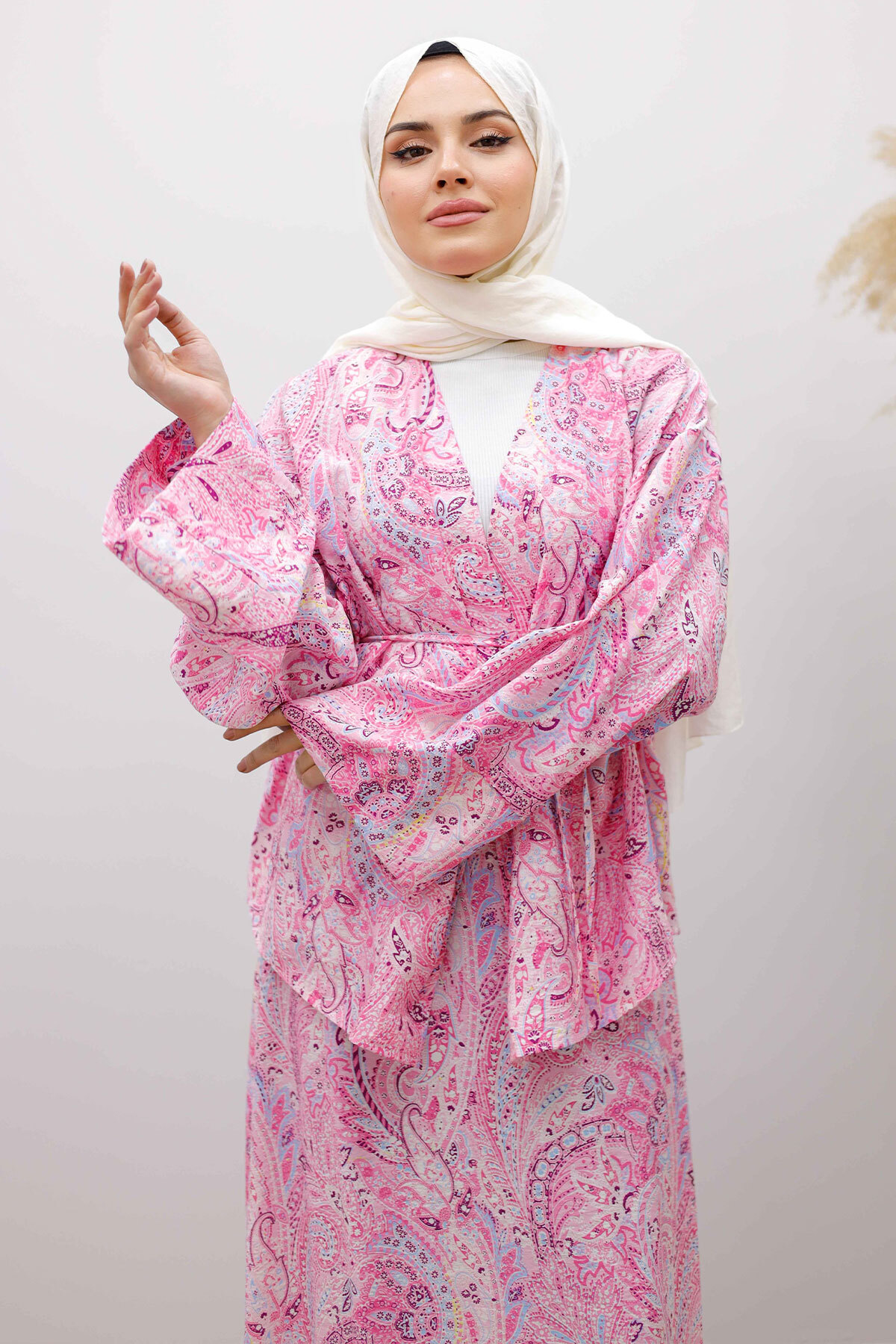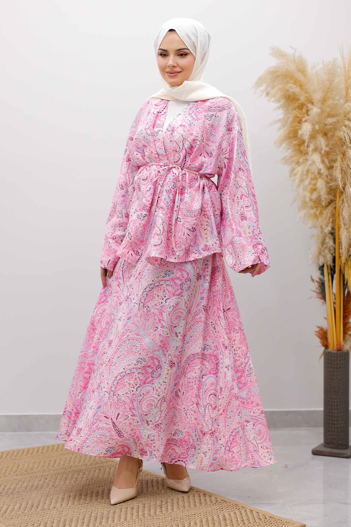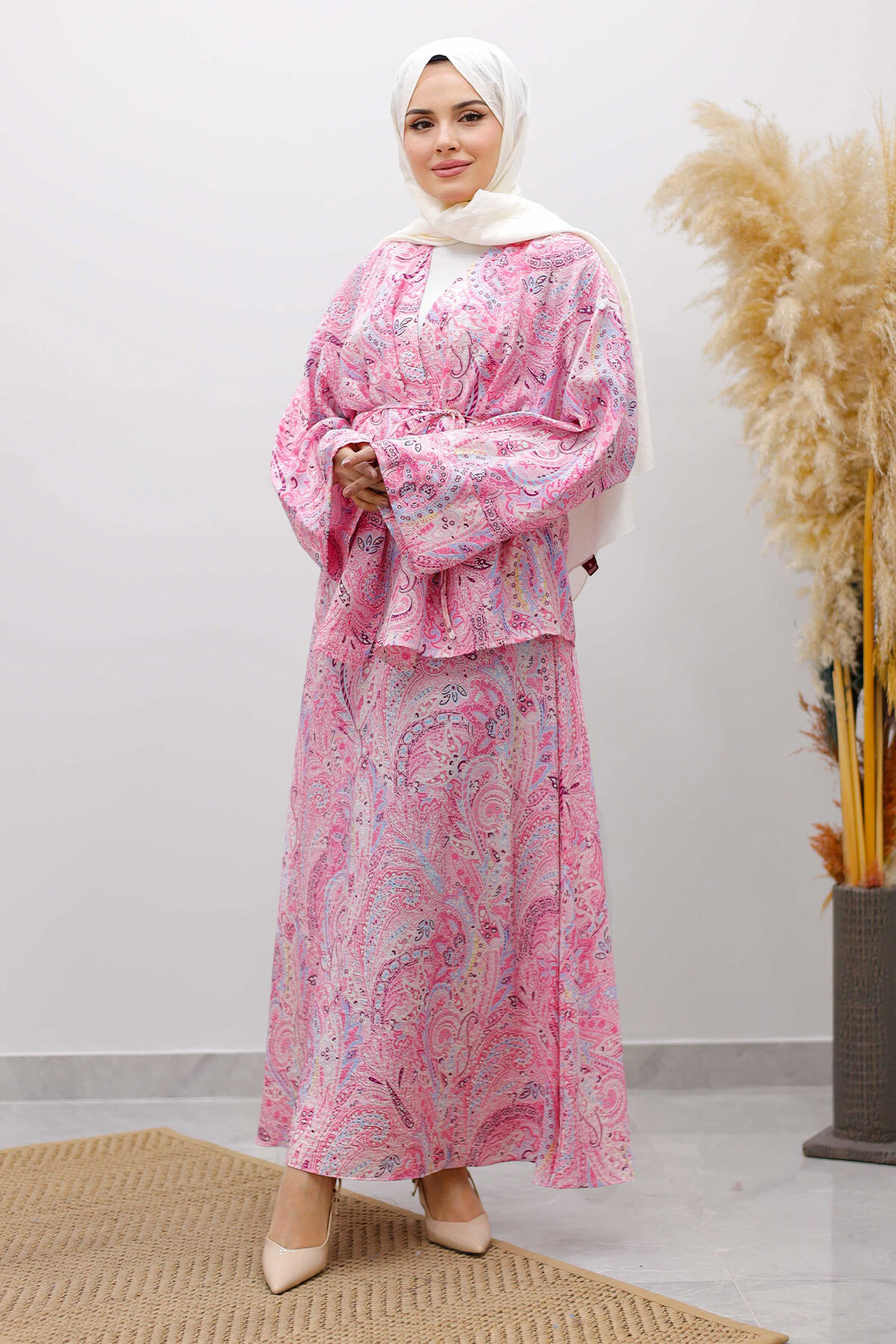 Desenli İp Bağlamalı Etekli Takım TSD250259 Pembe Özellikleri