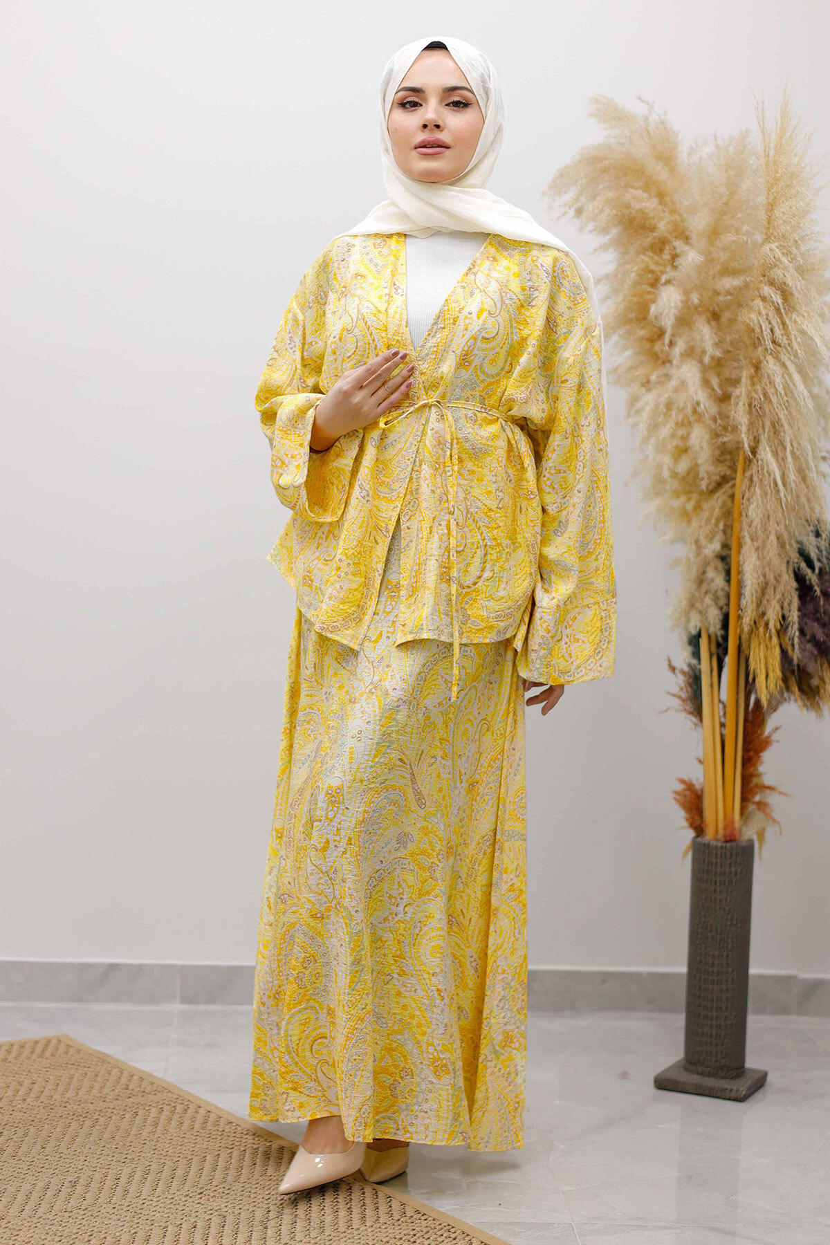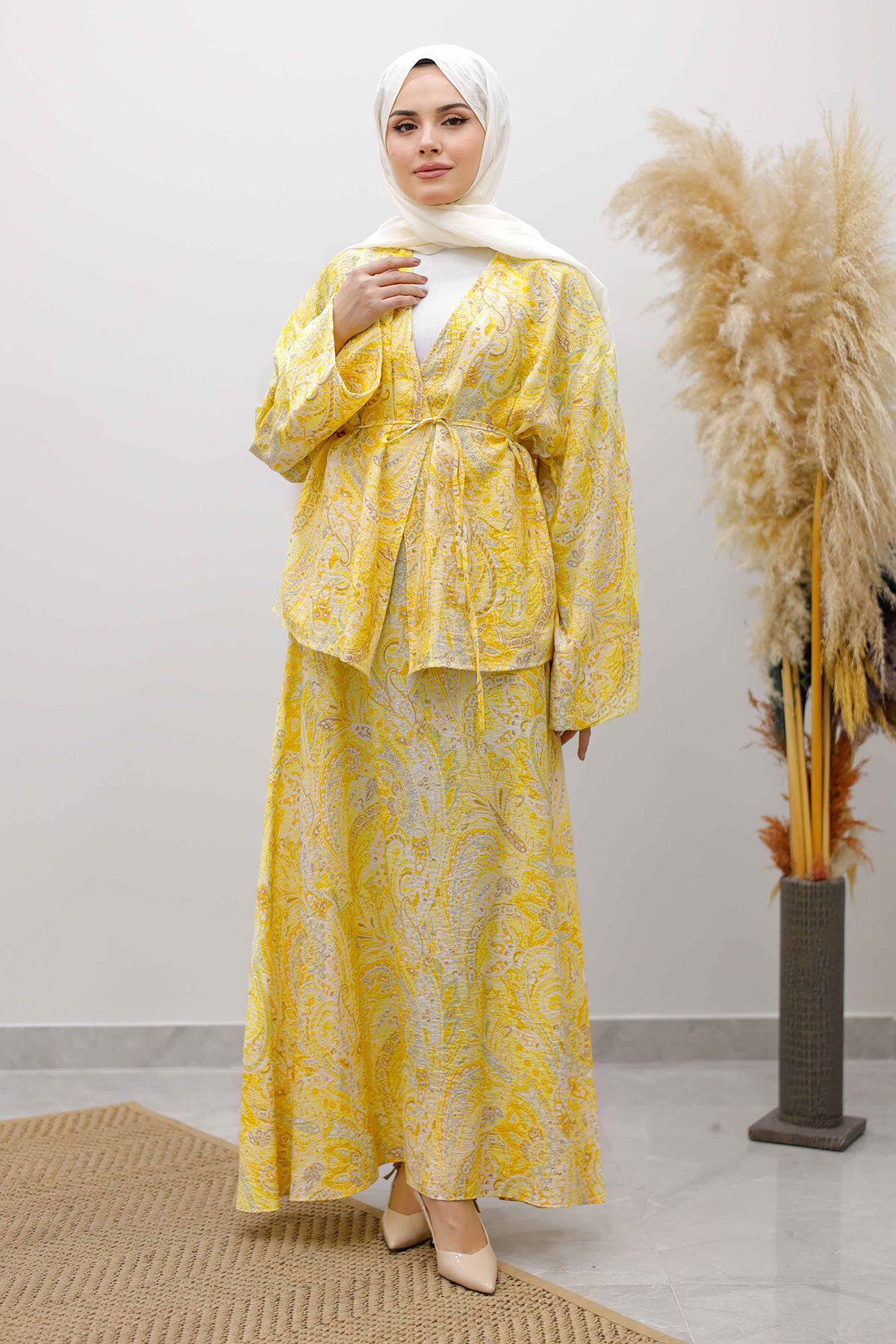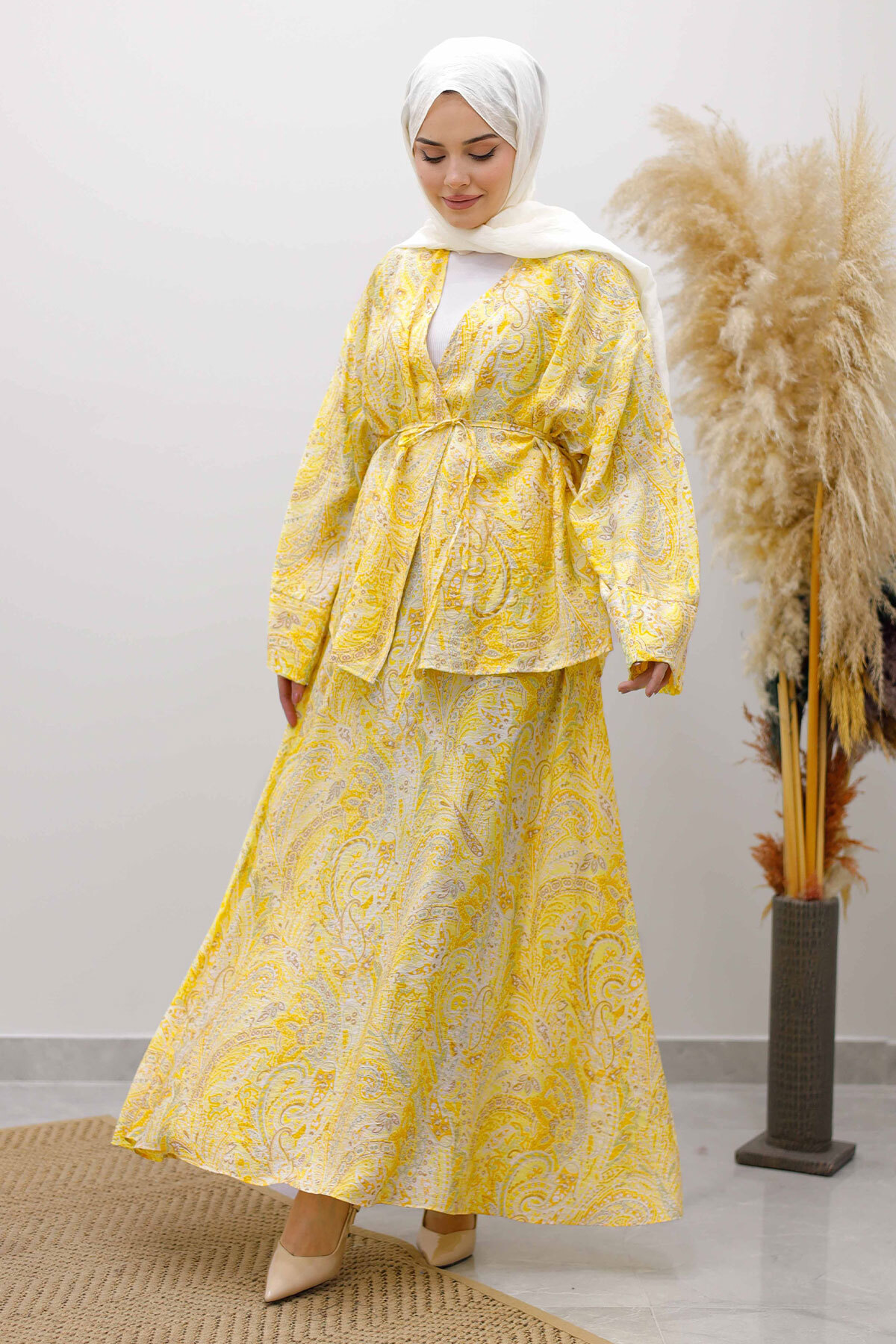 Desenli İp Bağlamalı Etekli Takım TSD250259 Sarı Özellikleri