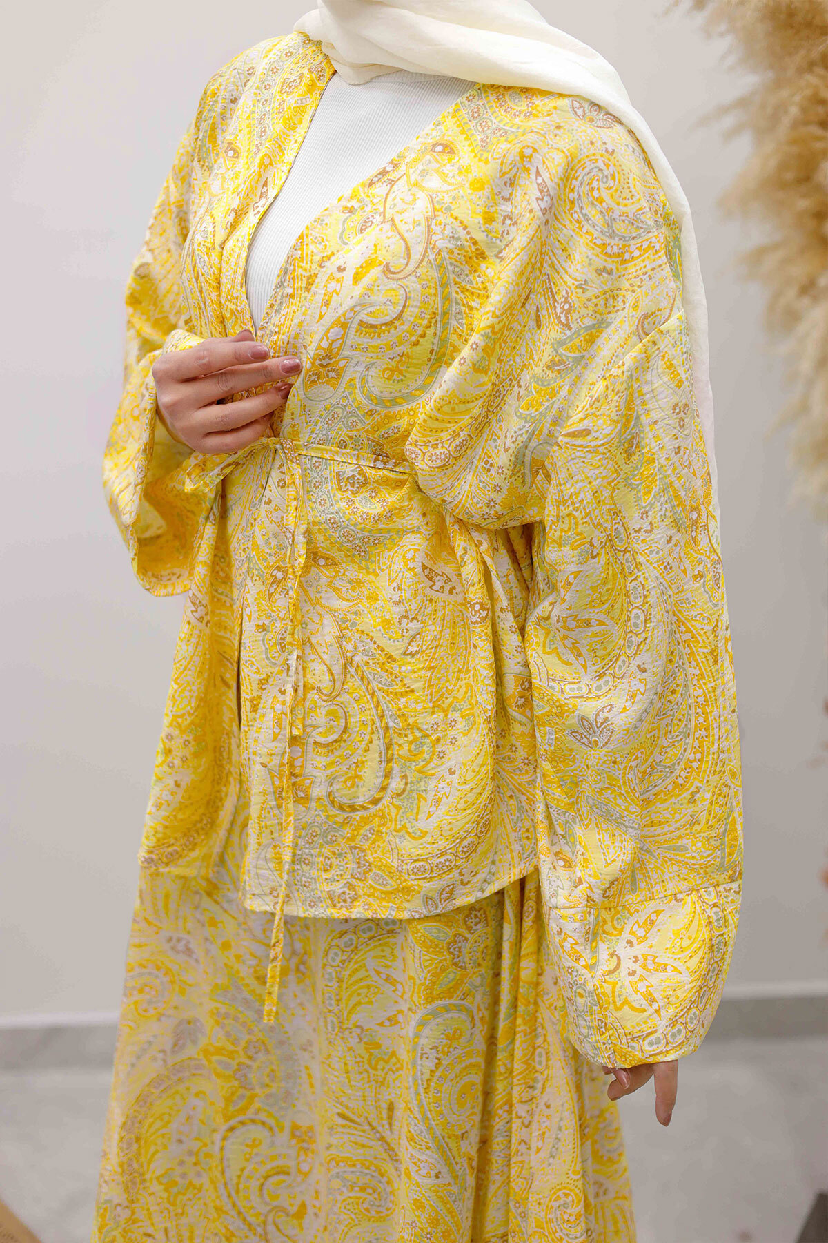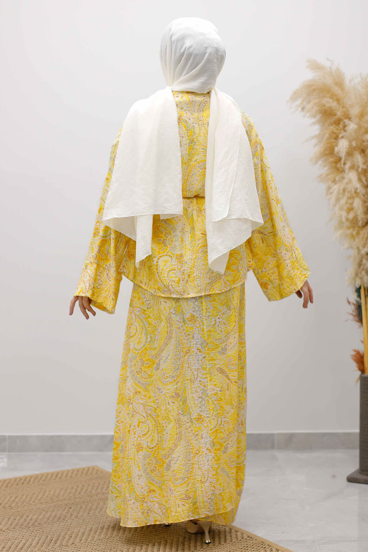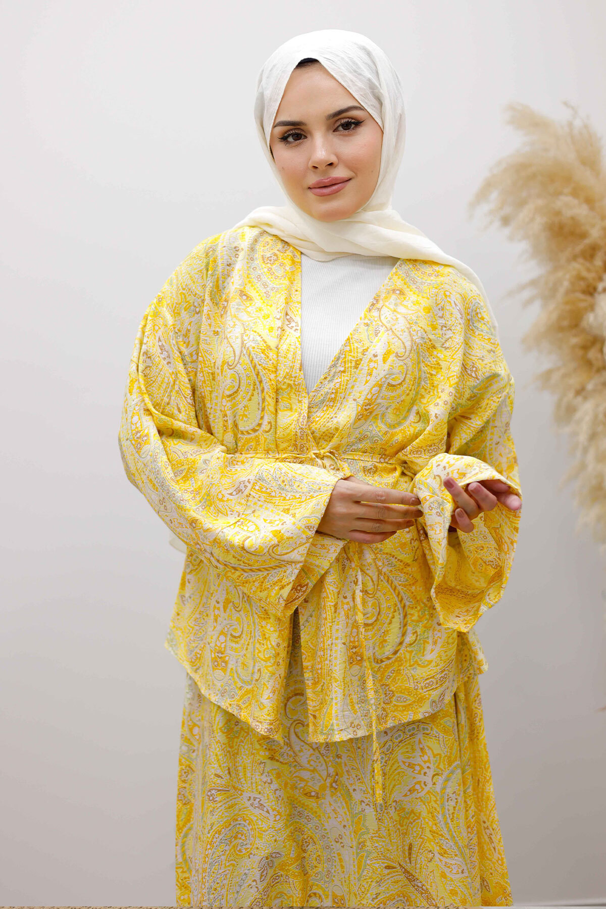 Desenli İp Bağlamalı Etekli Takım TSD250259 Sarı Özellikleri