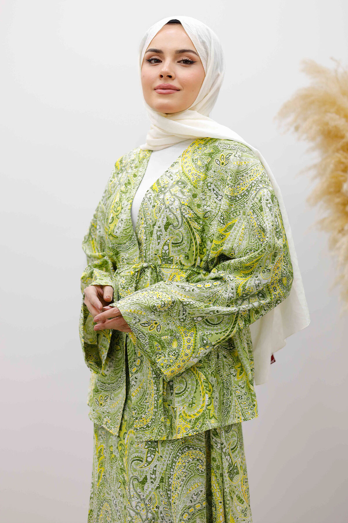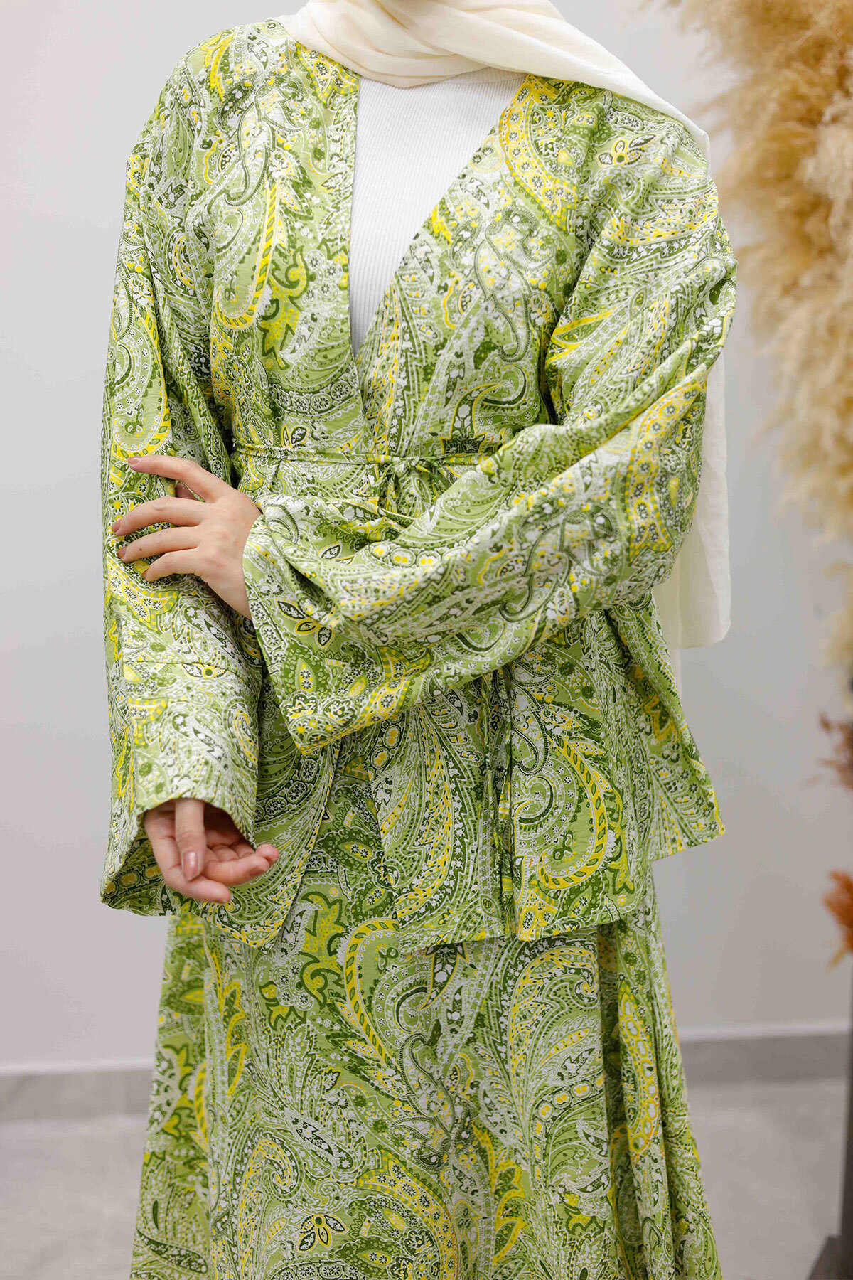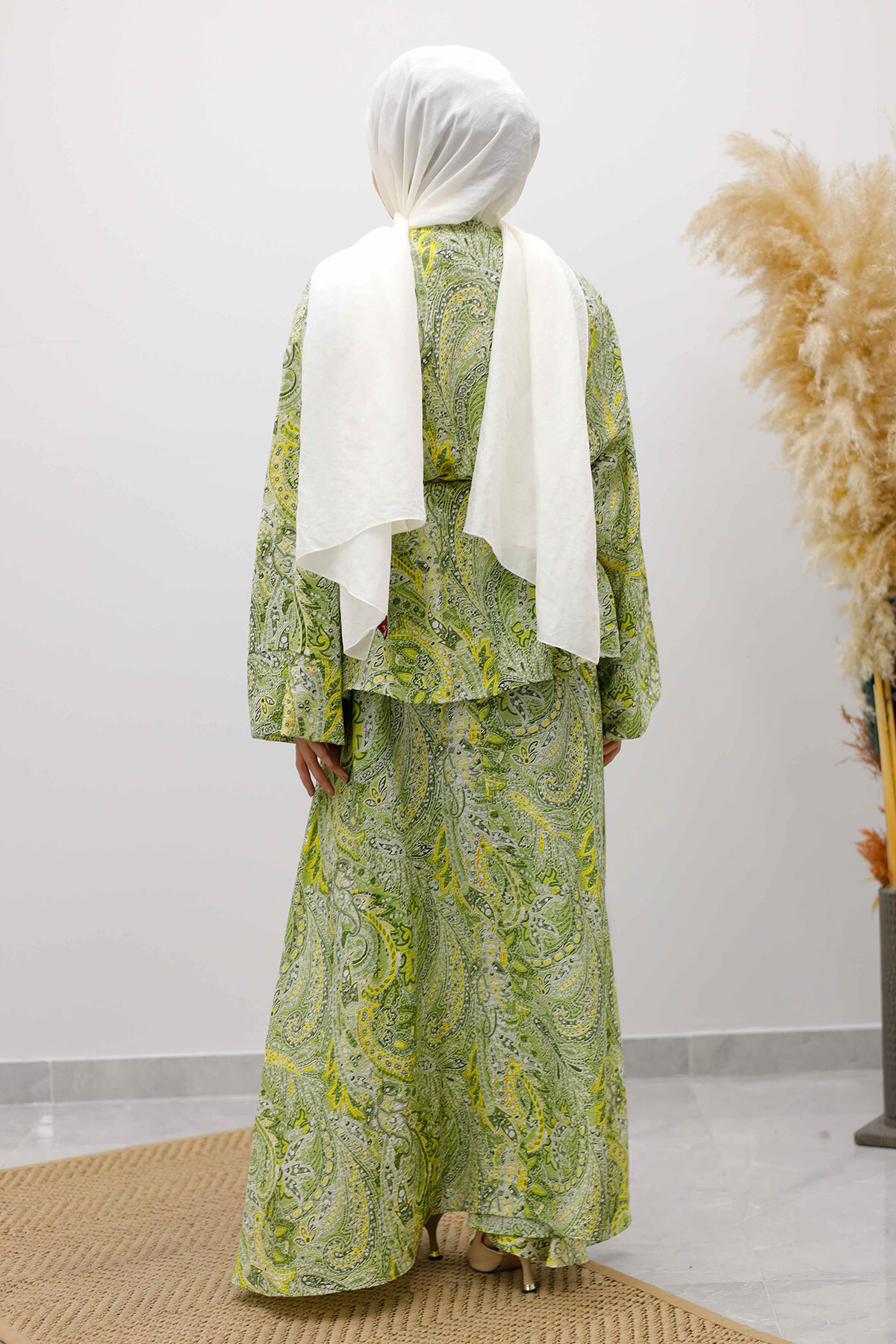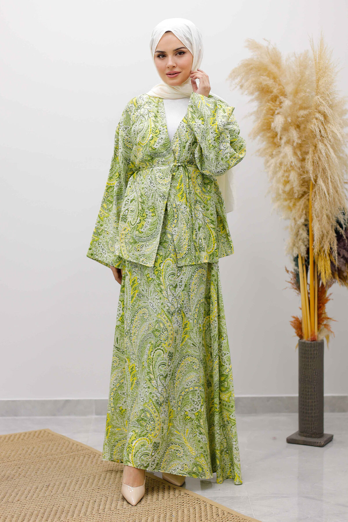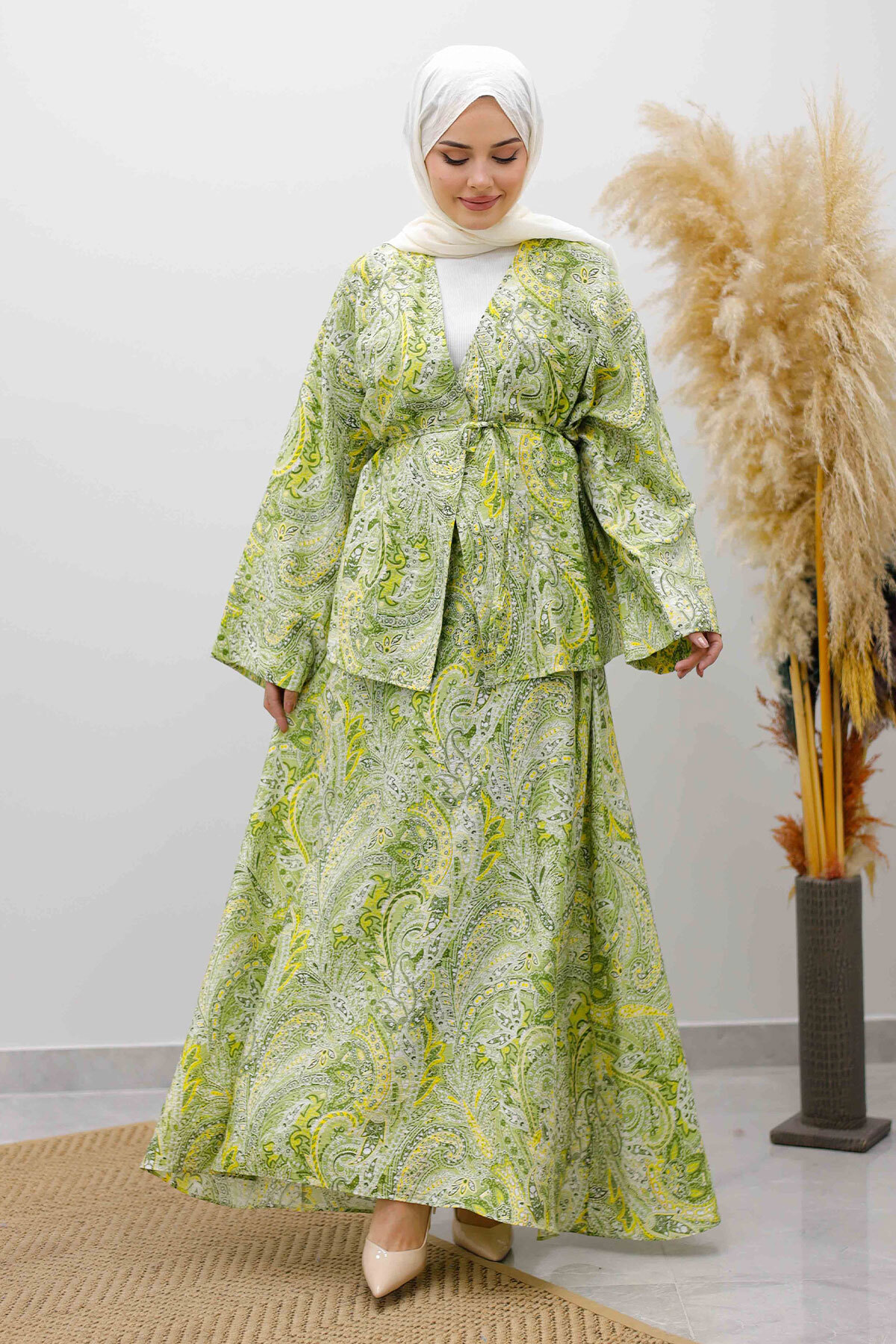 Desenli İp Bağlamalı Etekli Takım TSD250259 Yeşil Özellikleri