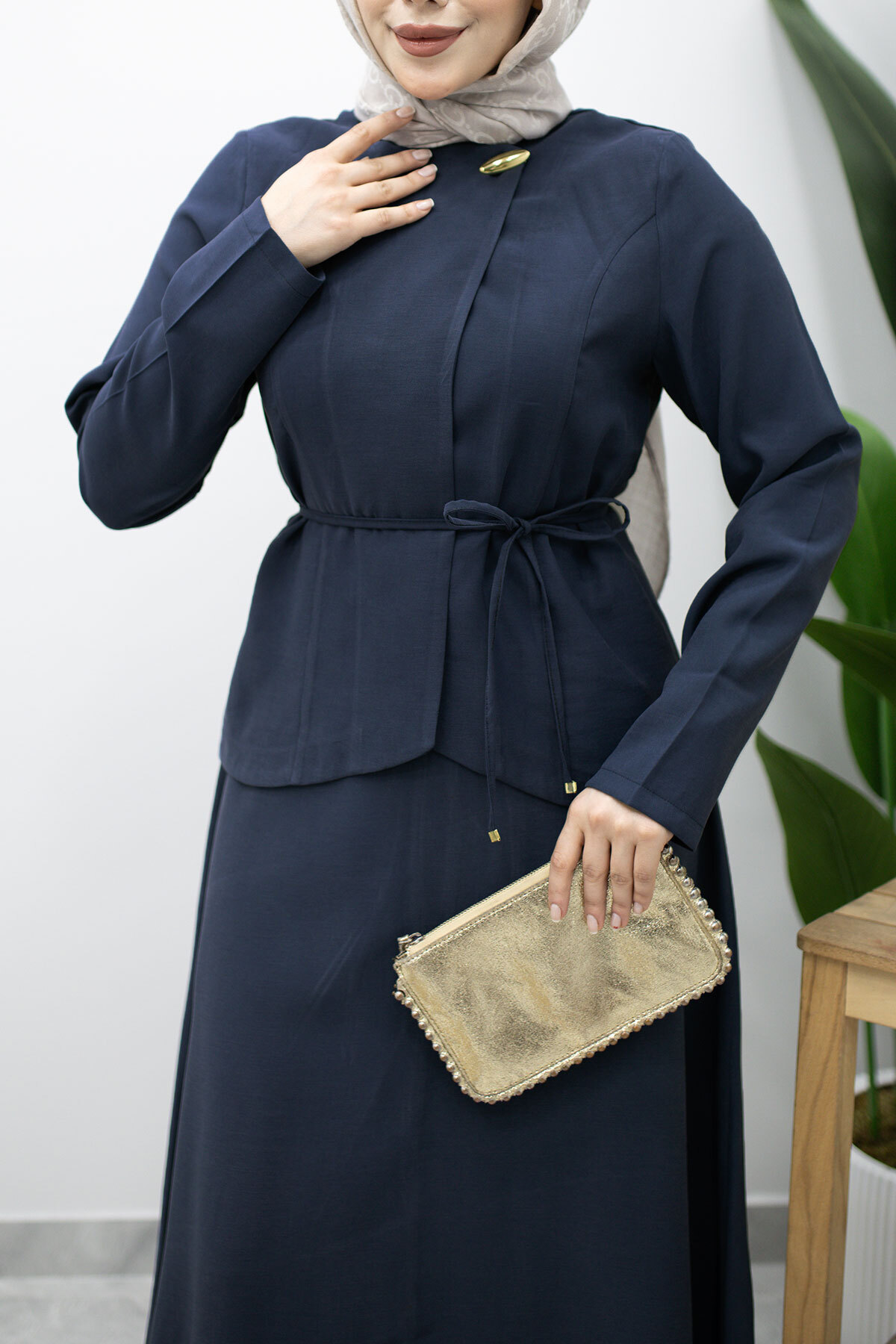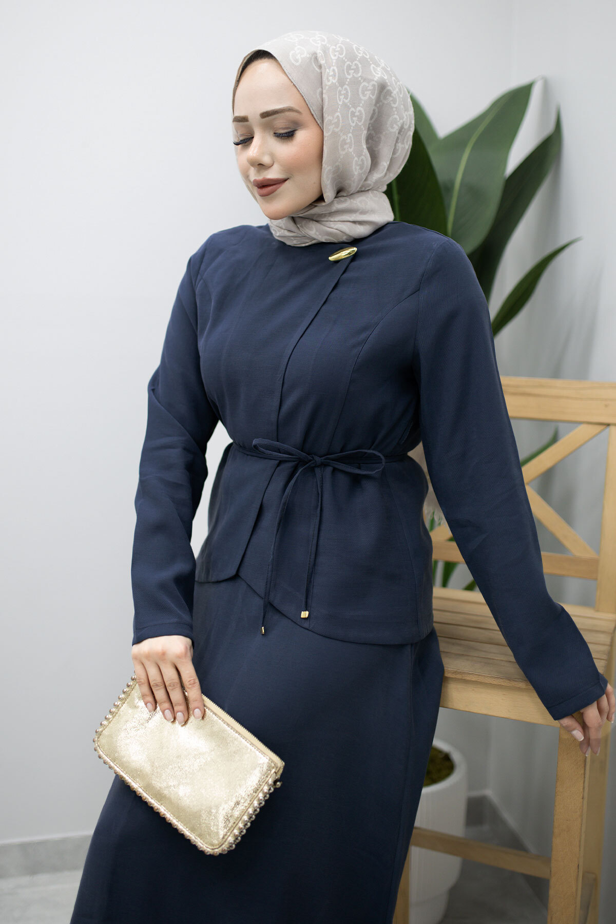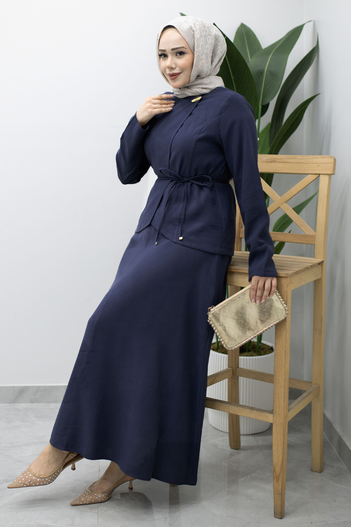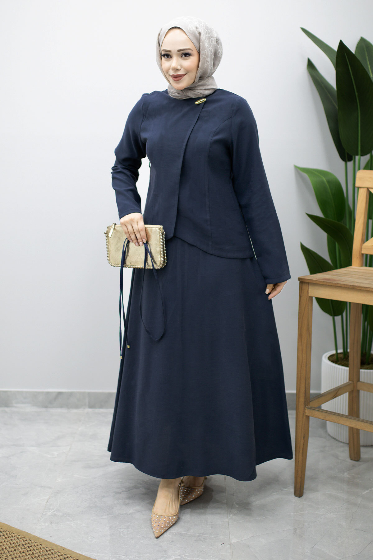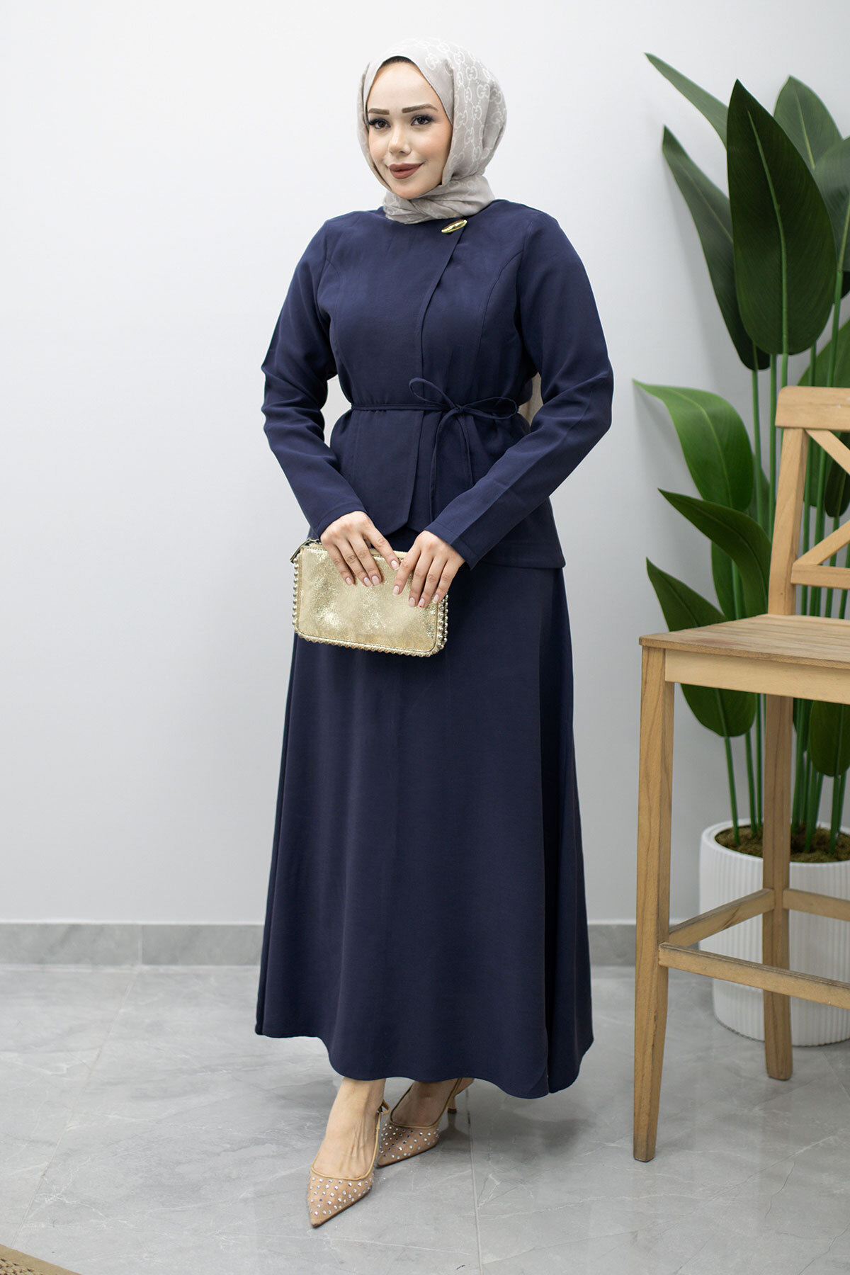 Dikiş Detaylı Düğmeli Etekli Takım TSD260201 Lacivert
