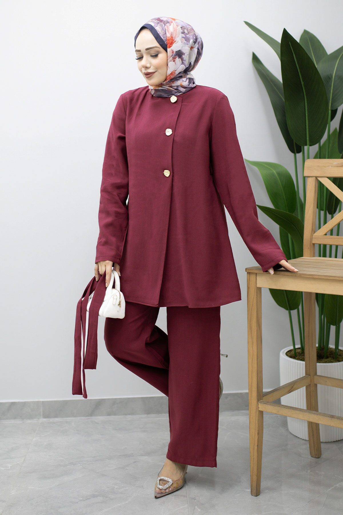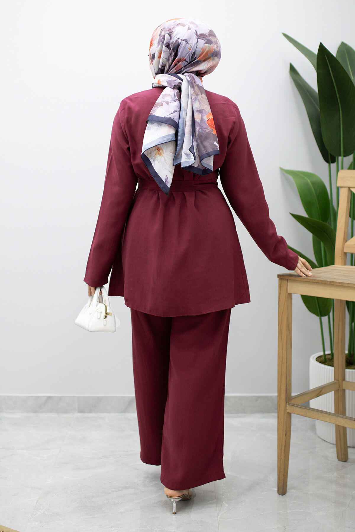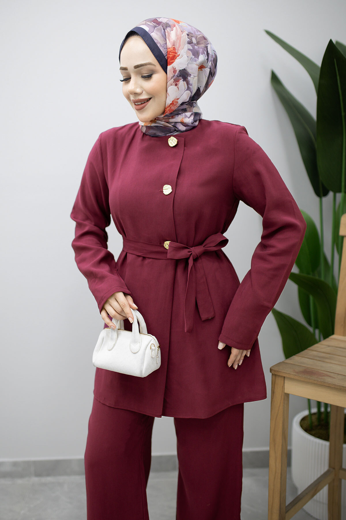 Ürün Özelliği : Yeni sezon Düğmeli Beli Kuşaklı İkili Takım modelidir.