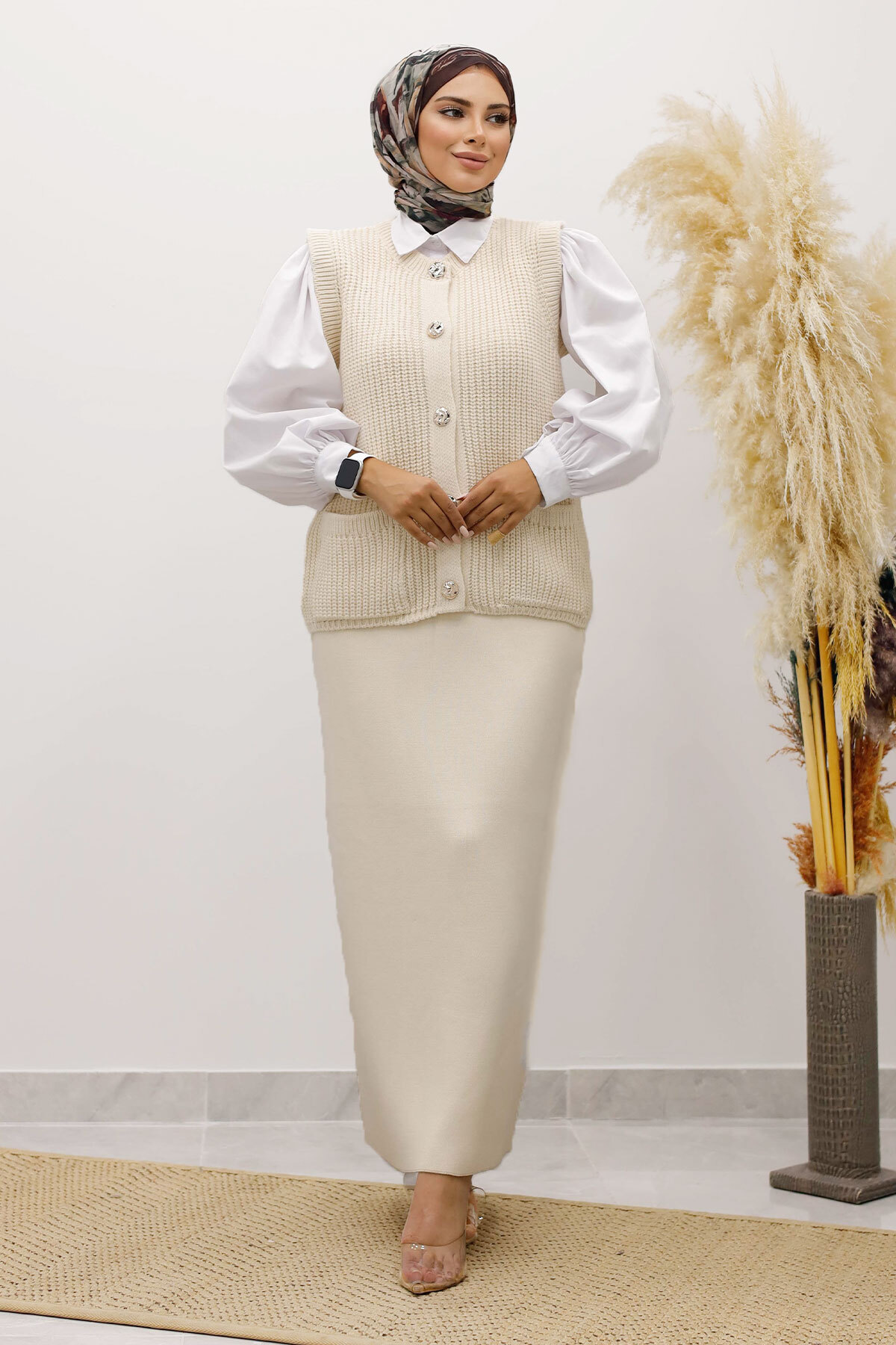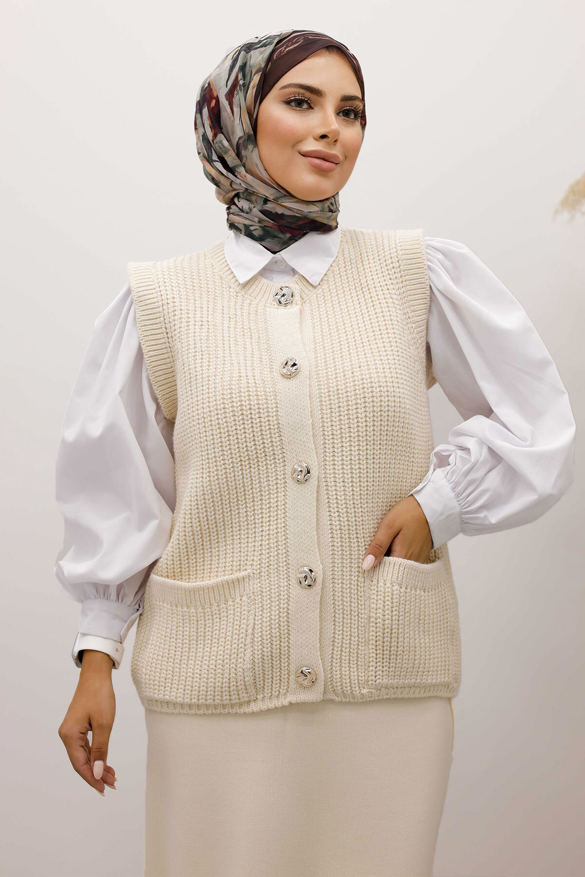 . Yeni sezon Düğmeli Triko Süveter modelidir.