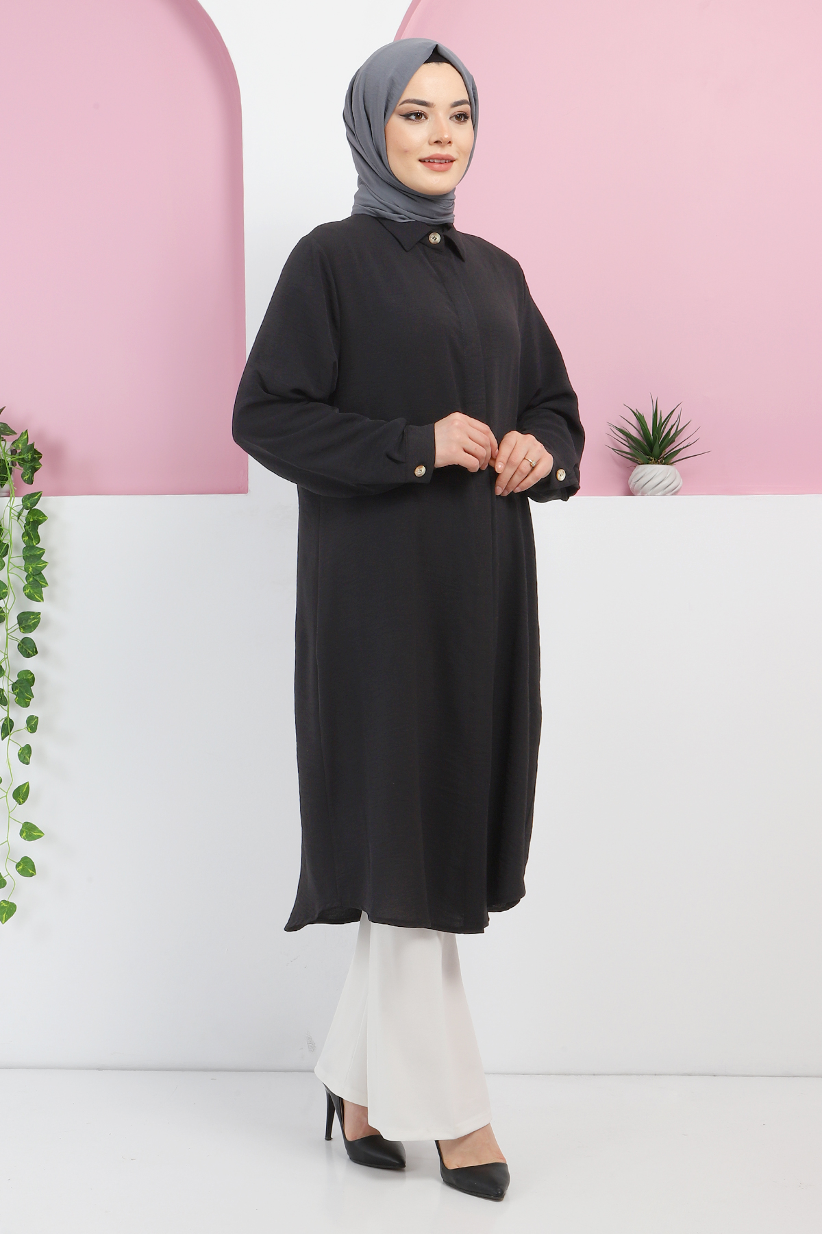 Ürün Özelliği : Yeni Sezon Düğmeli Tunik modelidir. Önden düğme ile kapanmaktadır. Kol ucu manşettir. Gömlek yakadır.Ürün renginde konsept çekimlerinden dolayı ton farklılığı olabilir.