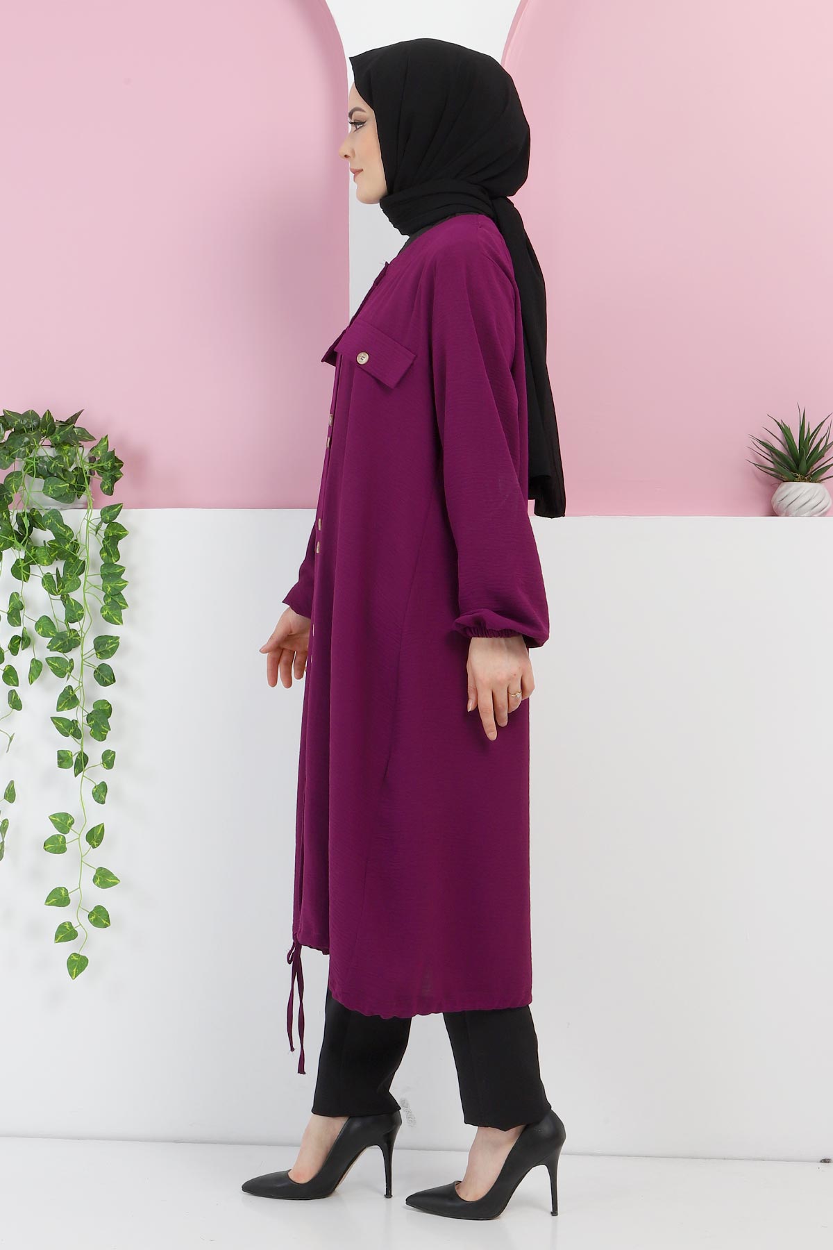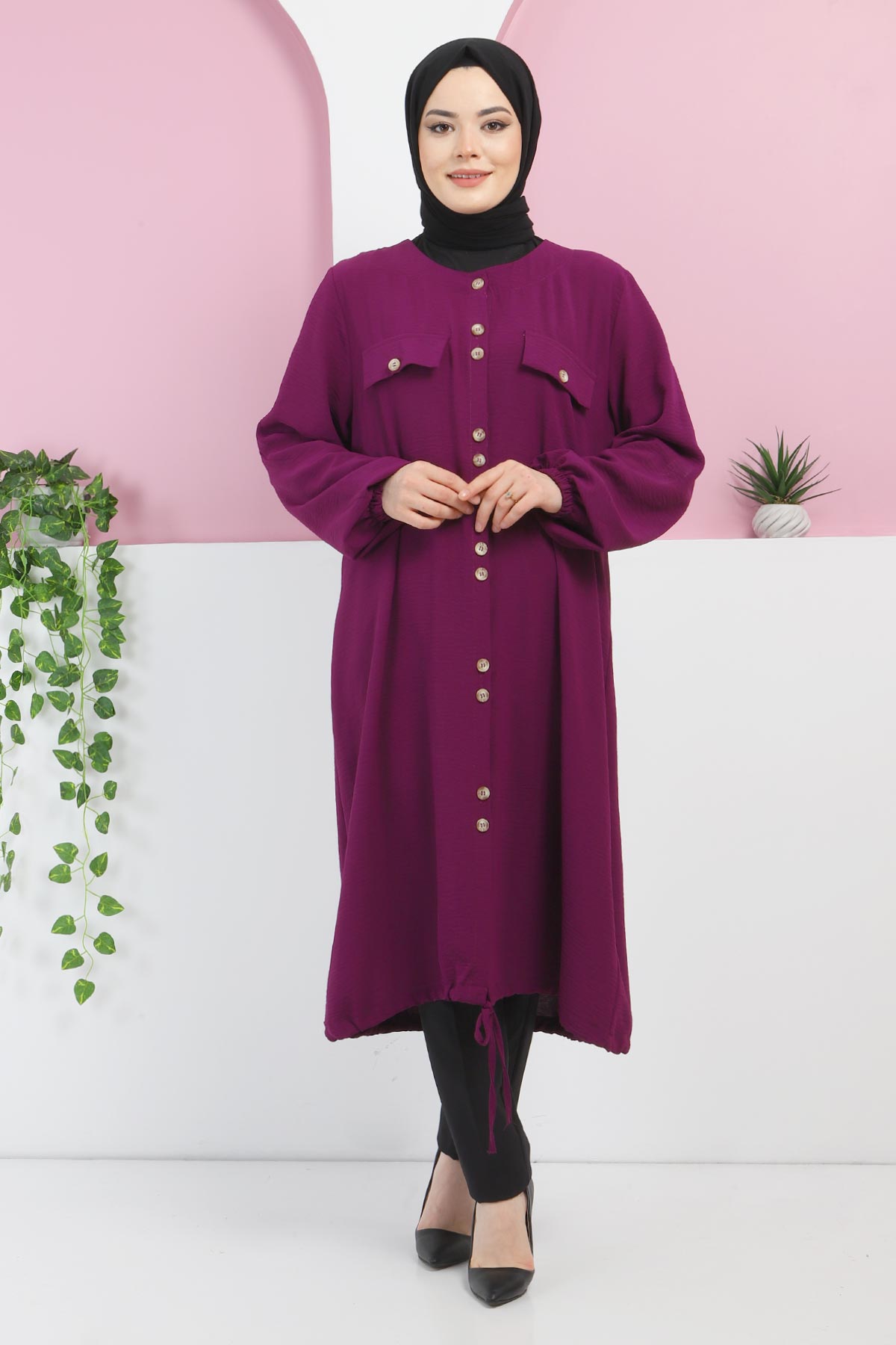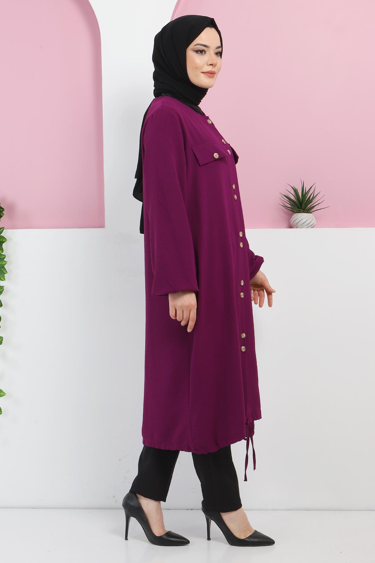 Ürün Özelliği : Yeni Sezon Düğmeli Yazlık Kap modelidir. Önden düğme ile kapanmaktadır. Kol ucu büzgülüdür. Kapşonsuz üründür. Etek ucu bağcık detaylıdır.Ürün renginde konsept çekimlerinden dolayı ton farklılığı olabilir.