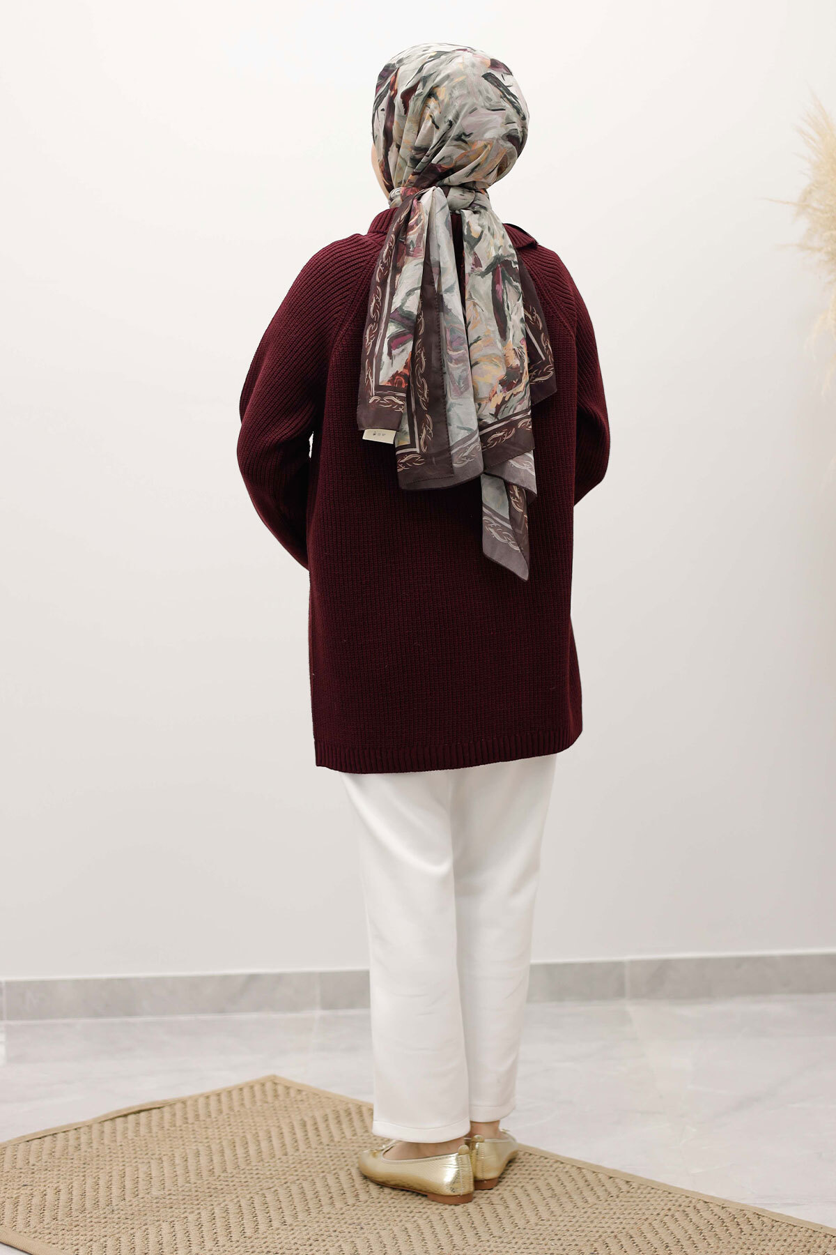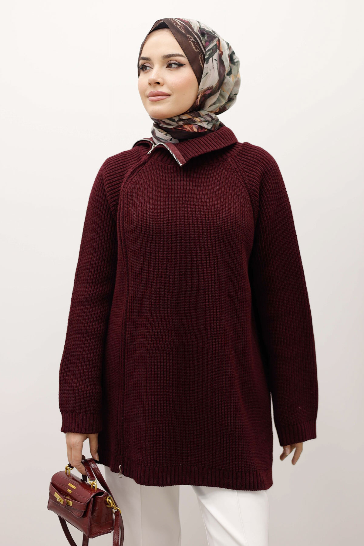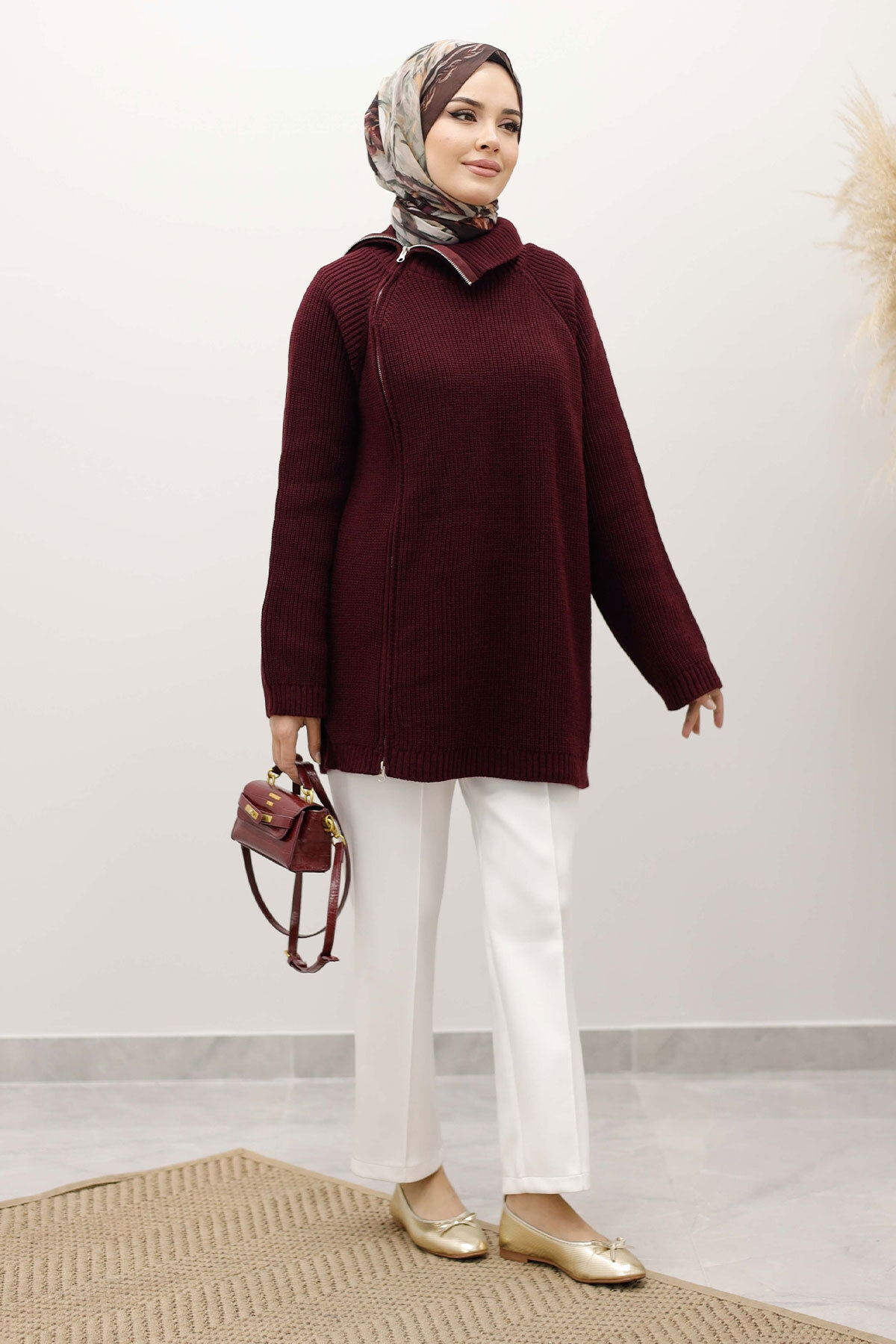 Fermuar Detaylı Triko Tunik TSD250254 Bordo