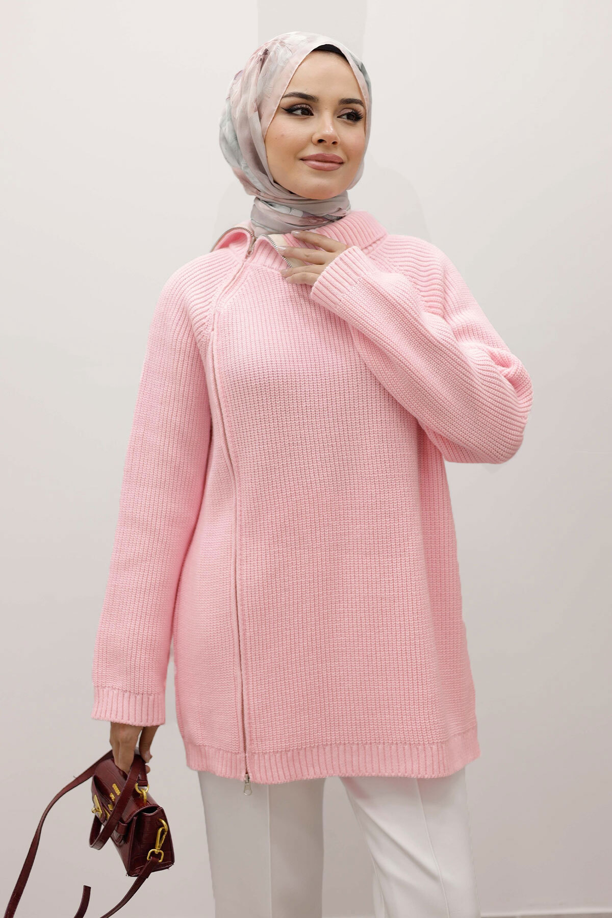 Fermuar Detaylı Triko Tunik TSD250254 Pembe