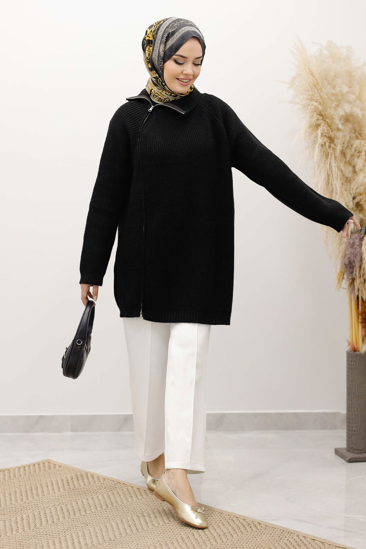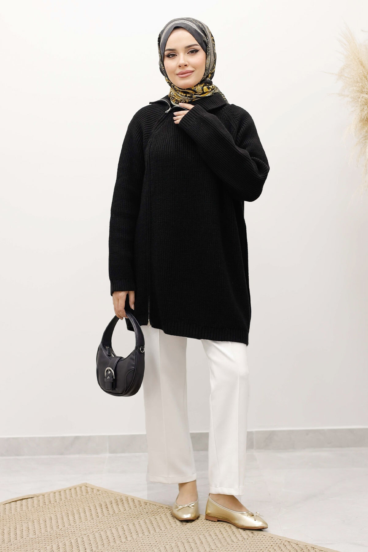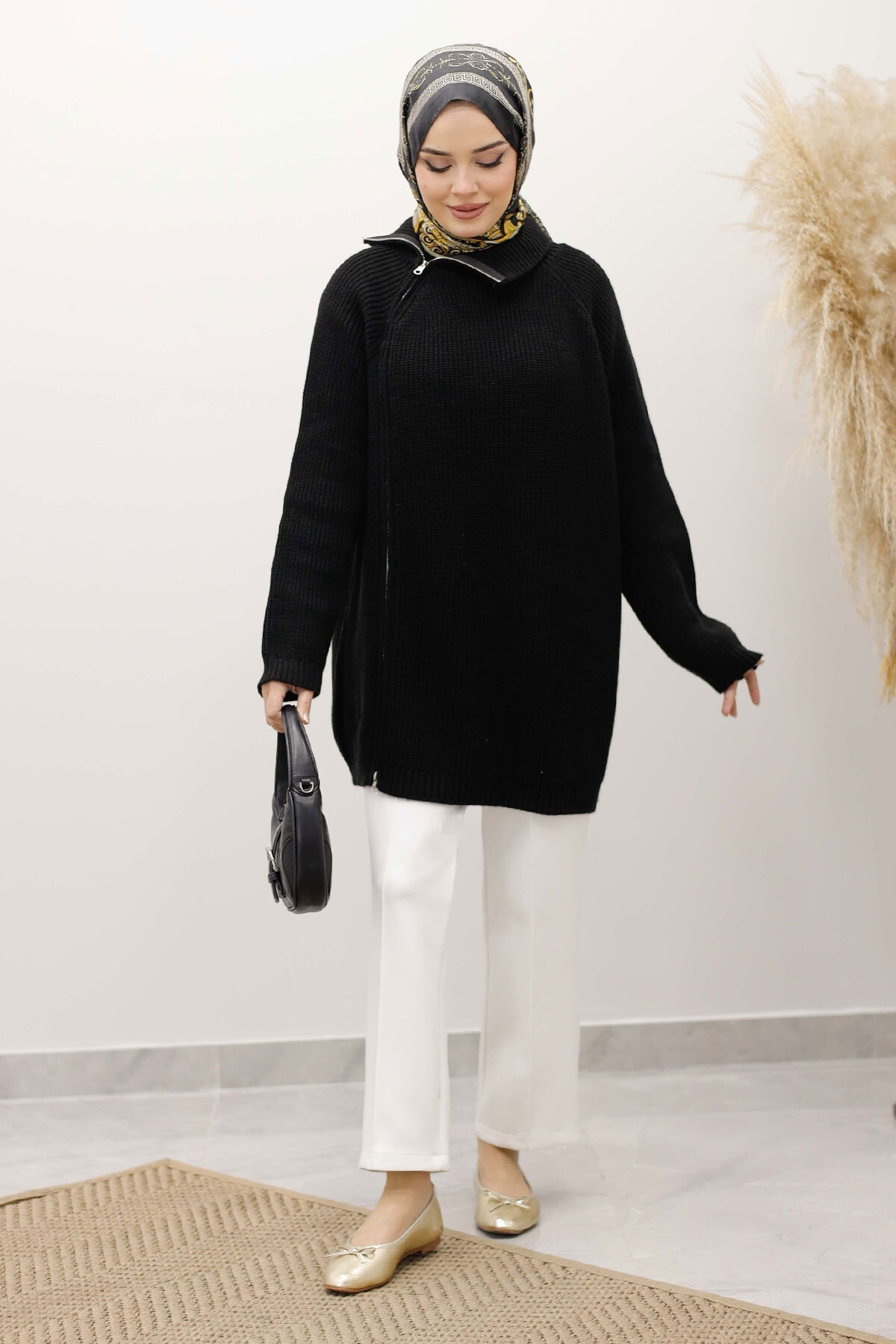 Fermuar Detaylı Triko Tunik TSD250254 Siyah