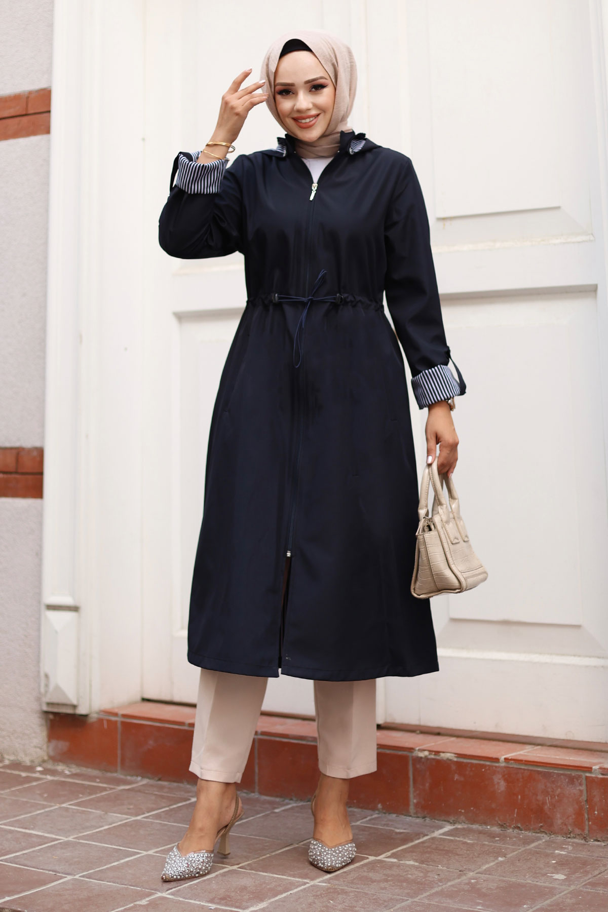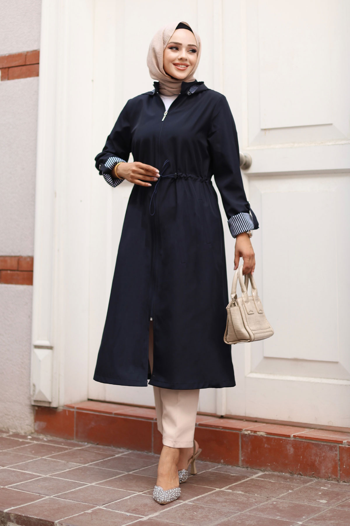 Ürün Özelliği : Yeni Sezon Fermuarlı Astarı Çizgili Trençkot modelidir. Boydan fermuar ile kapanabilmektedir. Astarı çizgilidir. Kolu katlanabilir olup düğme mevcuttur. Her iki yanında kullanılabilir cep bulunmaktadır. Kapüşonlu olup kapüşonu çıkarılabilmektedir. Beli bağcıklıdır. Ürün renginde konsept çekimlerinden dolayı ton farklılığı olabilir.