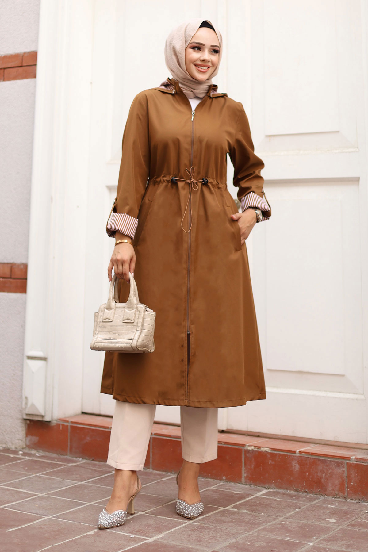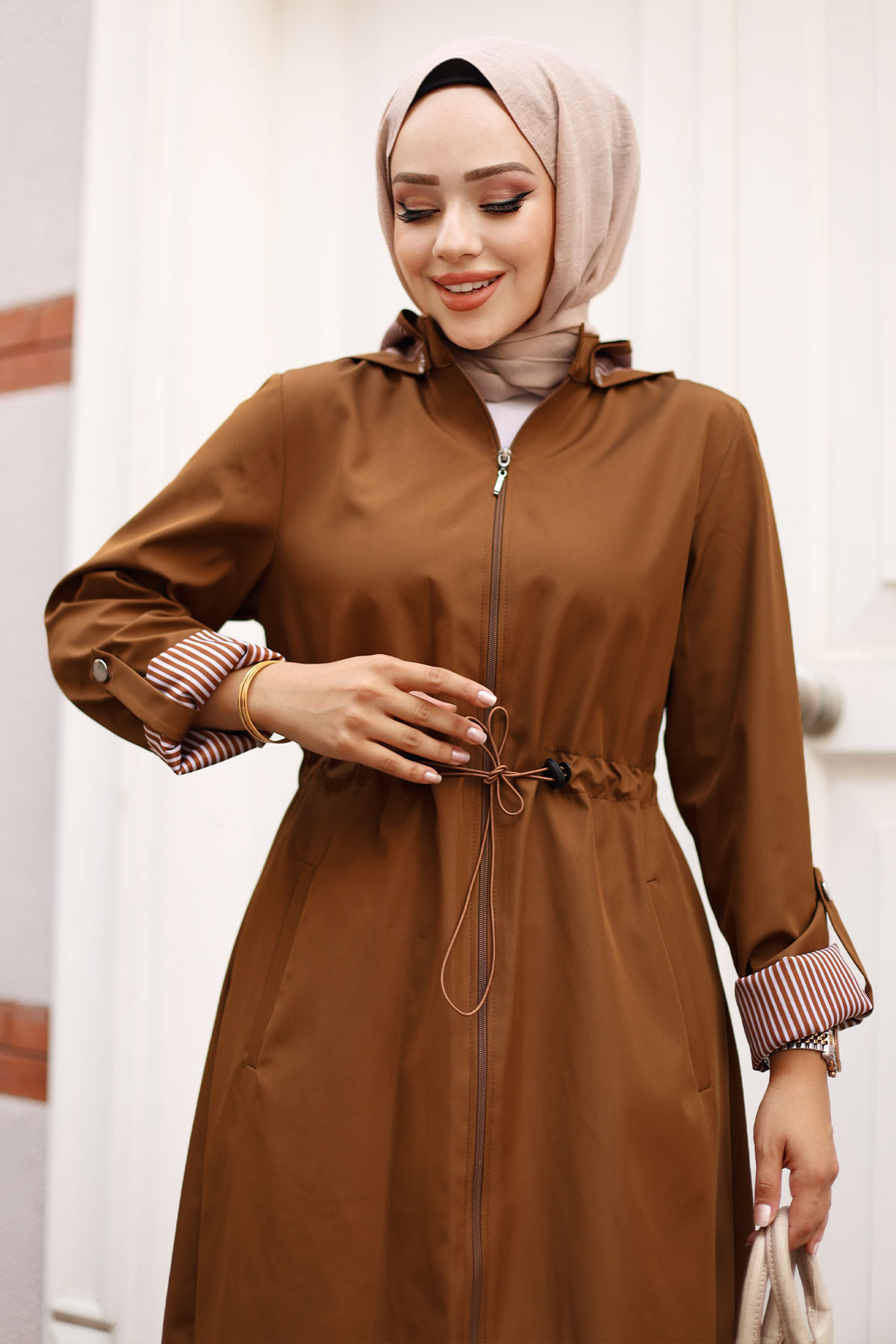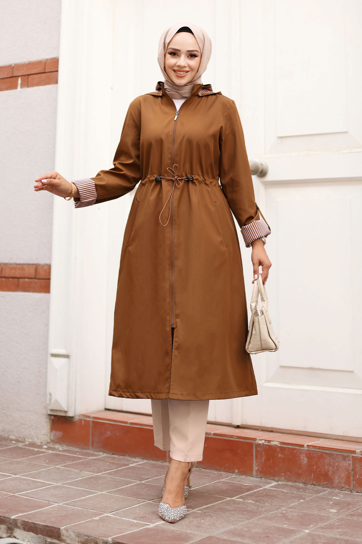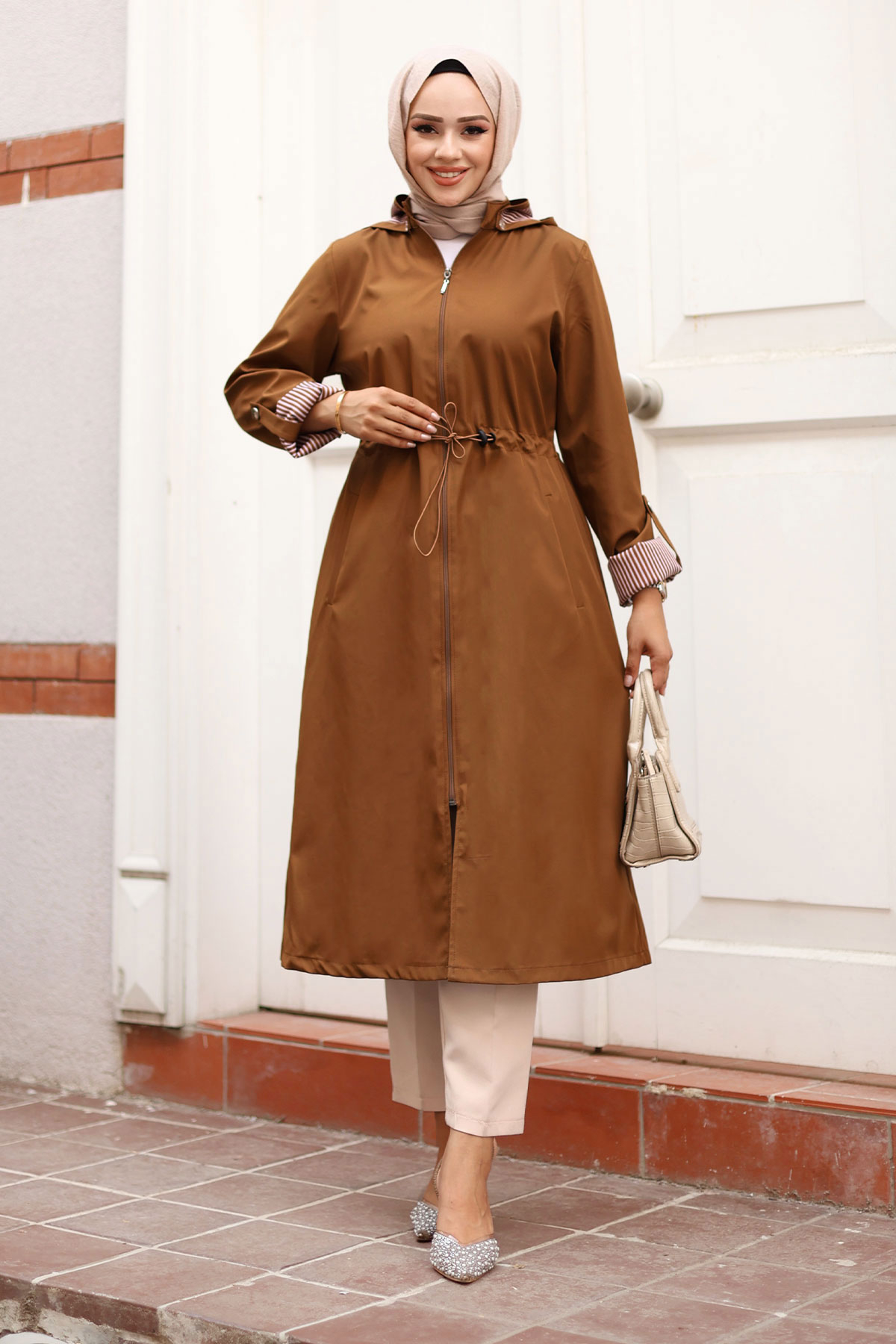Ürün Özelliği : Yeni Sezon Fermuarlı Astarı Çizgili Trençkot modelidir. Boydan fermuar ile kapanabilmektedir. Astarı çizgilidir. Kolu katlanabilir olup düğme mevcuttur. Her iki yanında kullanılabilir cep bulunmaktadır. Kapüşonlu olup kapüşonu çıkarılabilmektedir. Beli bağcıklıdır. Ürün renginde konsept çekimlerinden dolayı ton farklılığı olabilir.