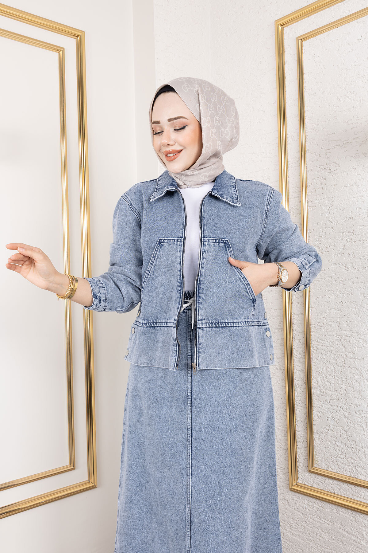 Ürün Özelliği : Yeni sezon Lavin Etekli Kot Takım modelidir. Eteğin beli lastiklidir. Etek cepsiz ve astarsızdır. Ceket fermuarlı ve astarsızdır. Cekette iki adet kullanılabilir cep ve yanlarında çıtçıtlar mevcuttur. Ürün renginde konsept çekimlerinden dolayı ton farklılığı olabilir.