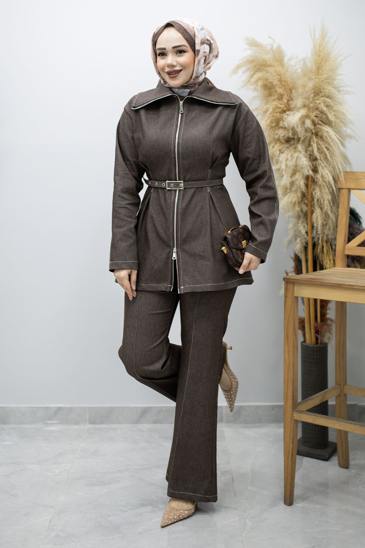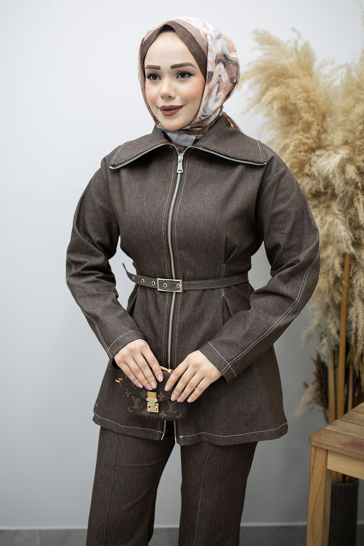 Fermuarlı Kemerli İkili Takım TSD260186 Kahverengi Özellikleri