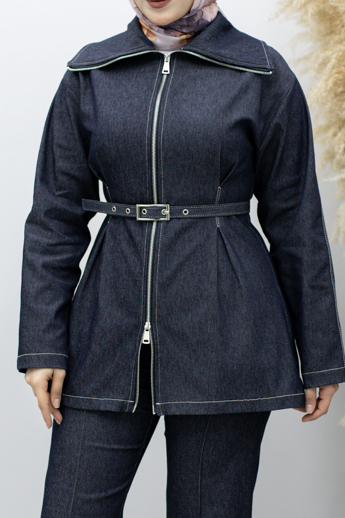 . Tunik fermuarlı olmak ile birlikte kemerlidir
