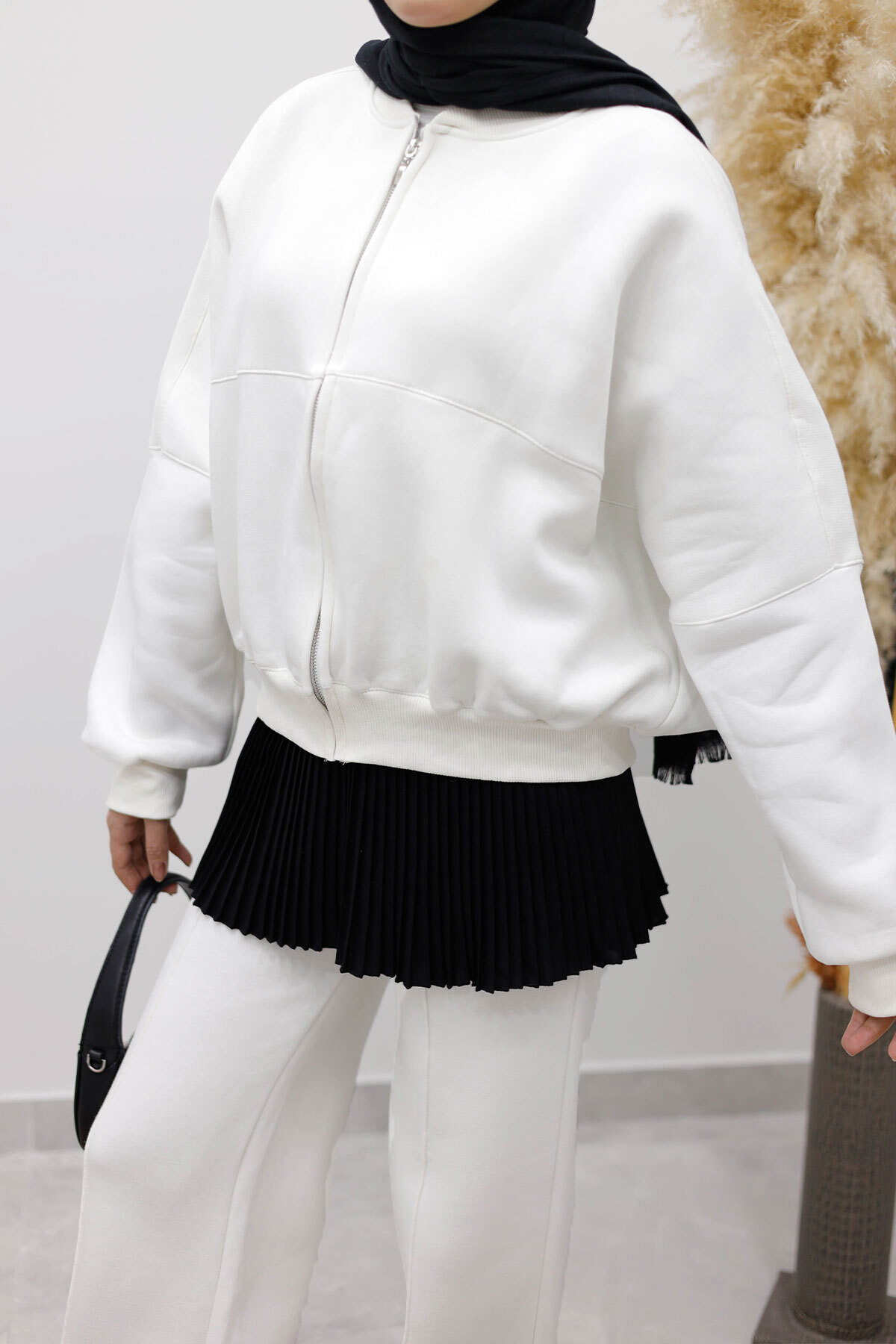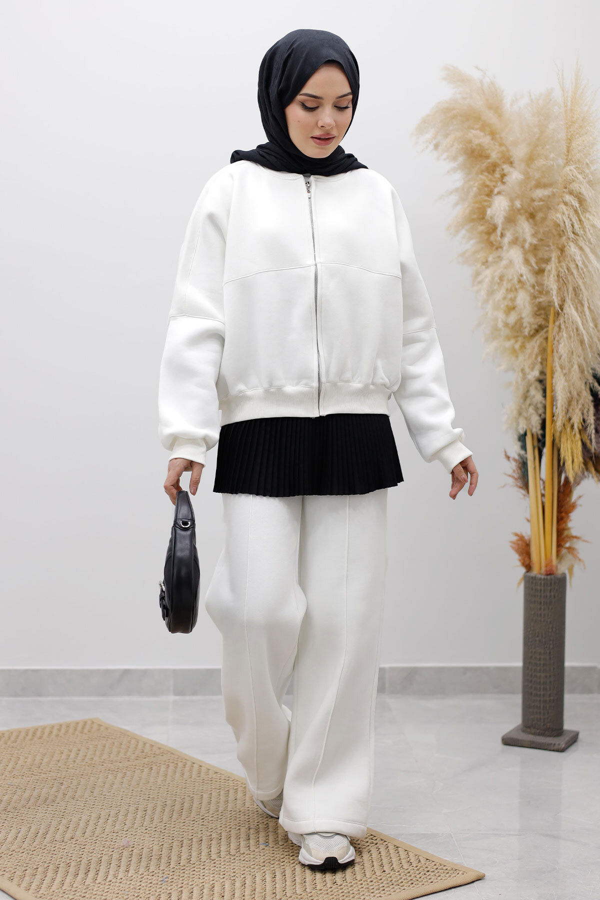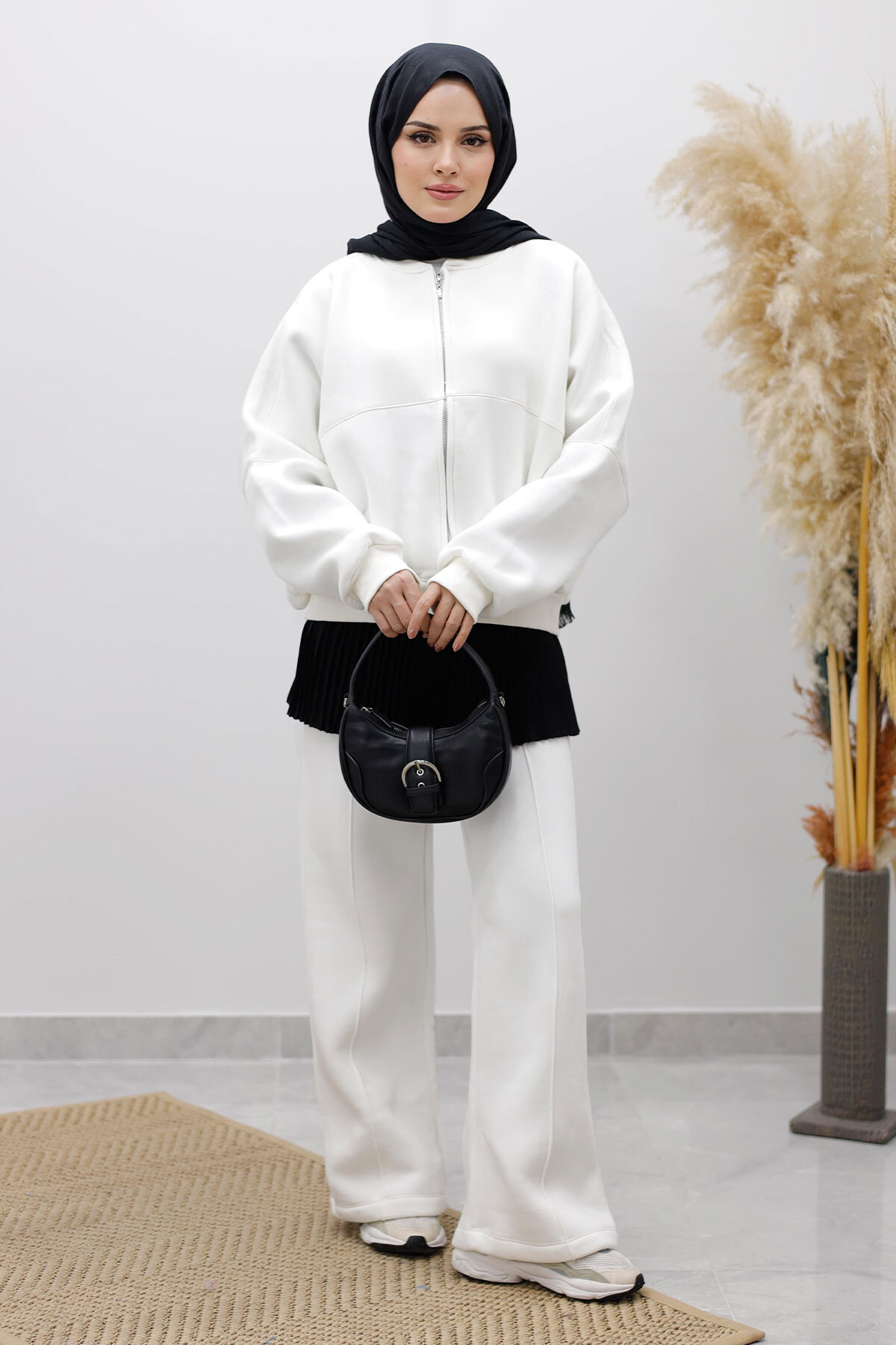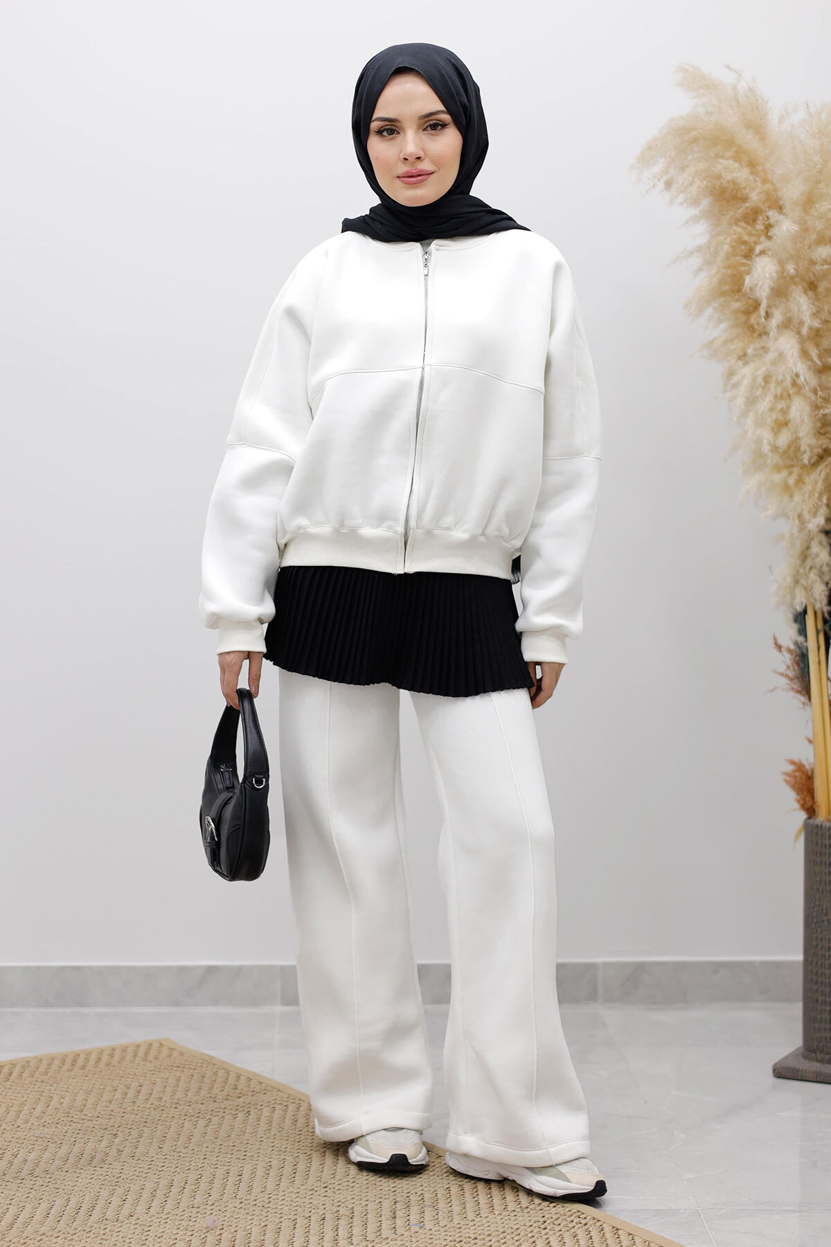 Fermuarlı Şardonlu Eşofman Takım TSD250258 Beyaz Özellikleri