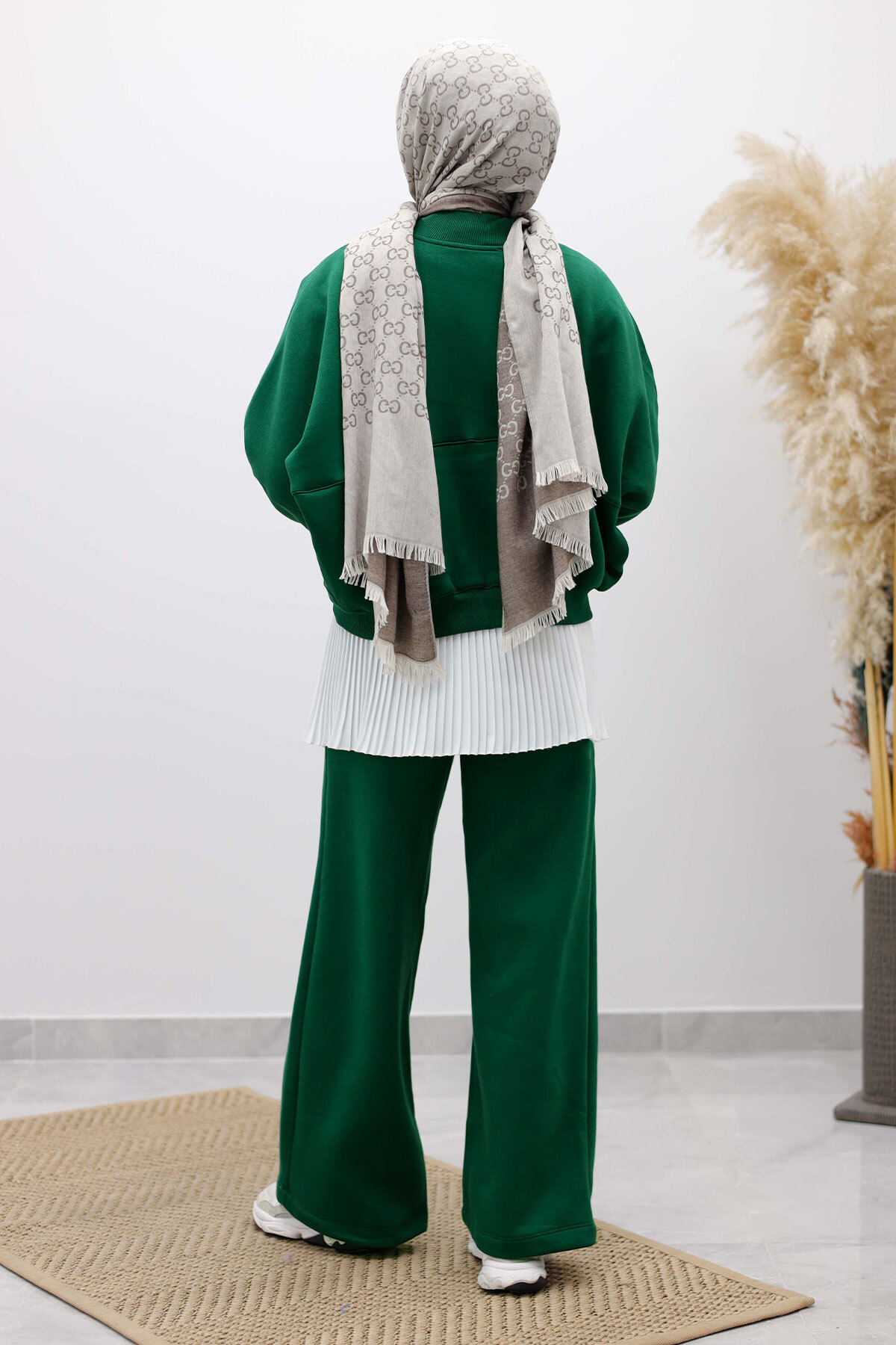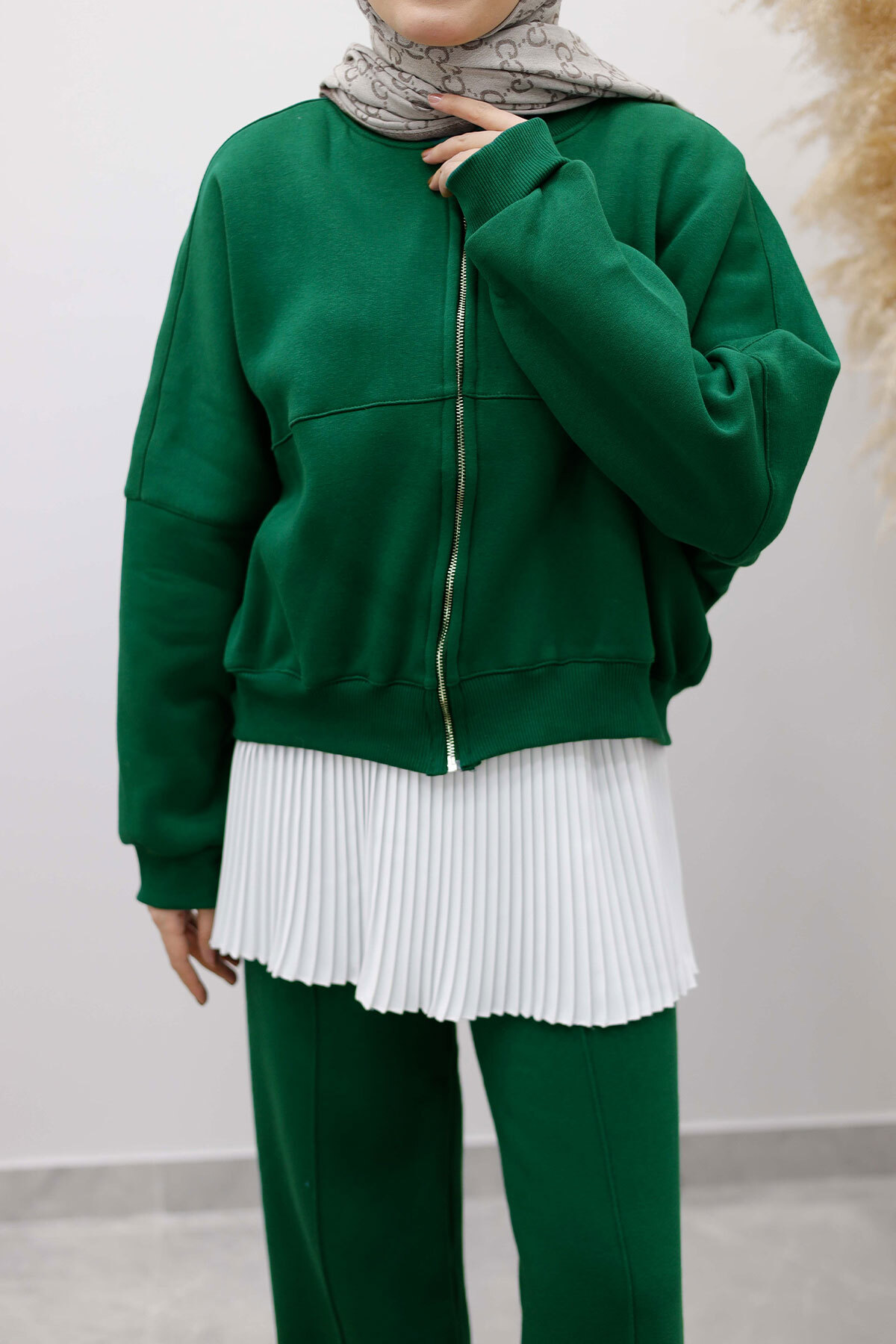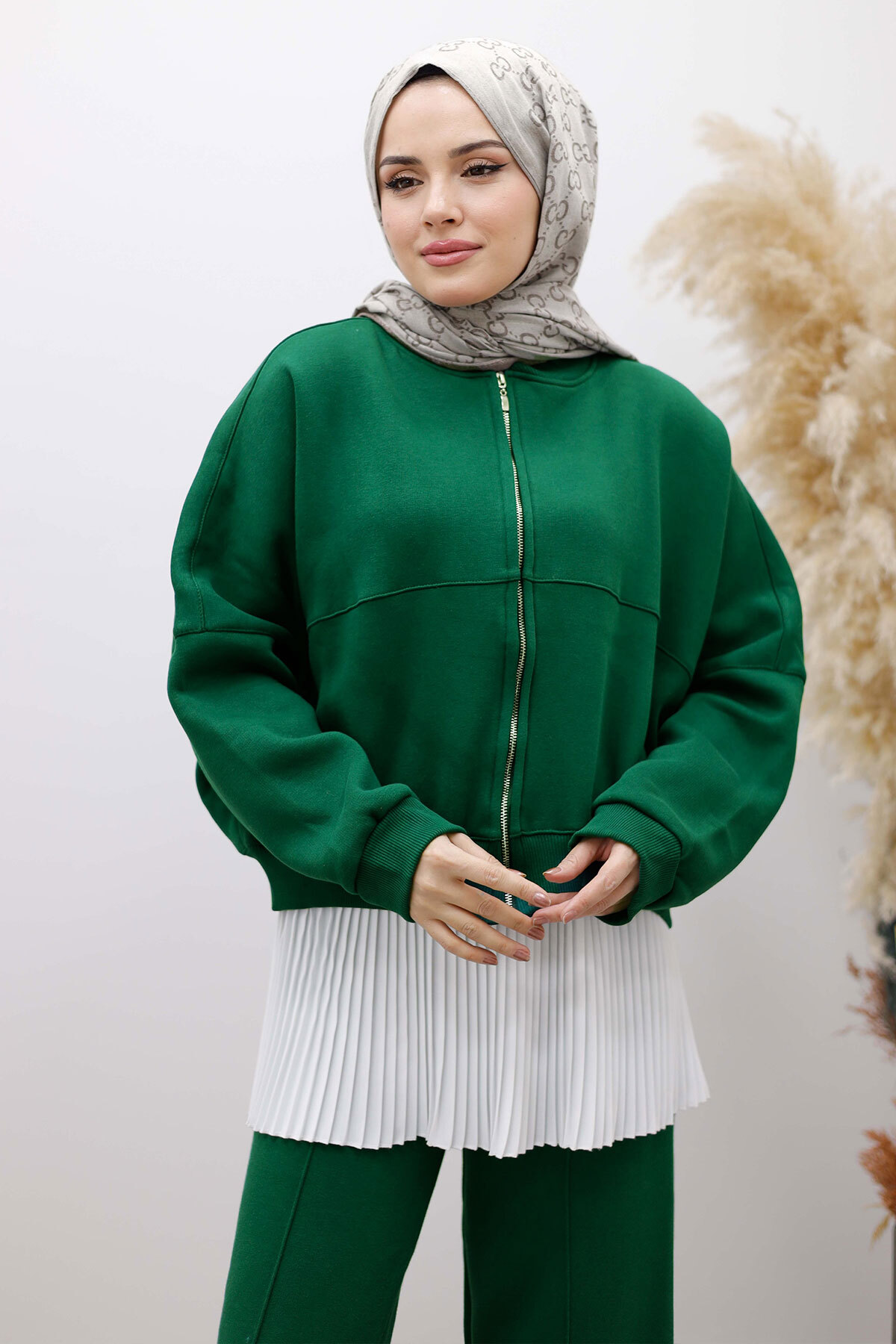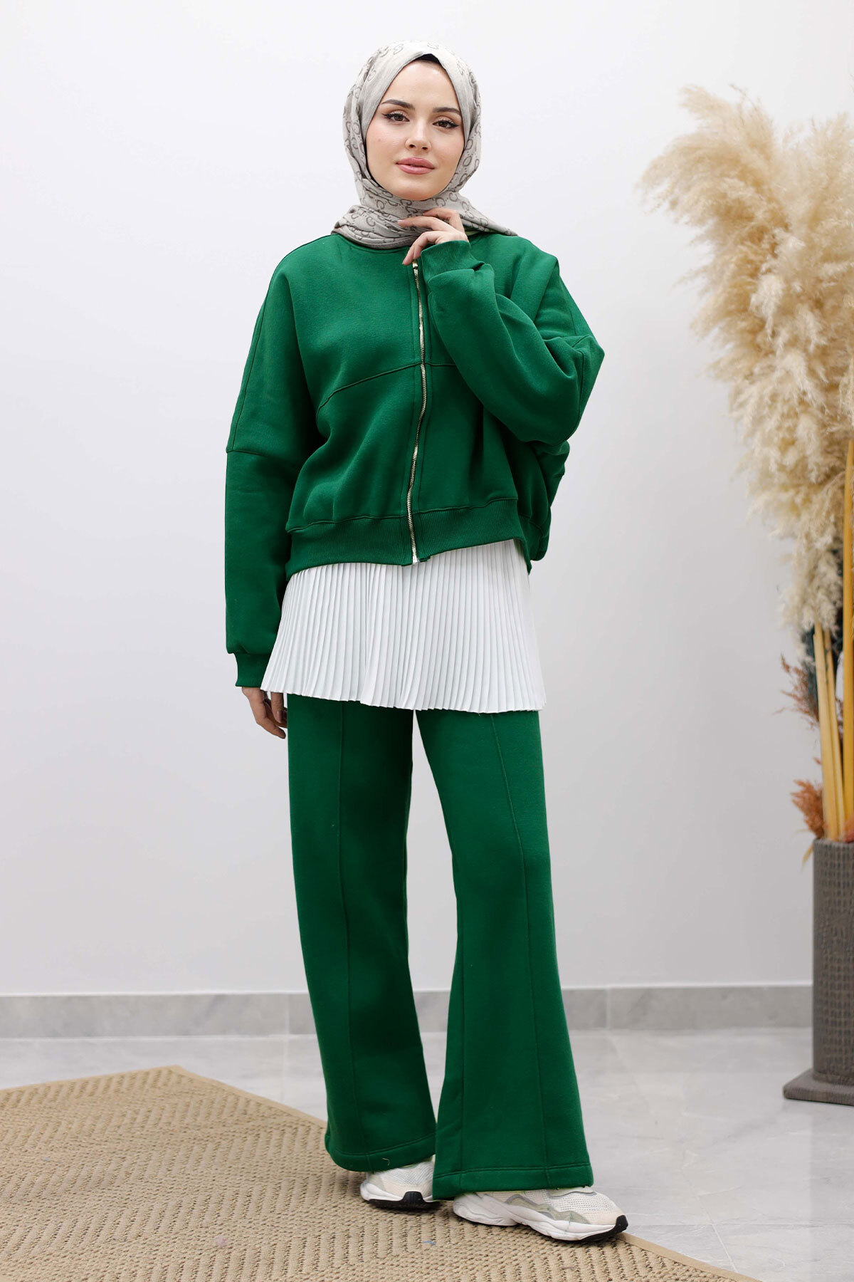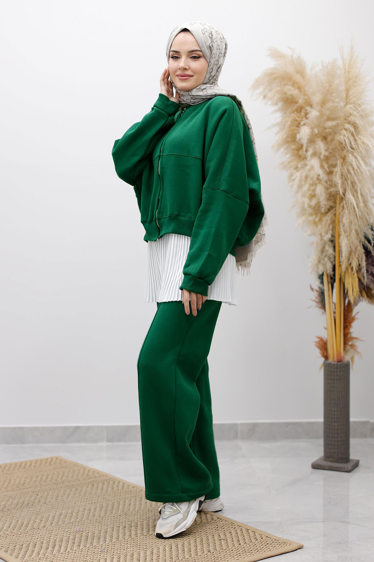 Fermuarlı Şardonlu Eşofman Takım TSD250258 Zümrüt Yeşil Özellikleri