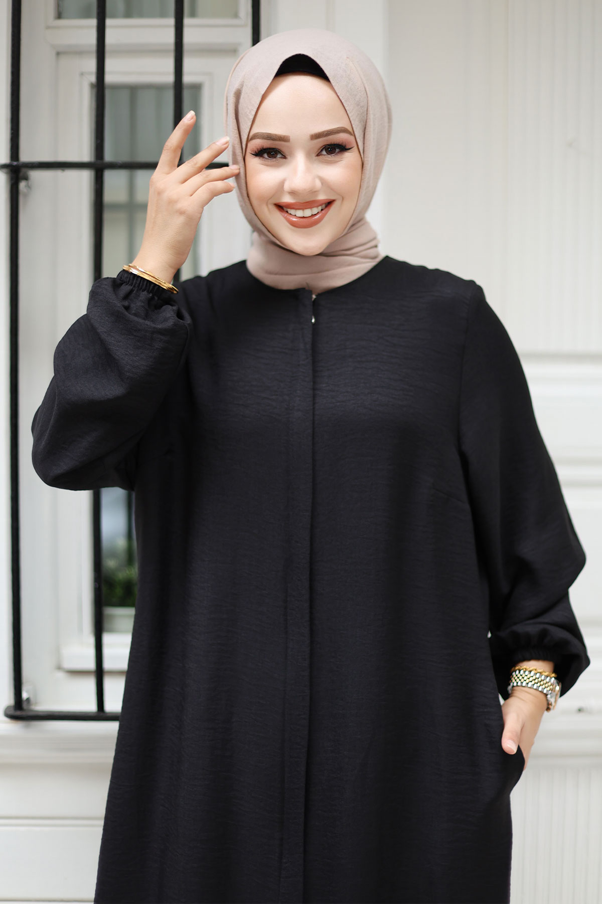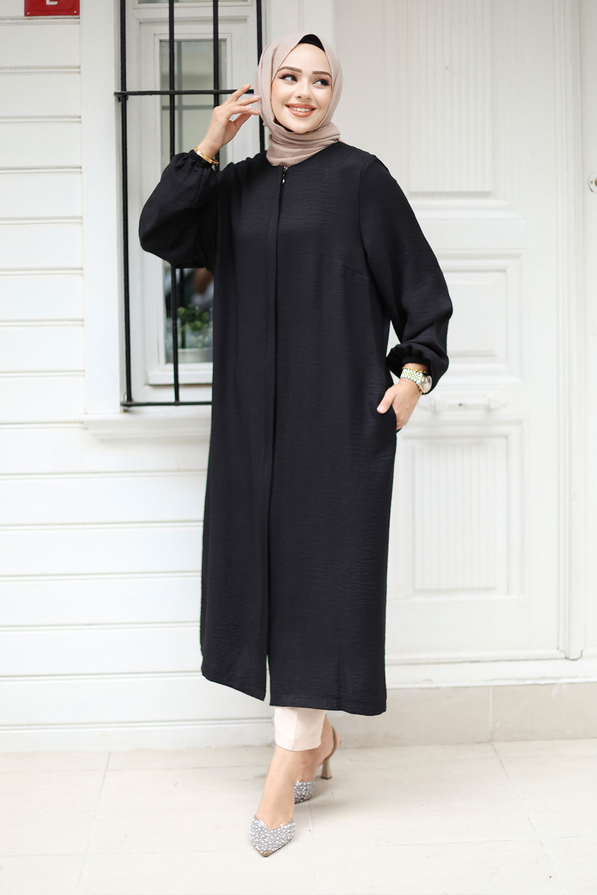 Ürün Özelliği : Yeni sezon Fermuarlı Tesettür Kap modelidir. Boydan gizli fermuarlıdır. Hakim yakaya sahiptir. Kol ucu lastiklidir. Ürün renginde konsept çekimlerinden dolayı ton farklılığı olabilir.