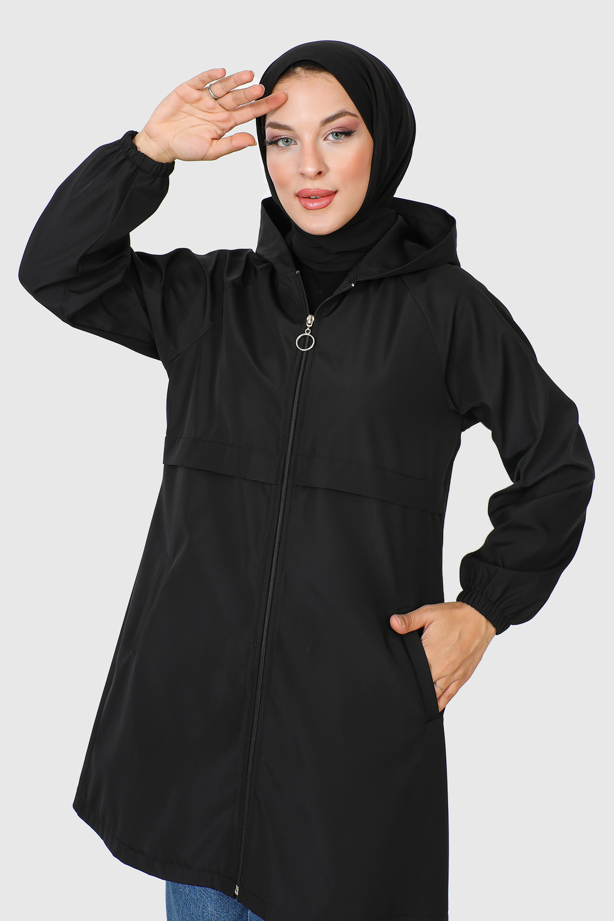 Fermuarlı Trençkot TSD231002 Siyah Özellikleri